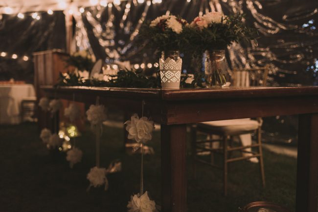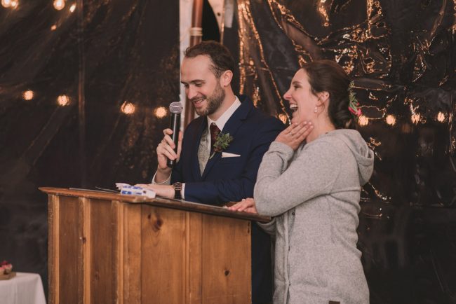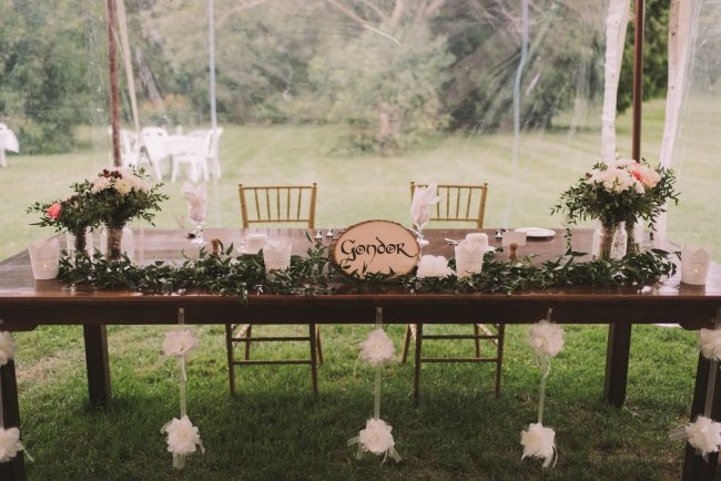 I love Maryse and Matt’s fondness for Lord of the Rings – their tables were each named after a location in the books, and even their tent itself fit the theme! And in the evening, we lucked out with a beautiful sunset. Though we could only run out to the road near the tent to catch the colours, the photos turned out beautifully!