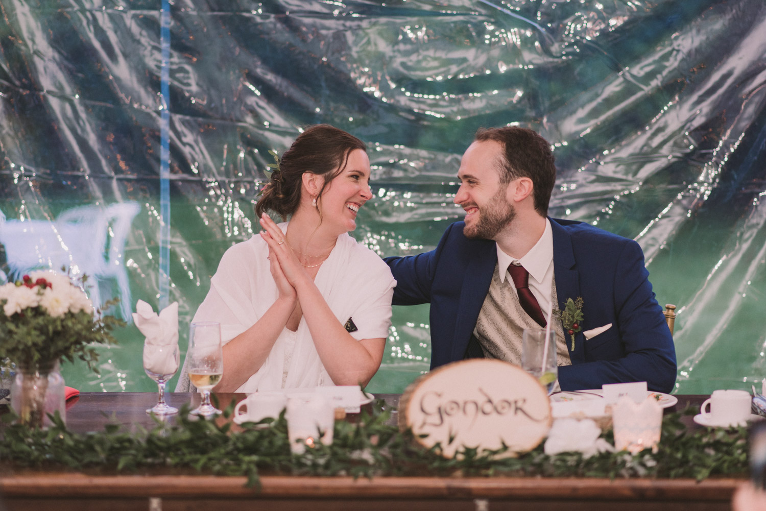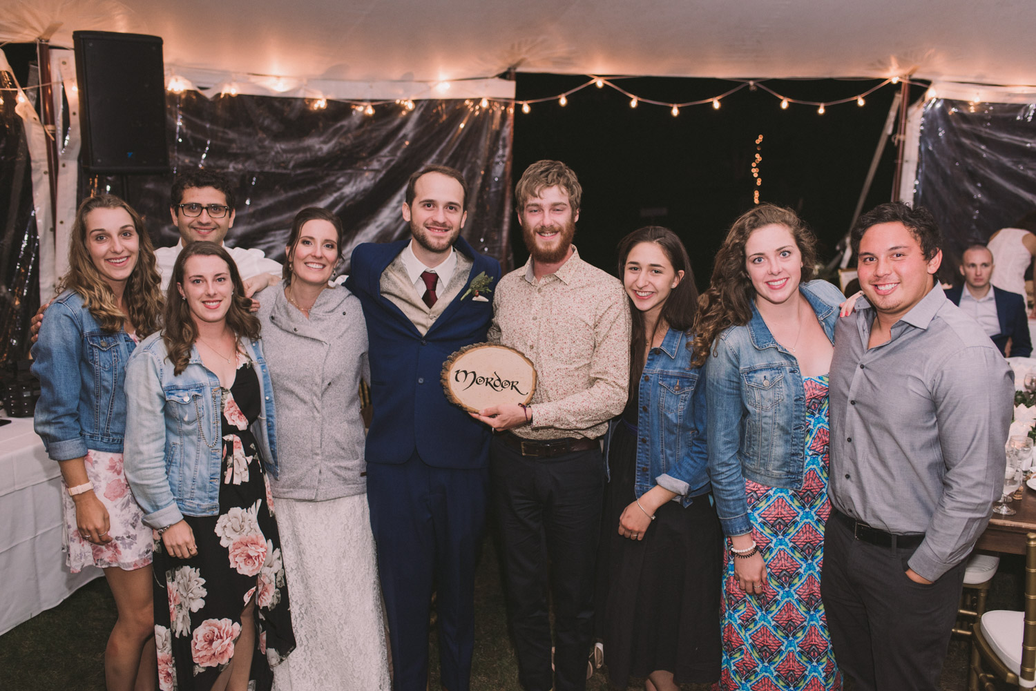 I love Maryse and Matt’s fondness for Lord of the Rings – their tables were each named after a location in the books, and even their tent itself fit the theme! And in the evening, we lucked out with a beautiful sunset. Though we could only run out to the road near the tent to catch the colours, the photos turned out beautifully!