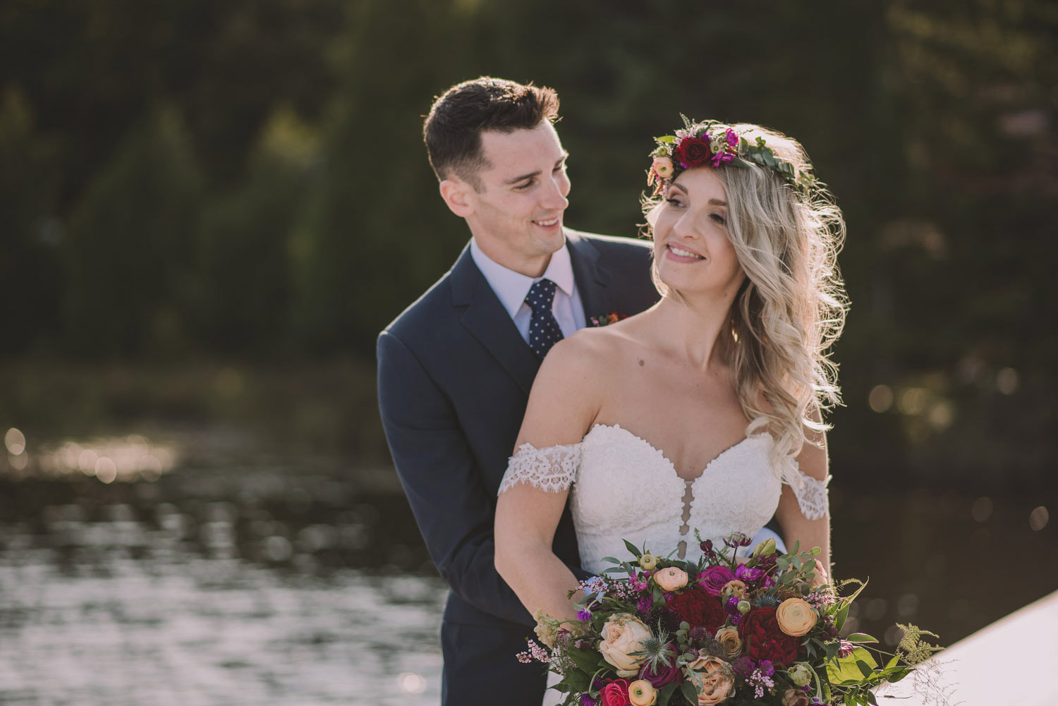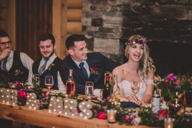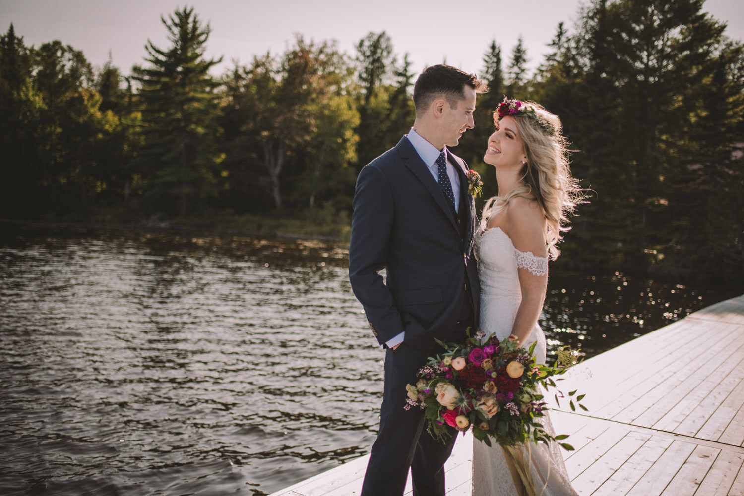 Christy and Justin’s wedding took place in the fall at Camp Arowhon in Algonquin Park. This wedding was truly up my alley – as my love for the outdoors, camping, and photography were merged into one spectacular event! Their beautiful day started with a heart warming ceremony, followed by photography on the lake, a fantastic reception inside the main dining hall at the Camp, and then marshmallows roasted over a campfire!