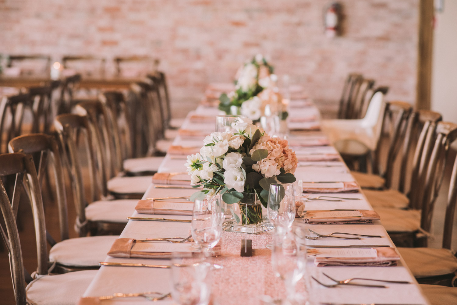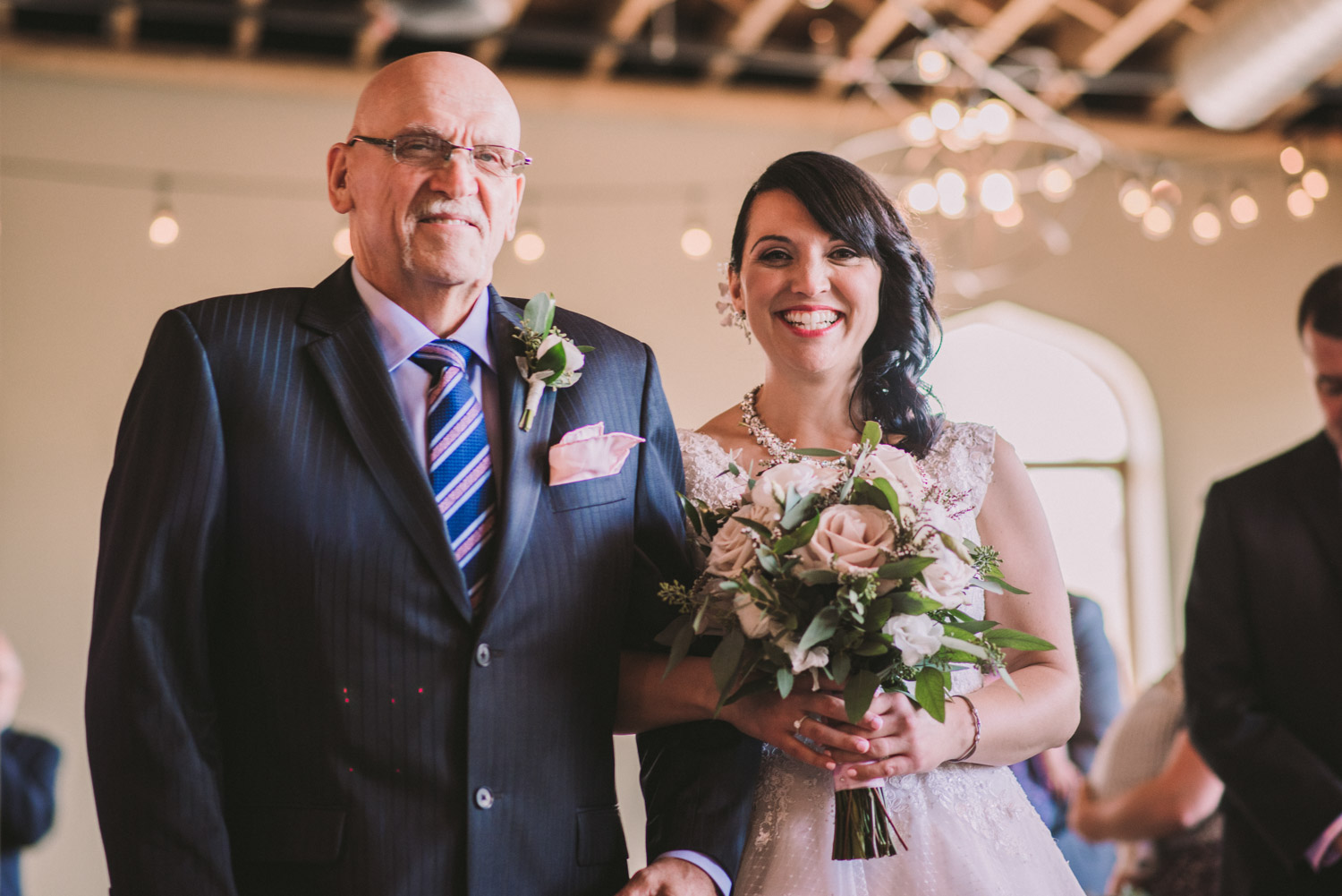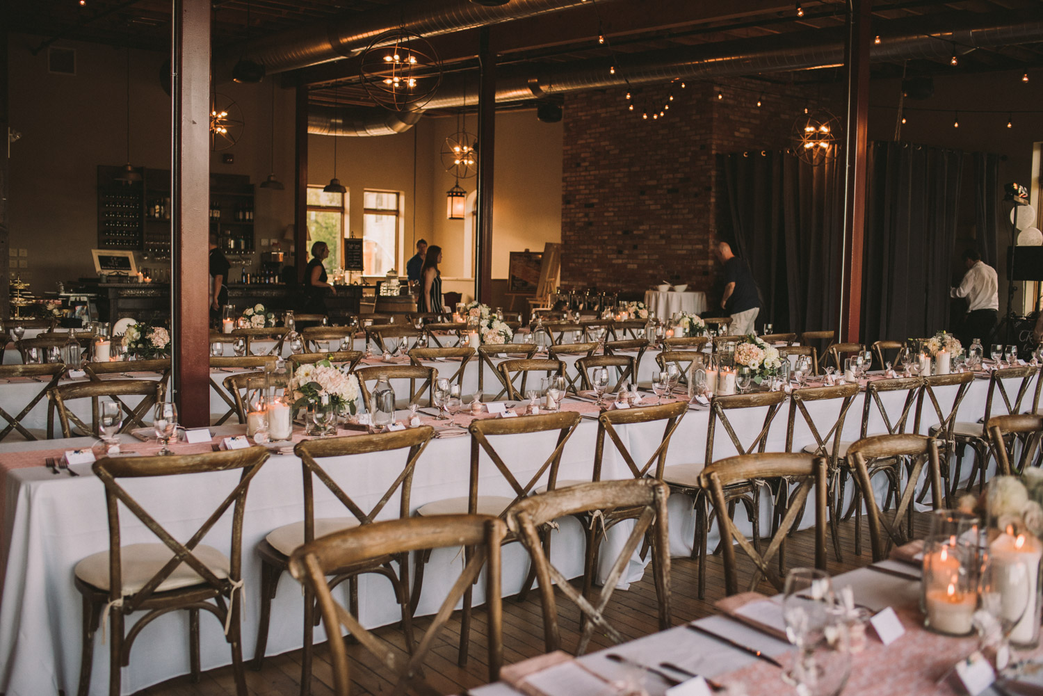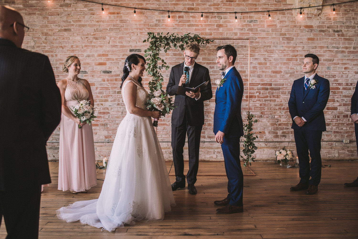 The ceremony and reception both took place across from the Arlington at the Dominion Telegraph Events Centre – another beautiful historic building, this time with gorgeous exposed brick walls in the interior. This was the space for their gorgeous reception as well!
