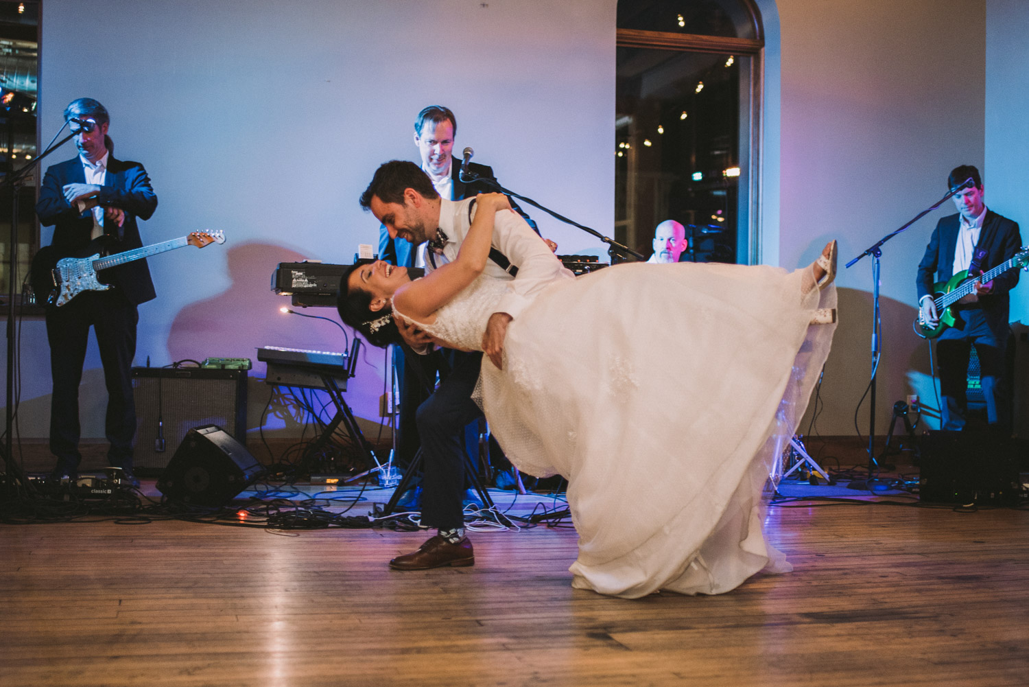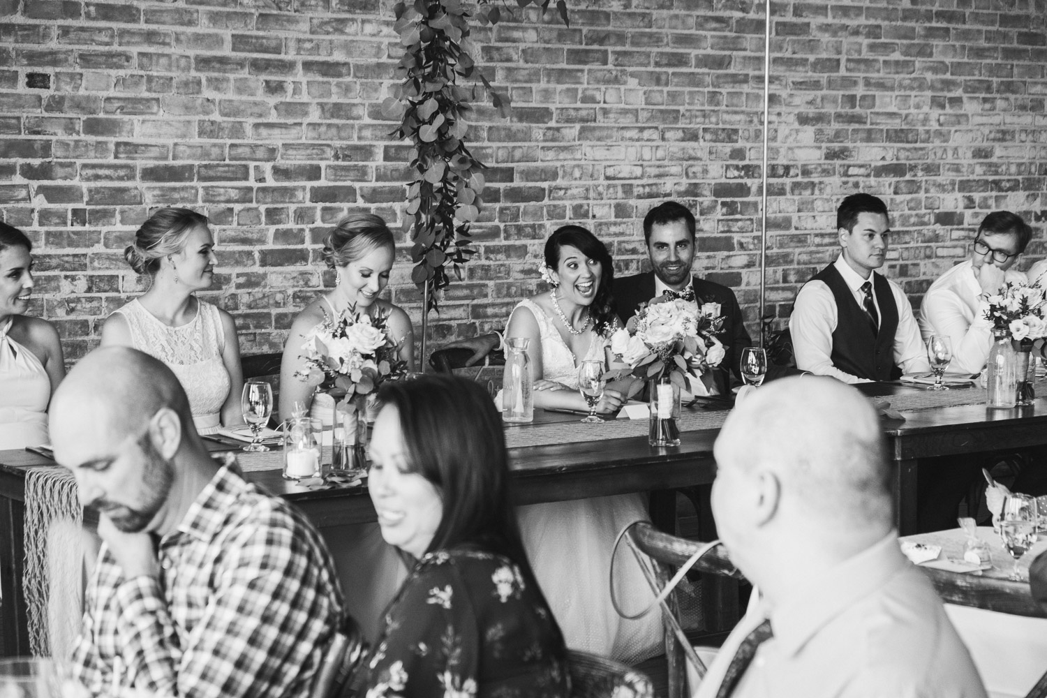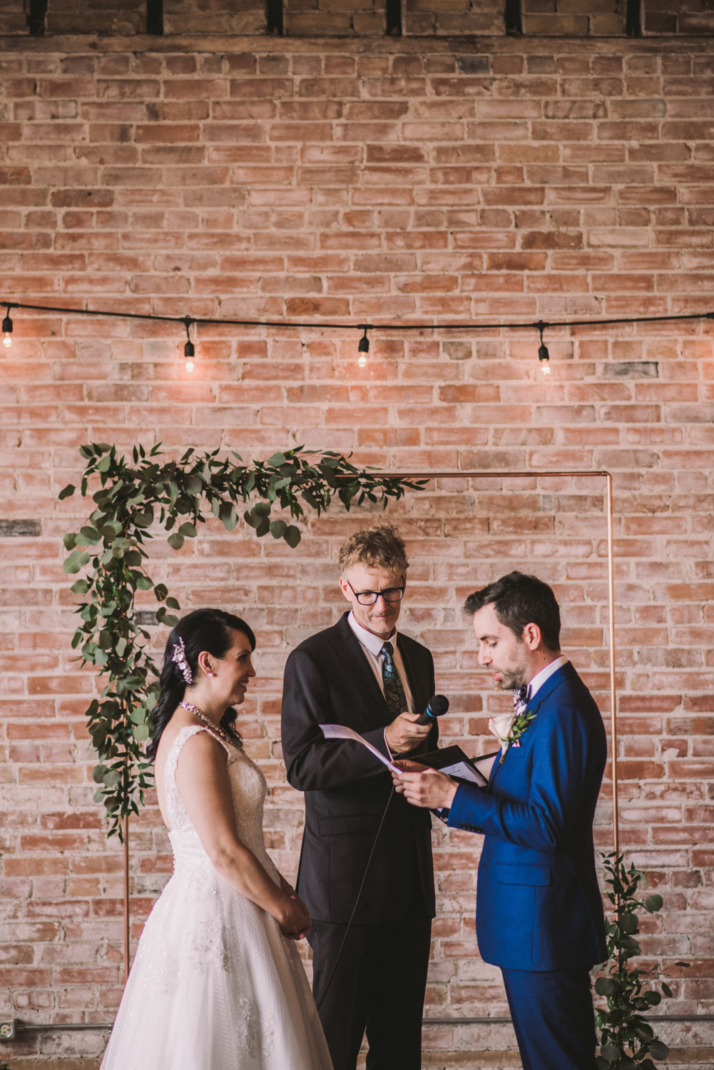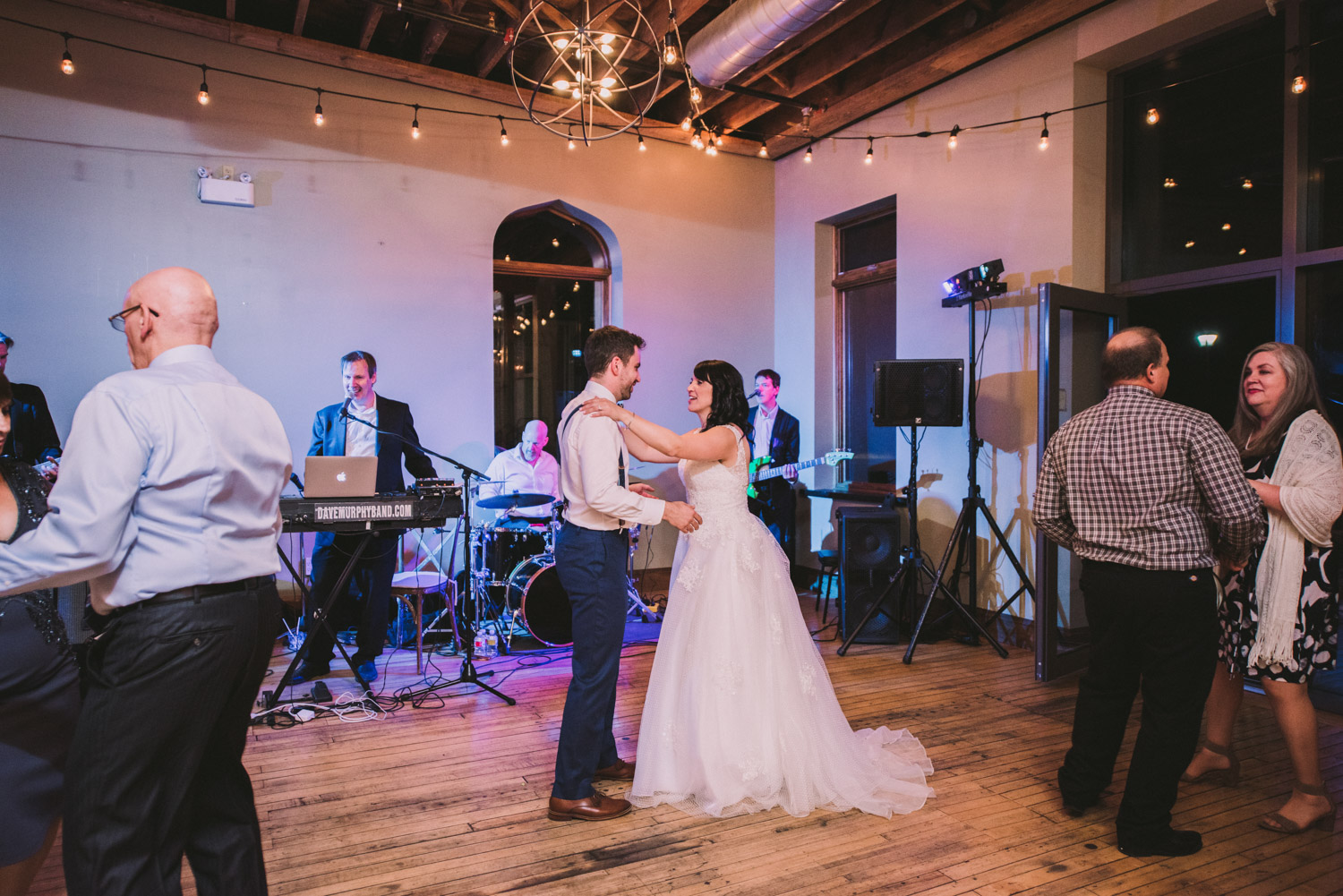 The ceremony and reception both took place across from the Arlington at the Dominion Telegraph Events Centre – another beautiful historic building, this time with gorgeous exposed brick walls in the interior. This was the space for their gorgeous reception as well!