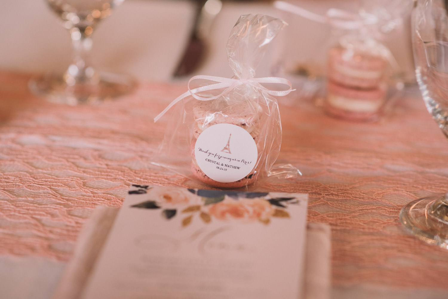 My assistant Meris and I split our time with me photographing Crystal’s preparation, and she with Mathew. We then convened on the bridge across from the historic Arlington Hotel in Paris for their first look. I loved how as Crystal was approaching, Mathew made gestures towards her direction for the camera, while Crystal danced around behind him in her dress – it was hilarious and a perfect example of the dynamic between these two!
