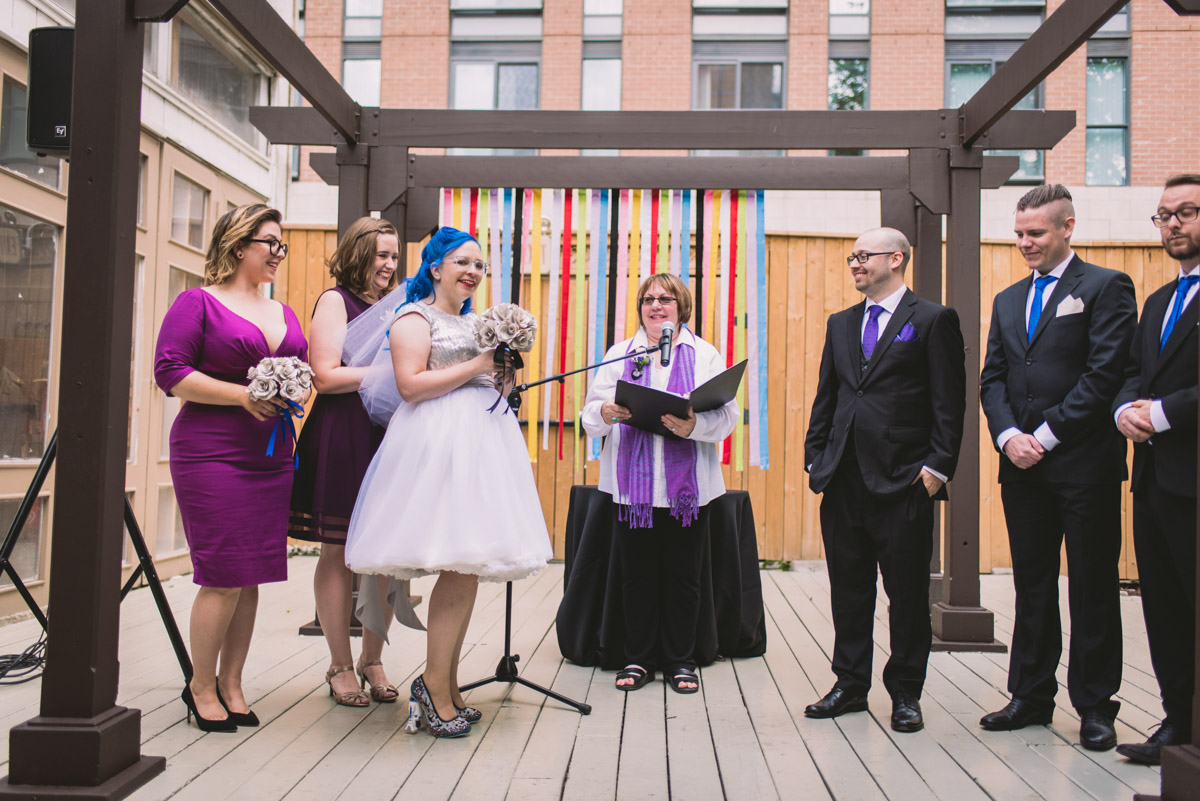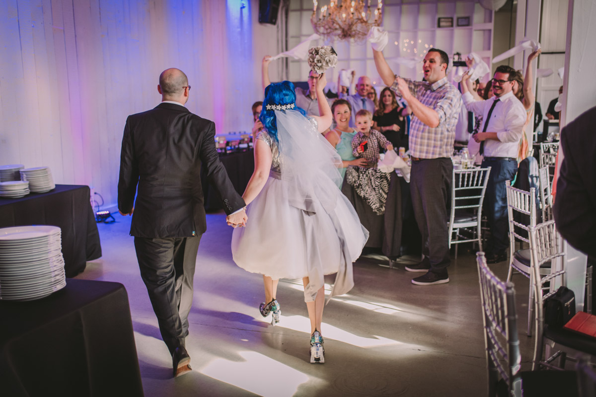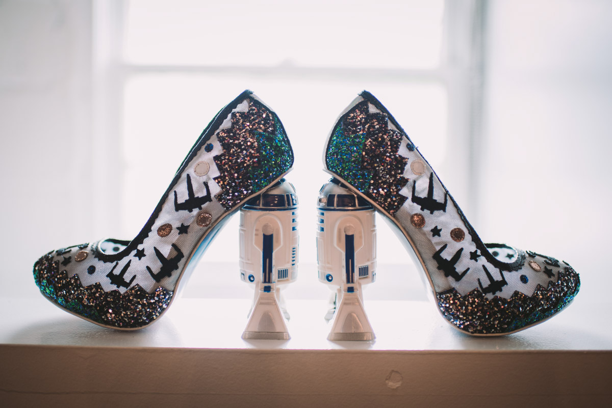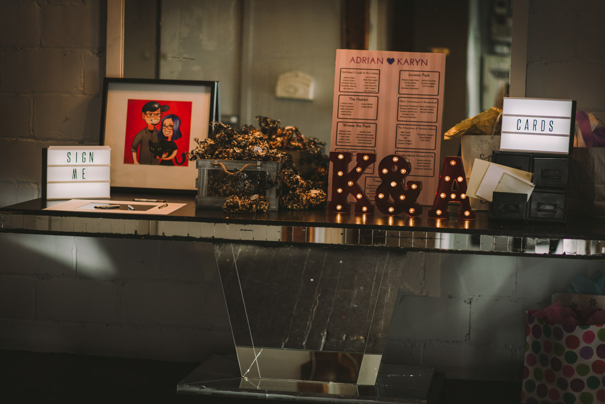 Karyn explained that their wedding would be different – it would be themed: classic books, films, and comics! Â She was sourcing a pair of Star Wars themed shoes for the occasion too. Â This unique wedding would take place at the beautiful and eclectic Berkeley Field House in Toronto.
