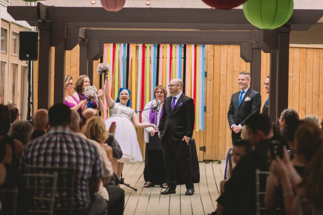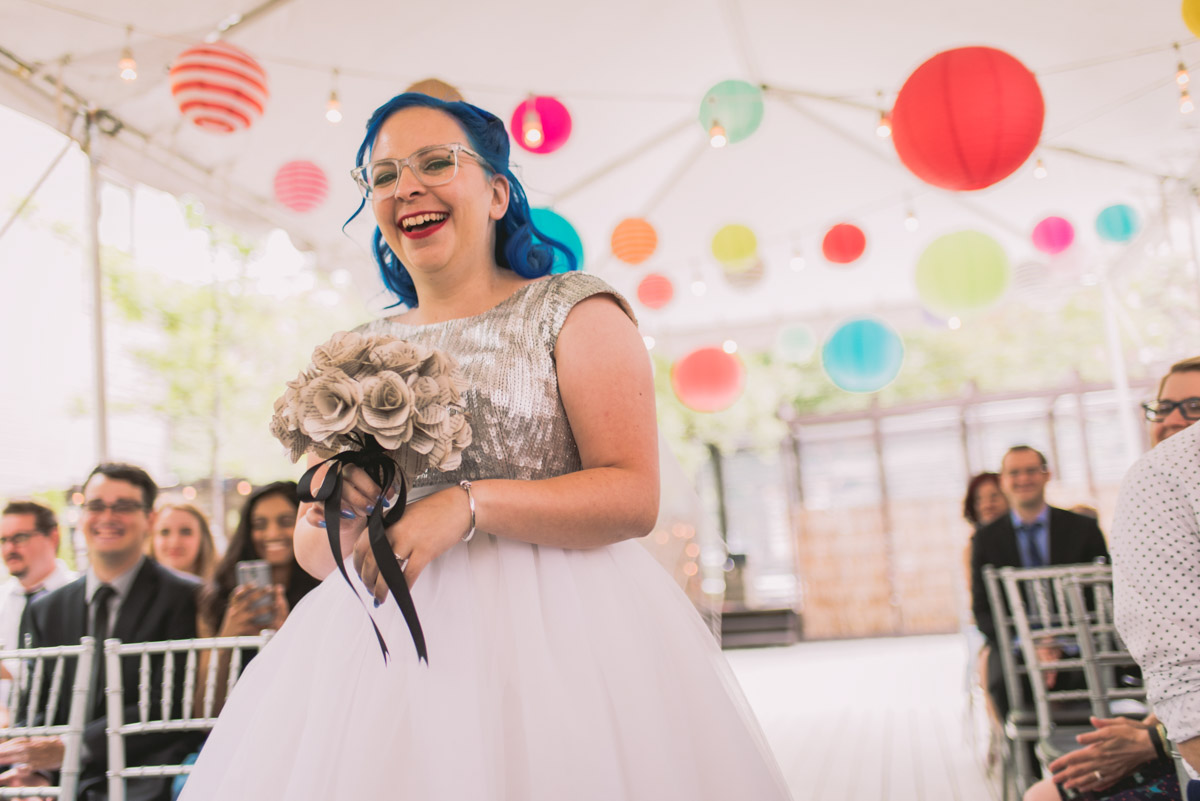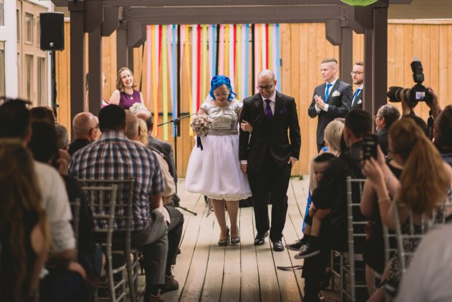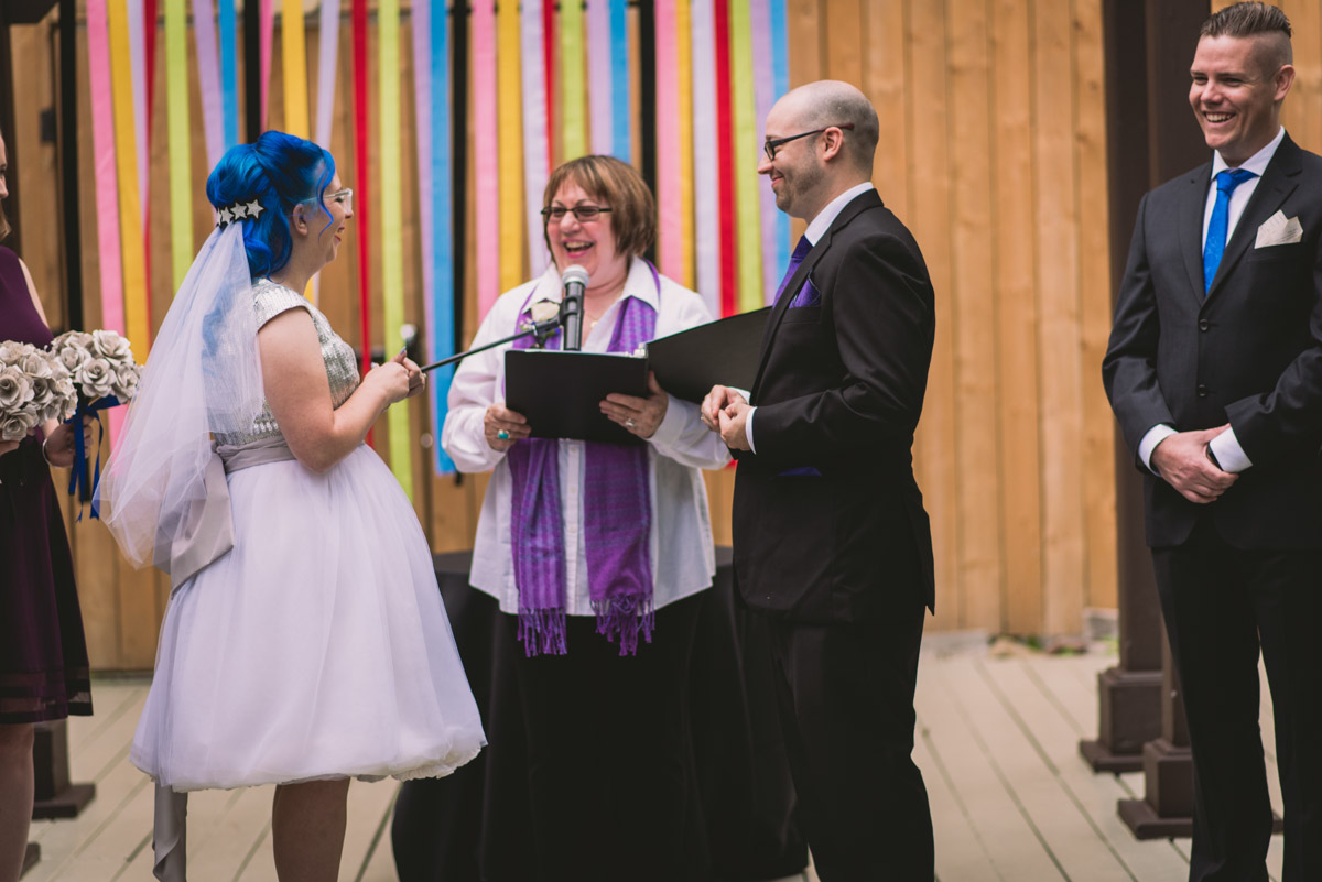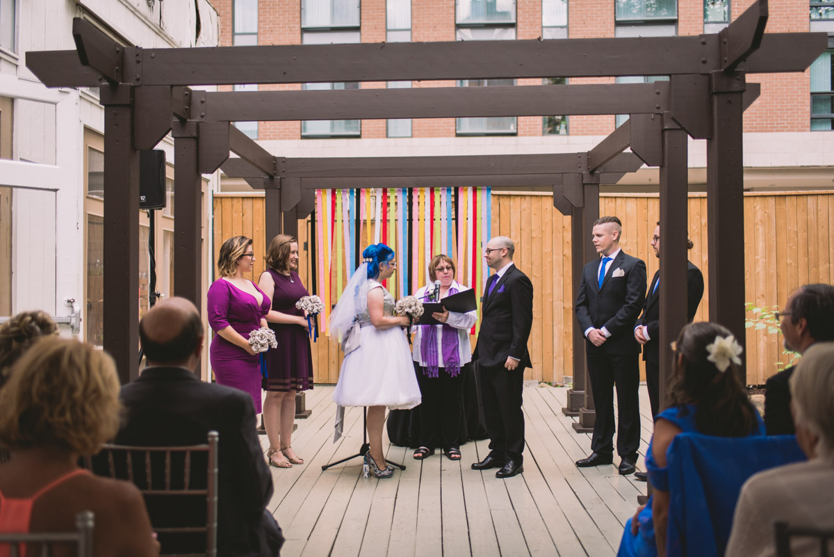 Karyn explained that their wedding would be different – it would be themed: classic books, films, and comics! Â She was sourcing a pair of Star Wars themed shoes for the occasion too. Â This unique wedding would take place at the beautiful and eclectic Berkeley Field House in Toronto.