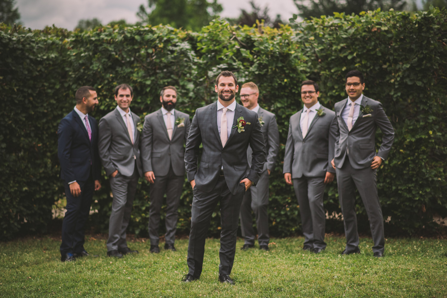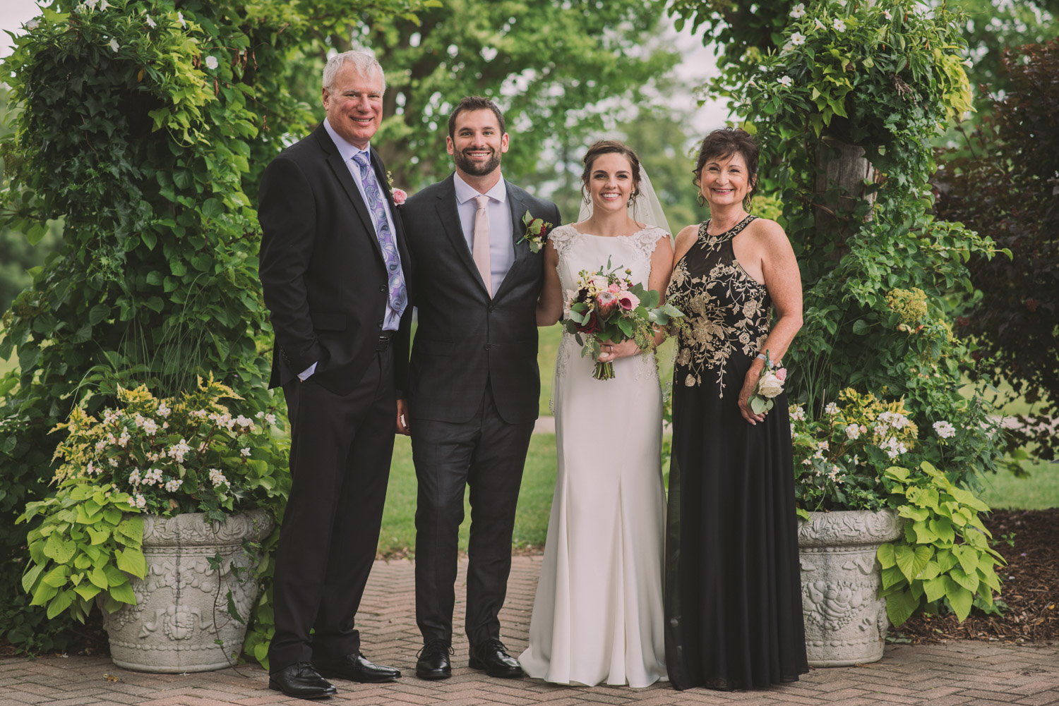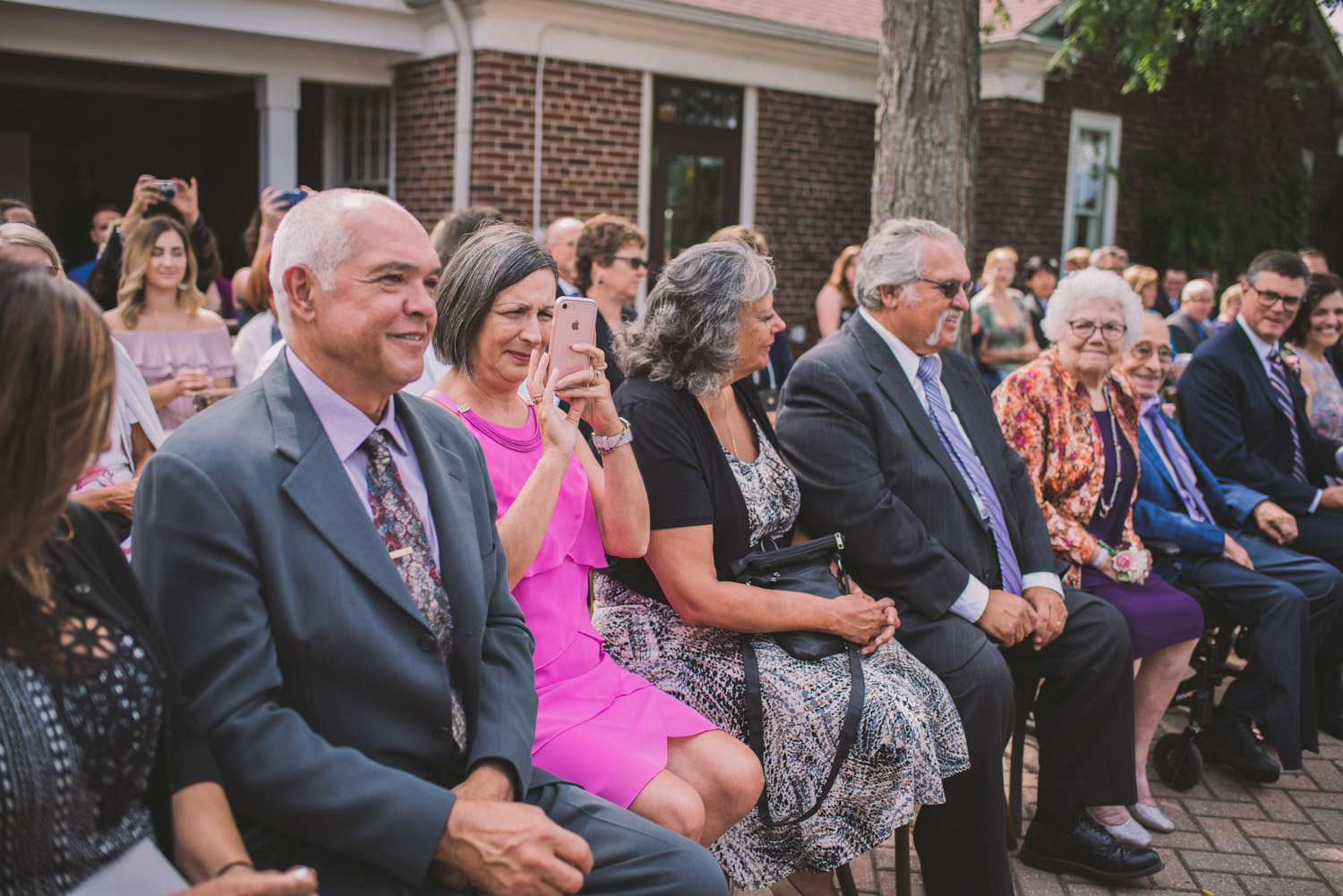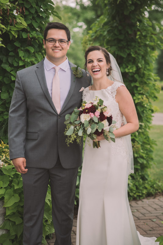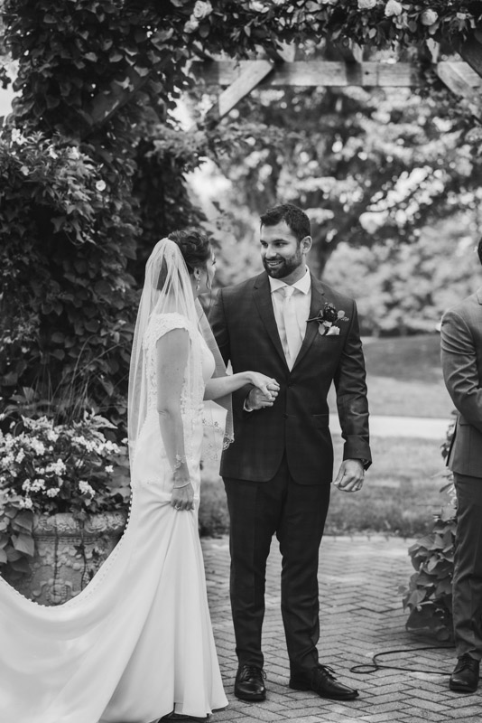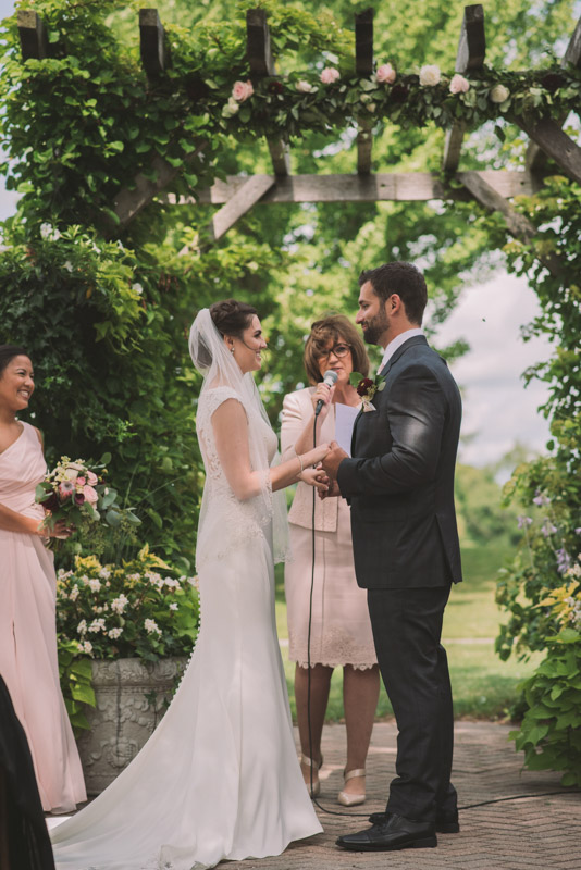 I met with Amy and Jordan at the nearby Delta Hotel for their preparation photos. Their bridal party turned out to be absolutely hilarious – which of course makes for a lot of fun! Their ceremony, behind the main building at Cutten Fields, was intimate and emotional. We followed the ceremony with family photos at the ceremony location, followed by bridal party photos at the nearby University of Guelph Arboretum space.
