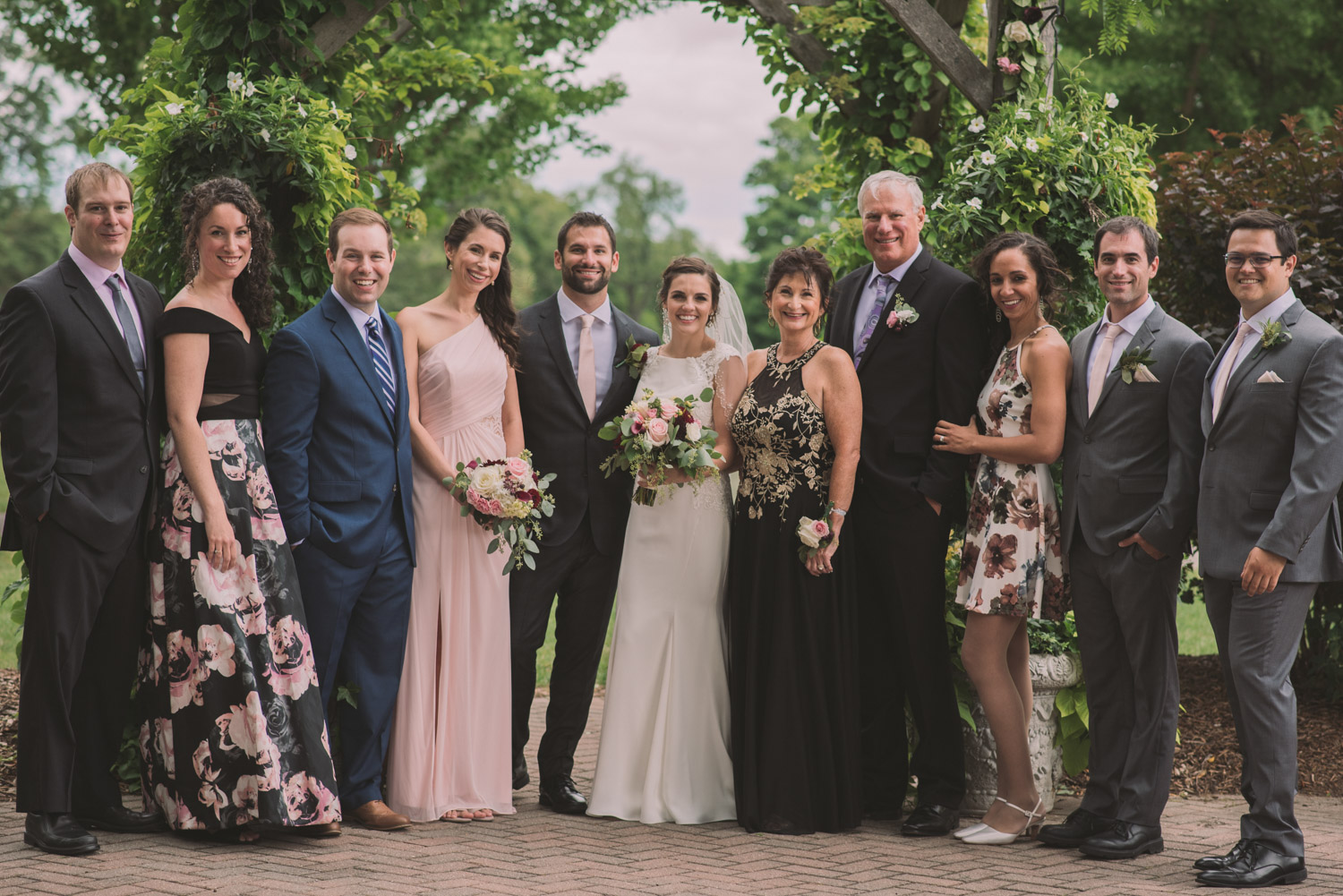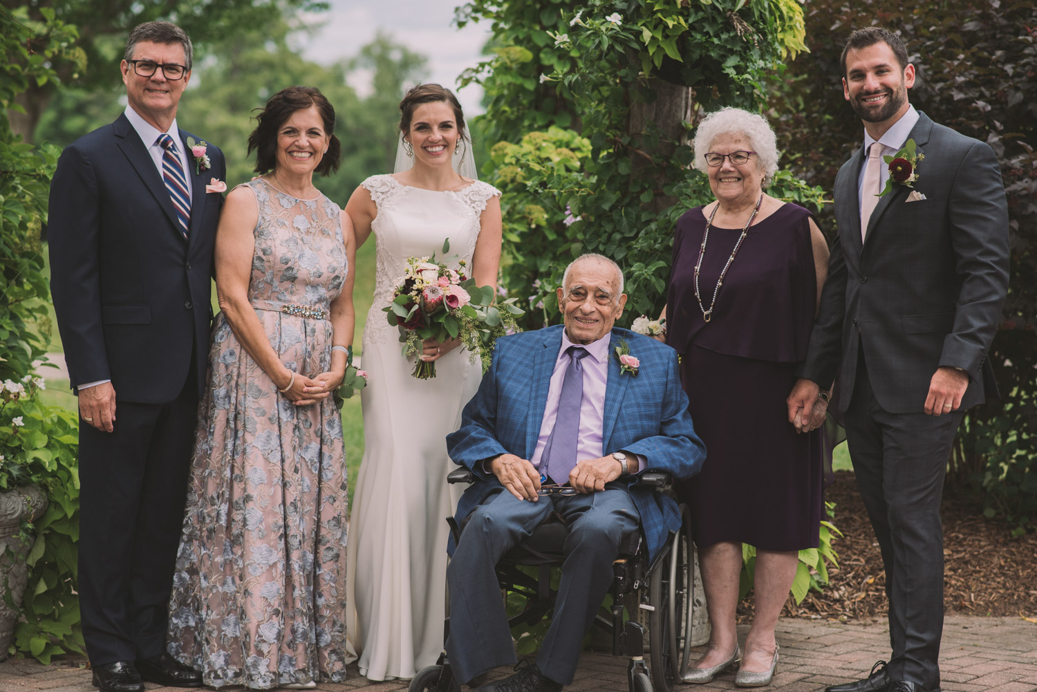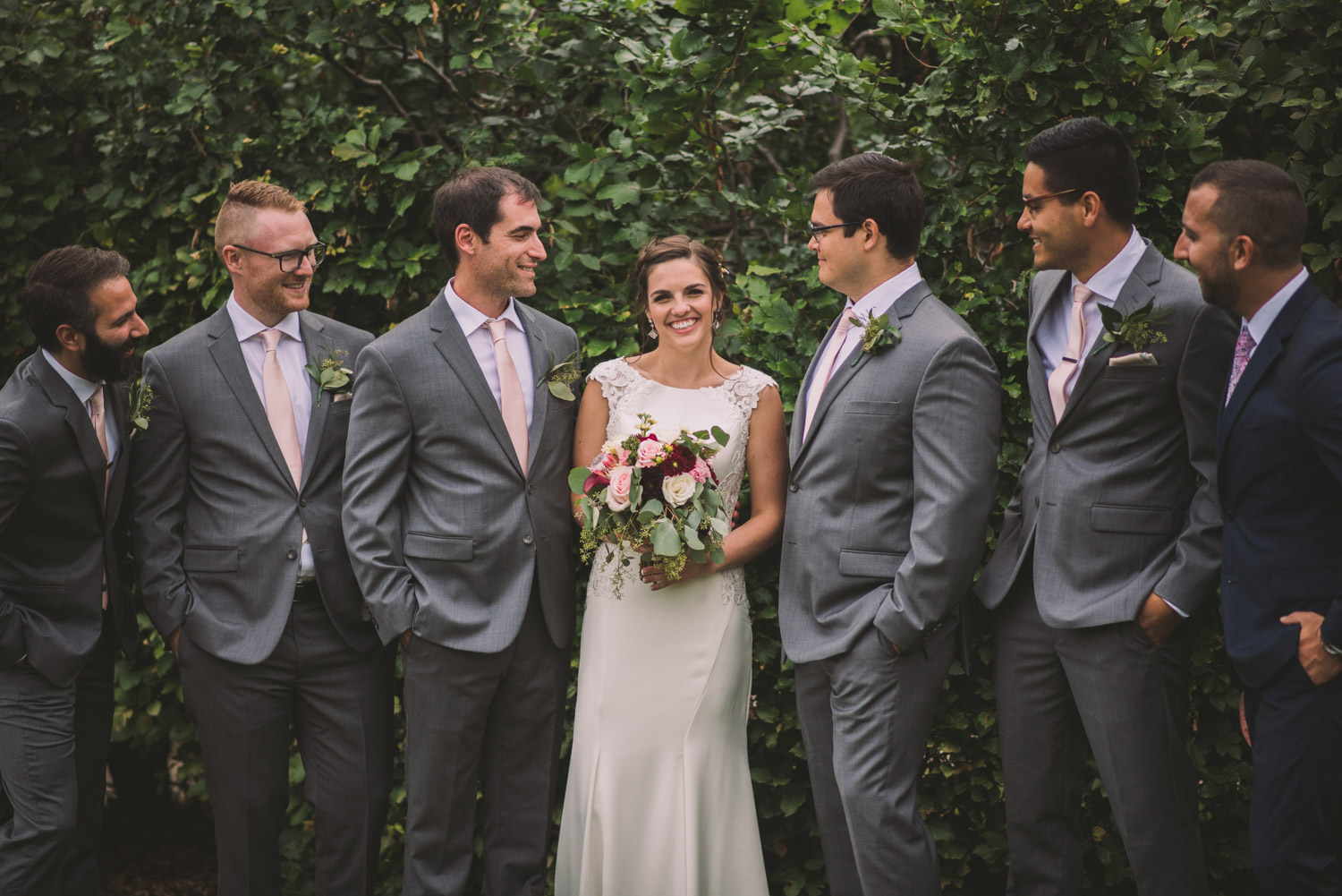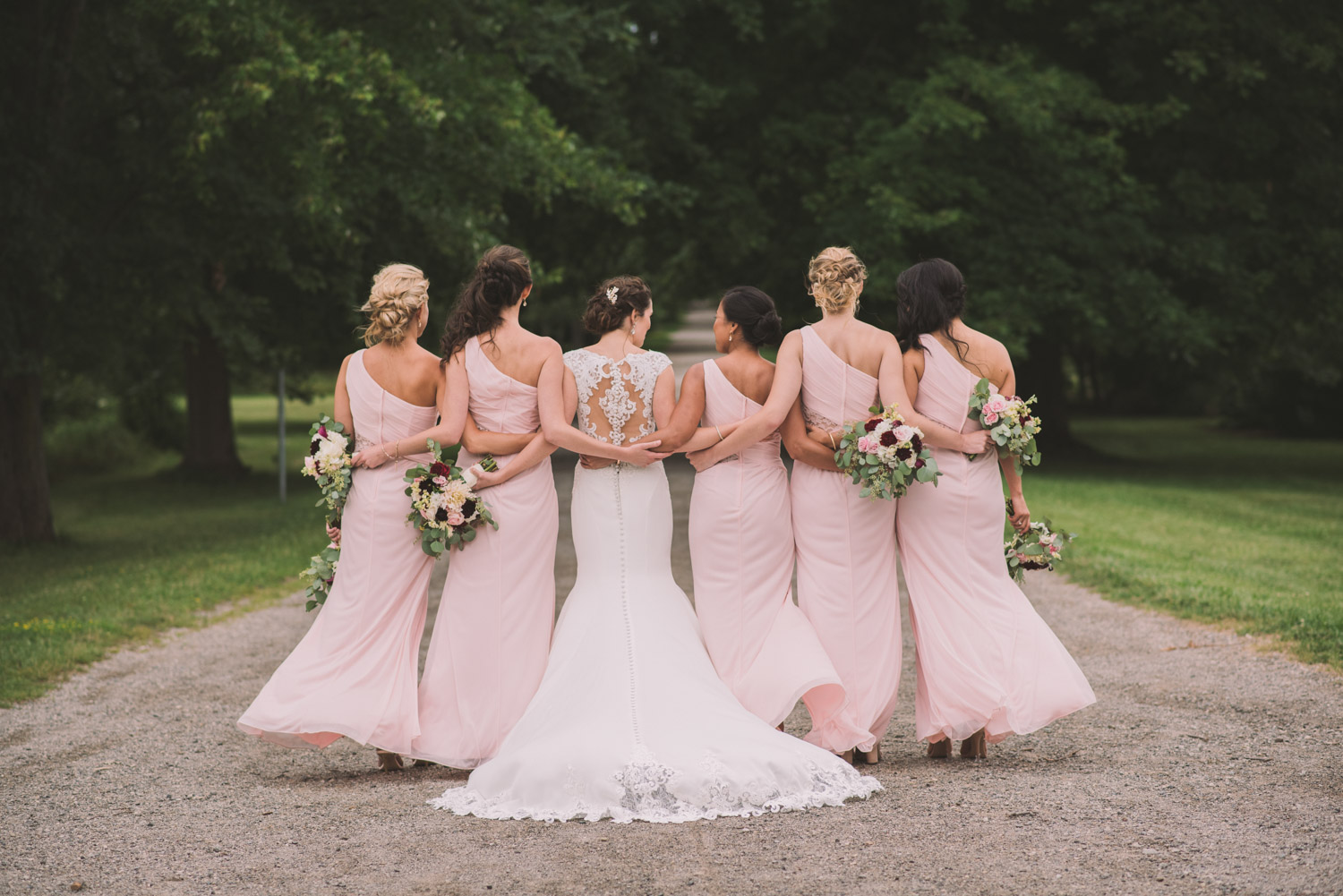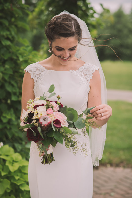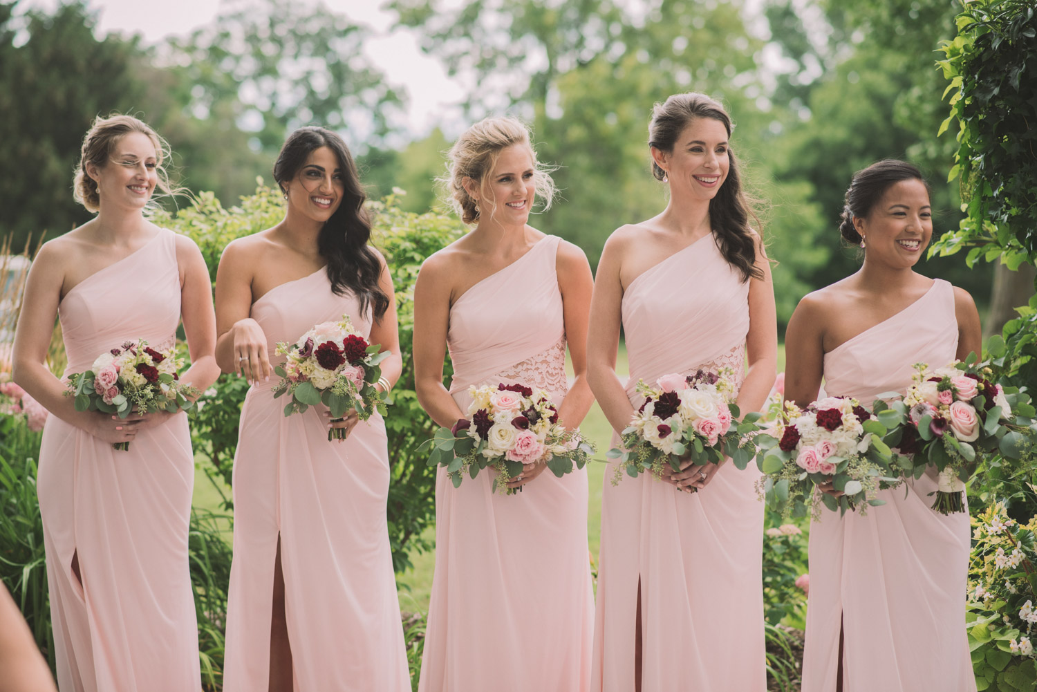 I met with Amy and Jordan at the nearby Delta Hotel for their preparation photos. Their bridal party turned out to be absolutely hilarious – which of course makes for a lot of fun! Their ceremony, behind the main building at Cutten Fields, was intimate and emotional. We followed the ceremony with family photos at the ceremony location, followed by bridal party photos at the nearby University of Guelph Arboretum space.