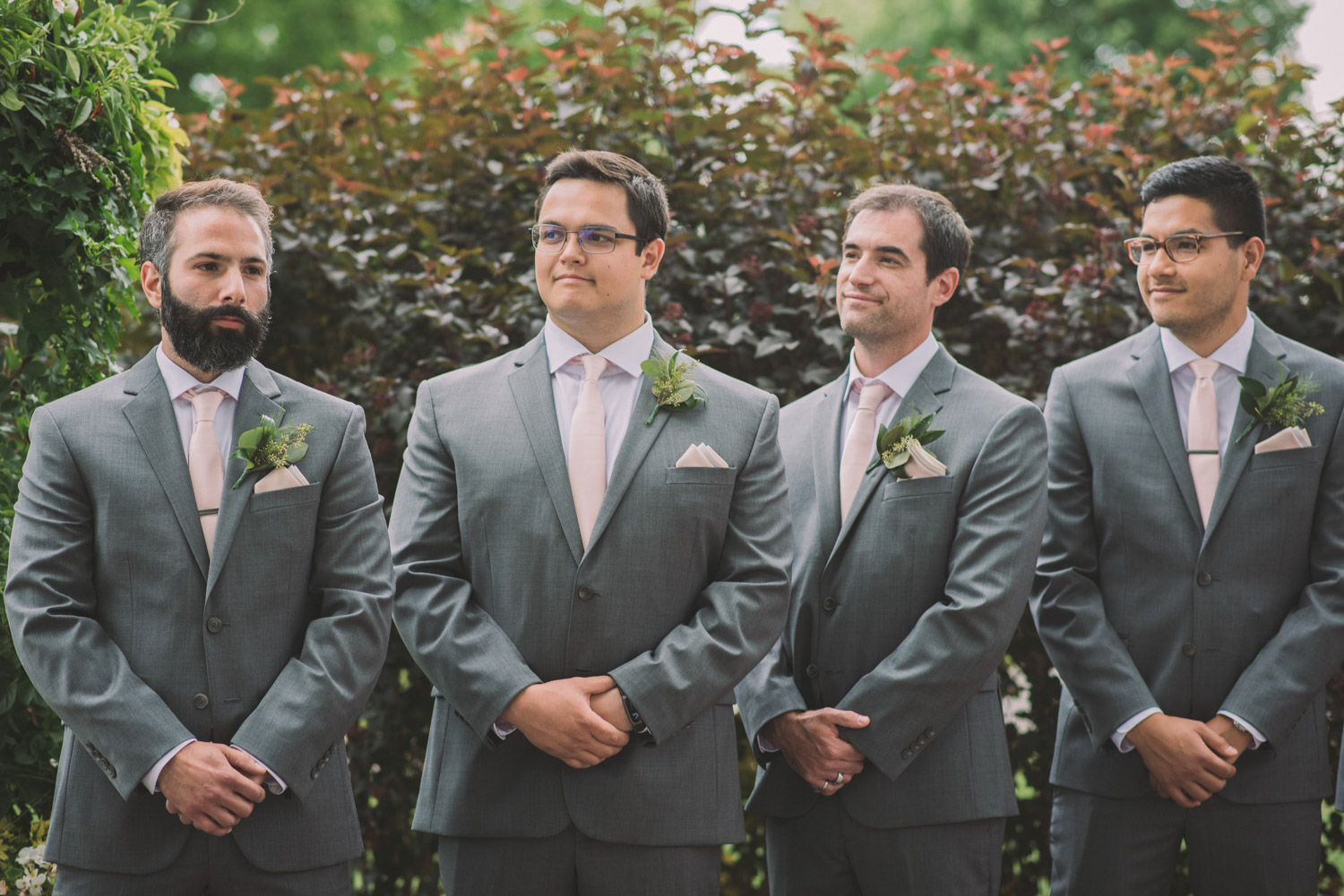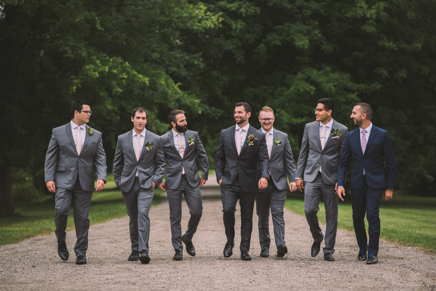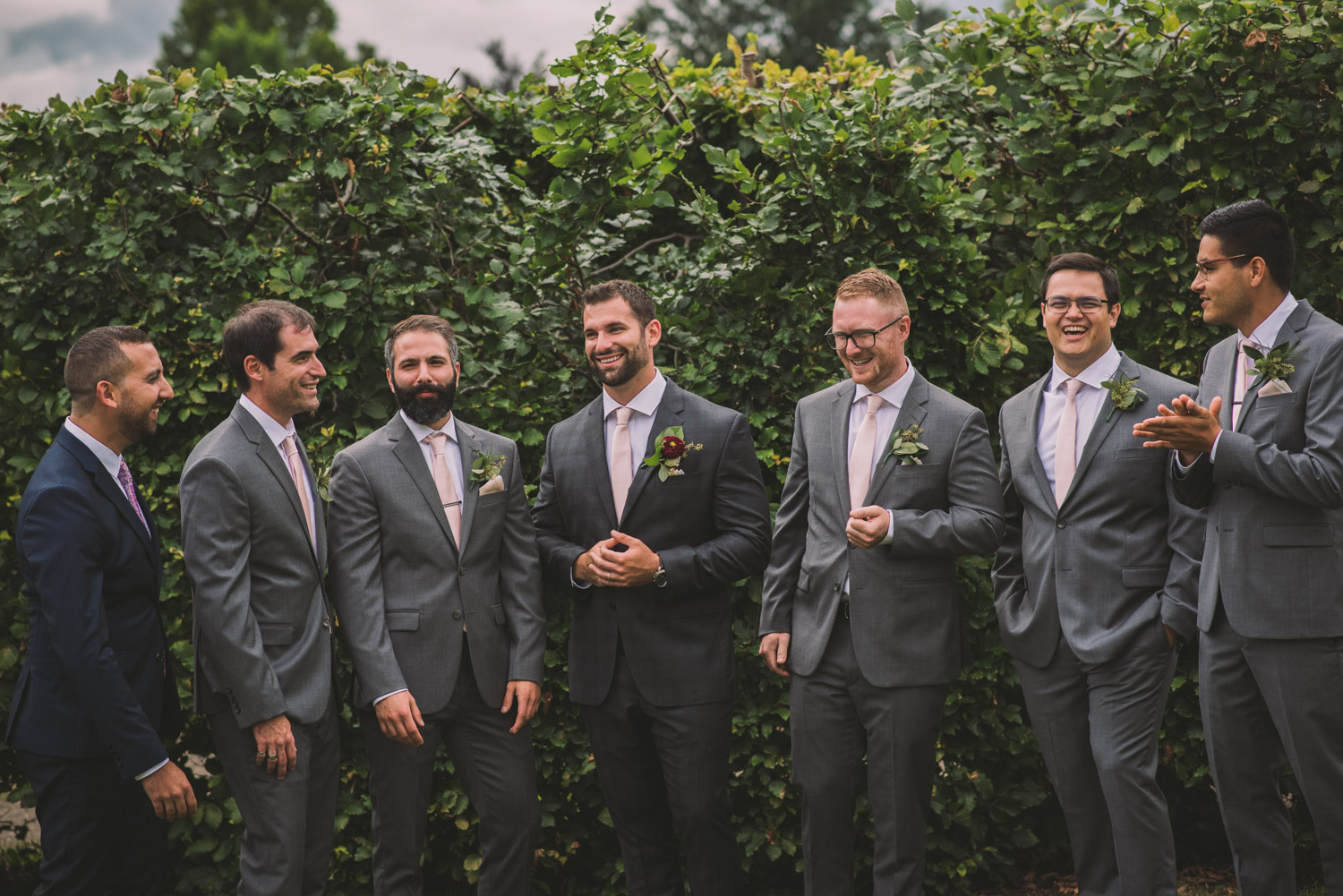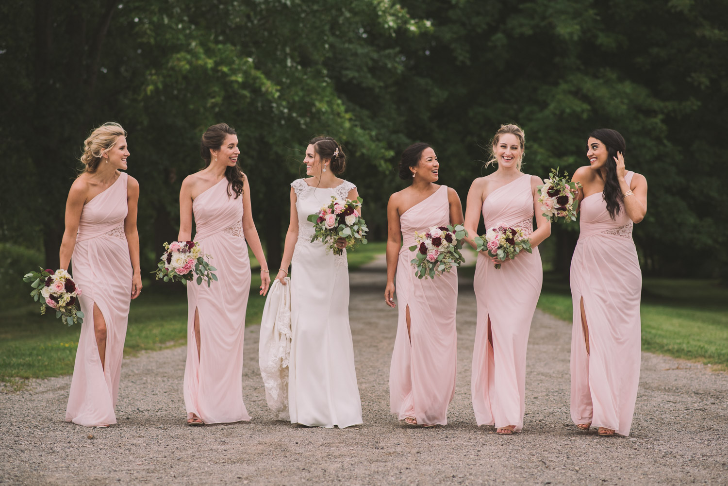 I met with Amy and Jordan at the nearby Delta Hotel for their preparation photos. Their bridal party turned out to be absolutely hilarious – which of course makes for a lot of fun! Their ceremony, behind the main building at Cutten Fields, was intimate and emotional. We followed the ceremony with family photos at the ceremony location, followed by bridal party photos at the nearby University of Guelph Arboretum space.