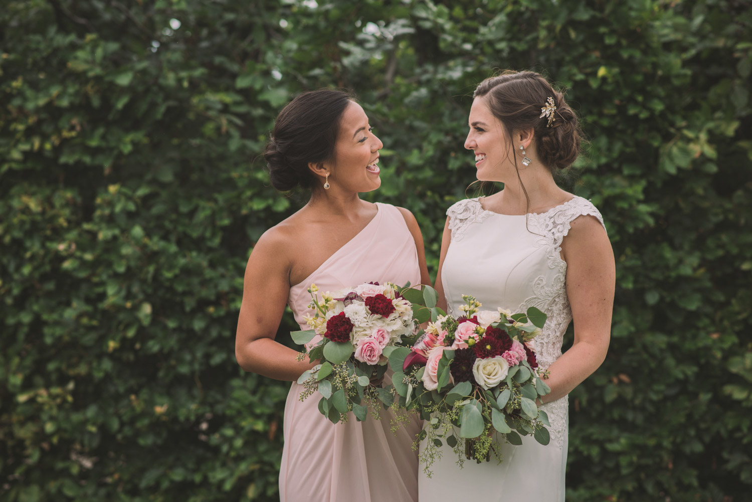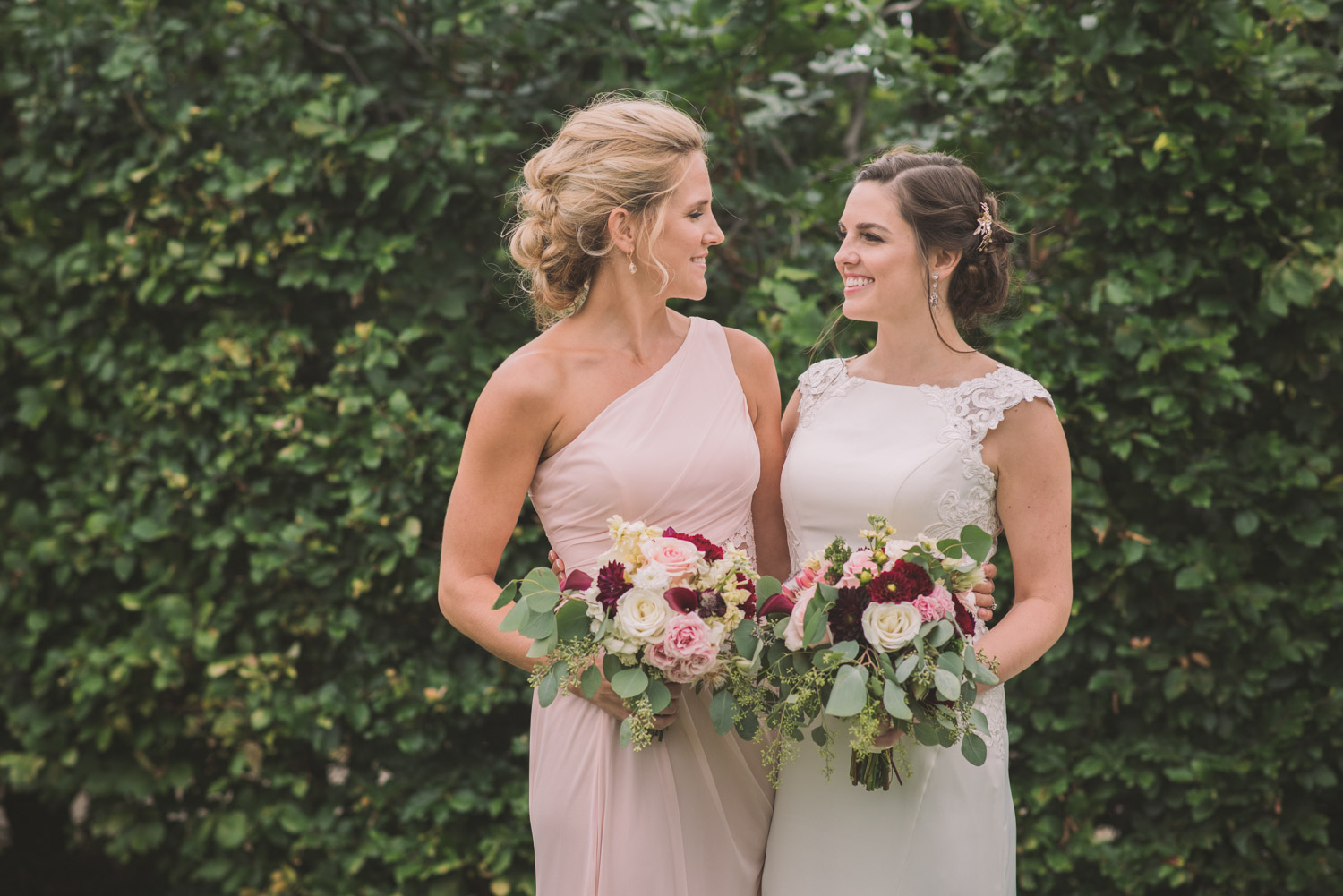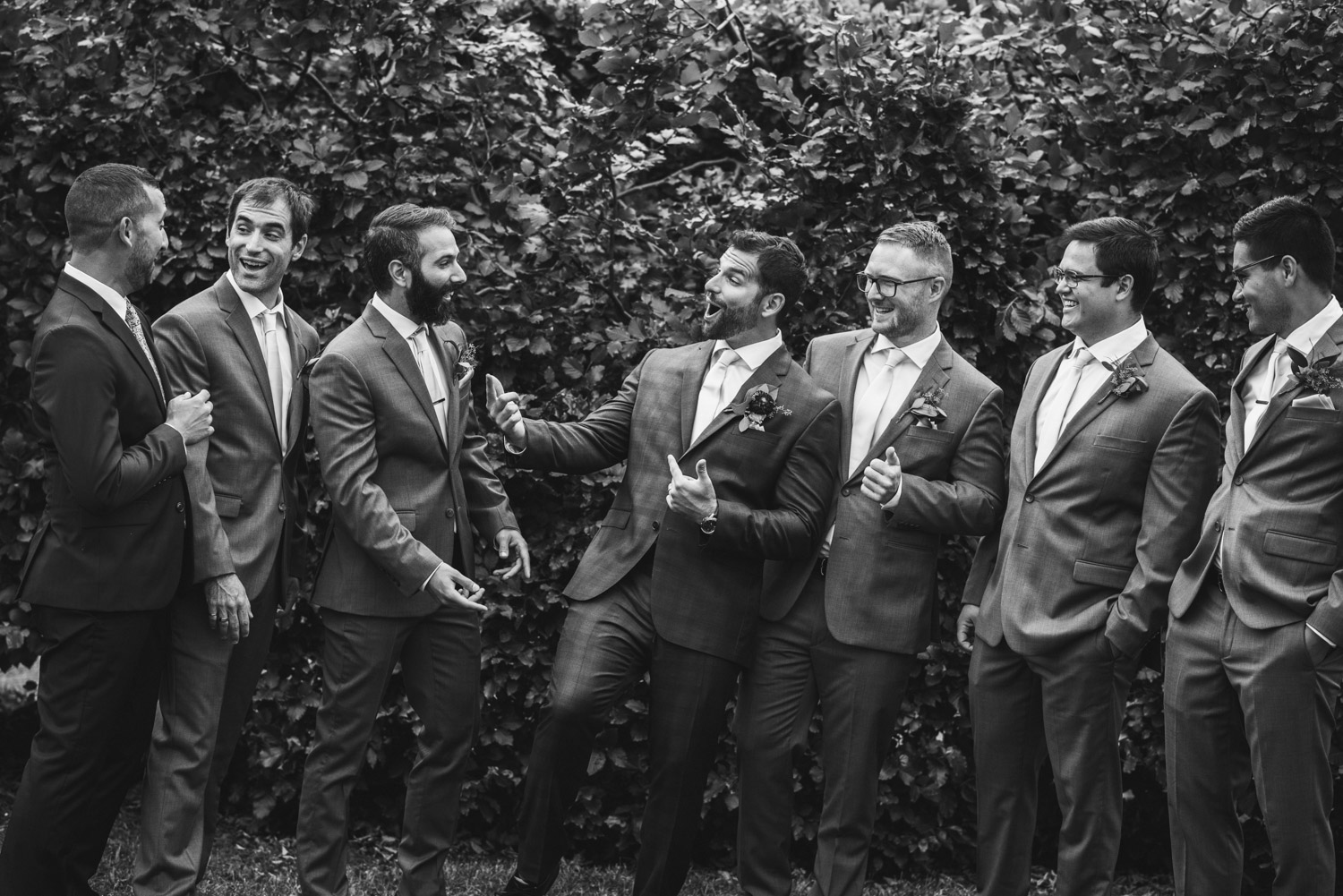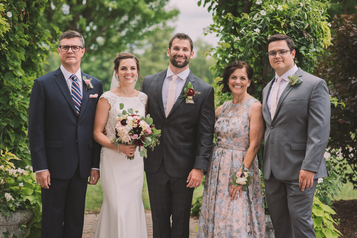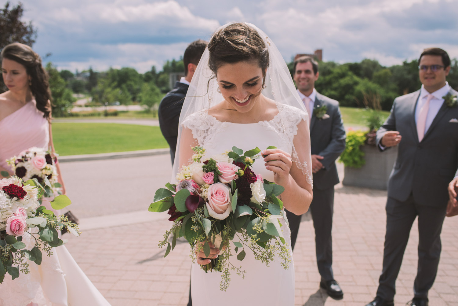 I met with Amy and Jordan at the nearby Delta Hotel for their preparation photos. Their bridal party turned out to be absolutely hilarious – which of course makes for a lot of fun! Their ceremony, behind the main building at Cutten Fields, was intimate and emotional. We followed the ceremony with family photos at the ceremony location, followed by bridal party photos at the nearby University of Guelph Arboretum space.