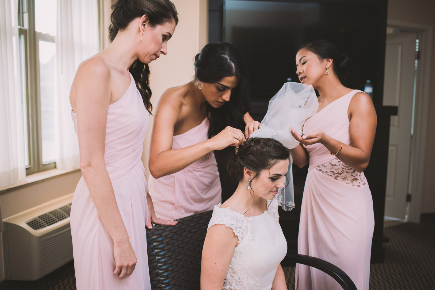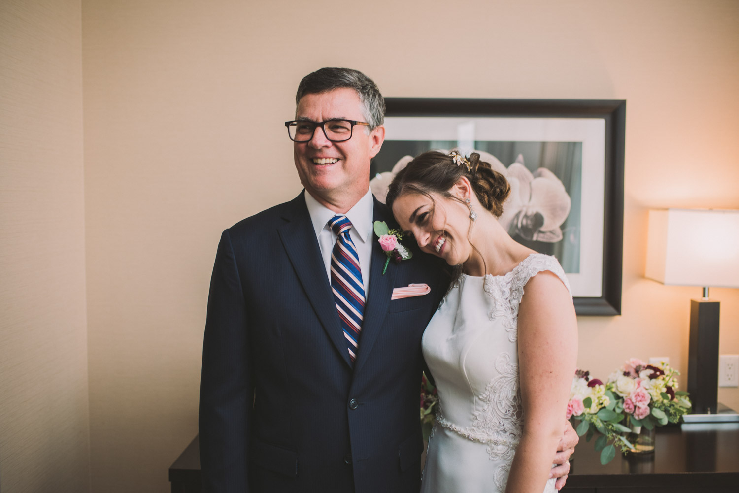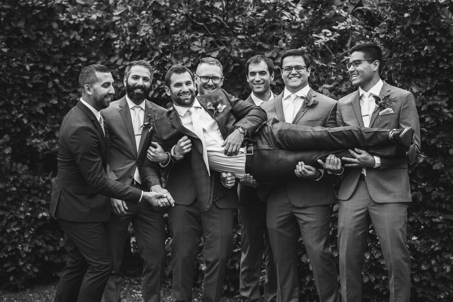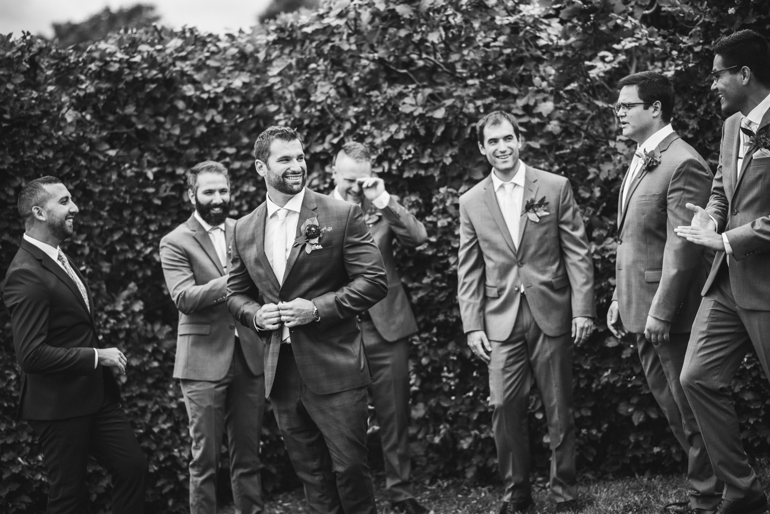 I met with Amy and Jordan at the nearby Delta Hotel for their preparation photos. Their bridal party turned out to be absolutely hilarious – which of course makes for a lot of fun! Their ceremony, behind the main building at Cutten Fields, was intimate and emotional. We followed the ceremony with family photos at the ceremony location, followed by bridal party photos at the nearby University of Guelph Arboretum space.