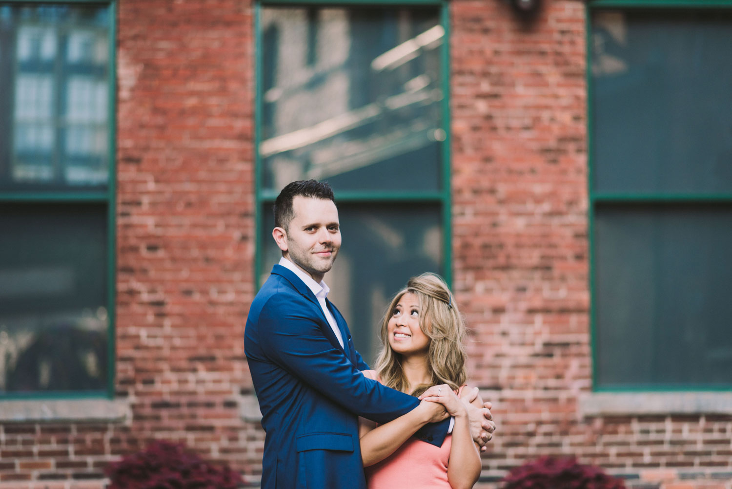 Irene was one of those clients that I immediately “clicked” with (camera pun unintended!), and I was so excited to meet her and Trevor in person for their engagement session at the historic Distillery District in Toronto.