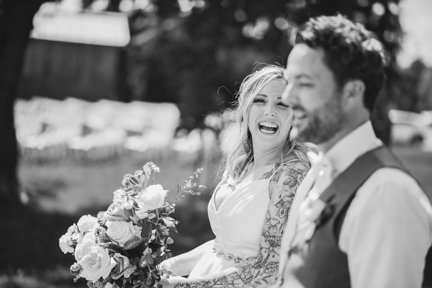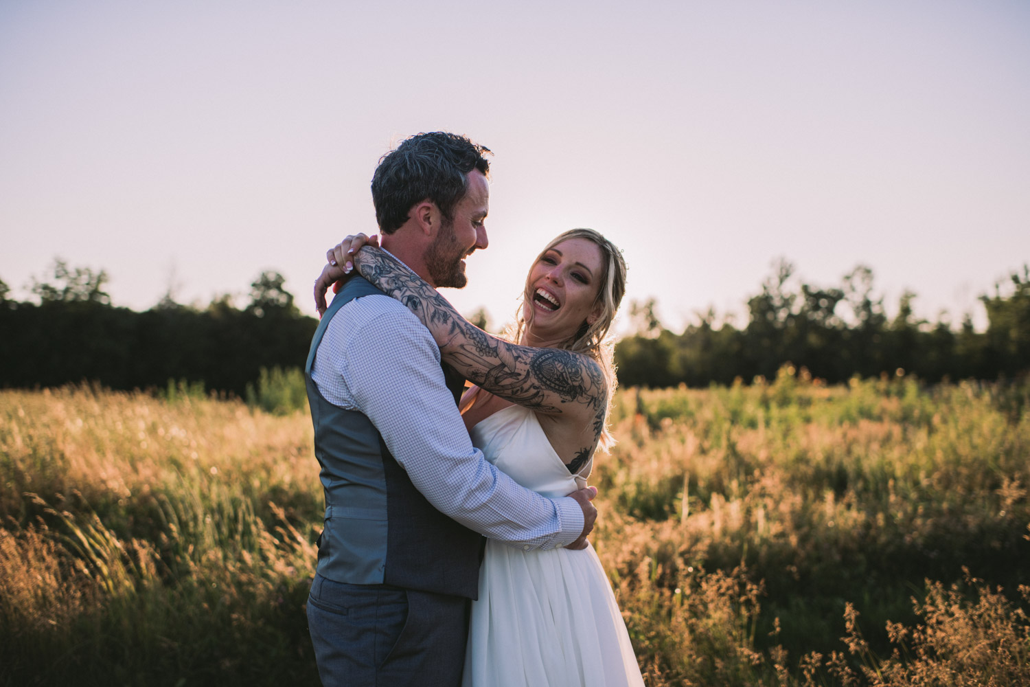 During the reception, Avan and I popped outside with Rachel and Mike around sunset for some lovely photos in a field nearby. I especially love the photo of them running down the country lane – so candid and romantic!