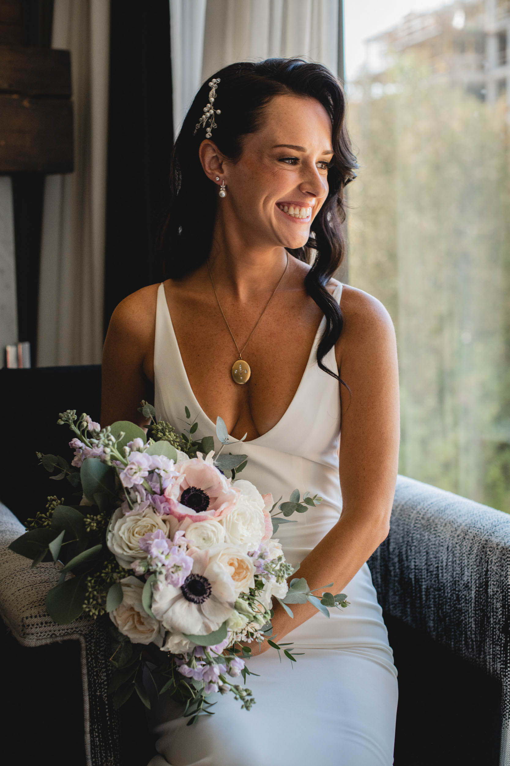 The first look was followed by some family photos as well as a photoshoot for the bride and groom. We then proceeded to the Foundry Building for their lovely ceremony, followed by more family photos and some cute evening sun photos of Sam and Sarah along the bridge!
