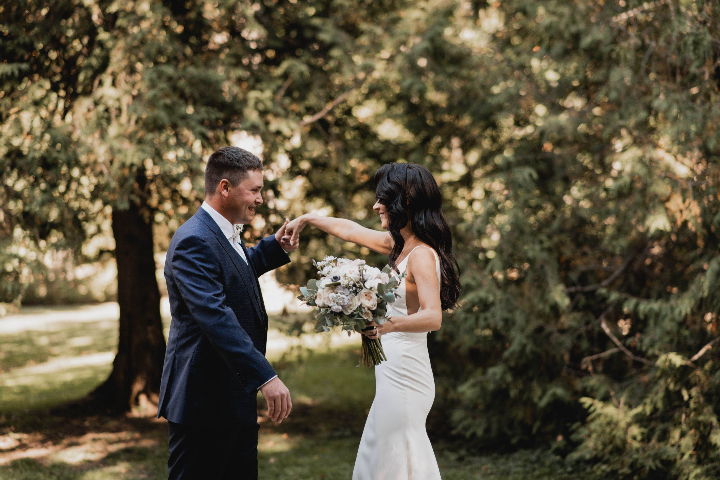 I was super excited to photograph their wedding day, and on the big day, I was accompanied by my secondary photographer David, who met up with Sam for his preparation photos, while I photographed Sarah’s prep. David and I then arranged for their first look in Elora’s Victoria Park, where Sam and Sarah saw each other first the first time that day. I love that they chose to share personal wedding vows with each other prior to the ceremony. Even though I stayed out of earshot so that the moment could be theirs alone, I found myself feeling a bit emotional seeing how much love they have for one another.