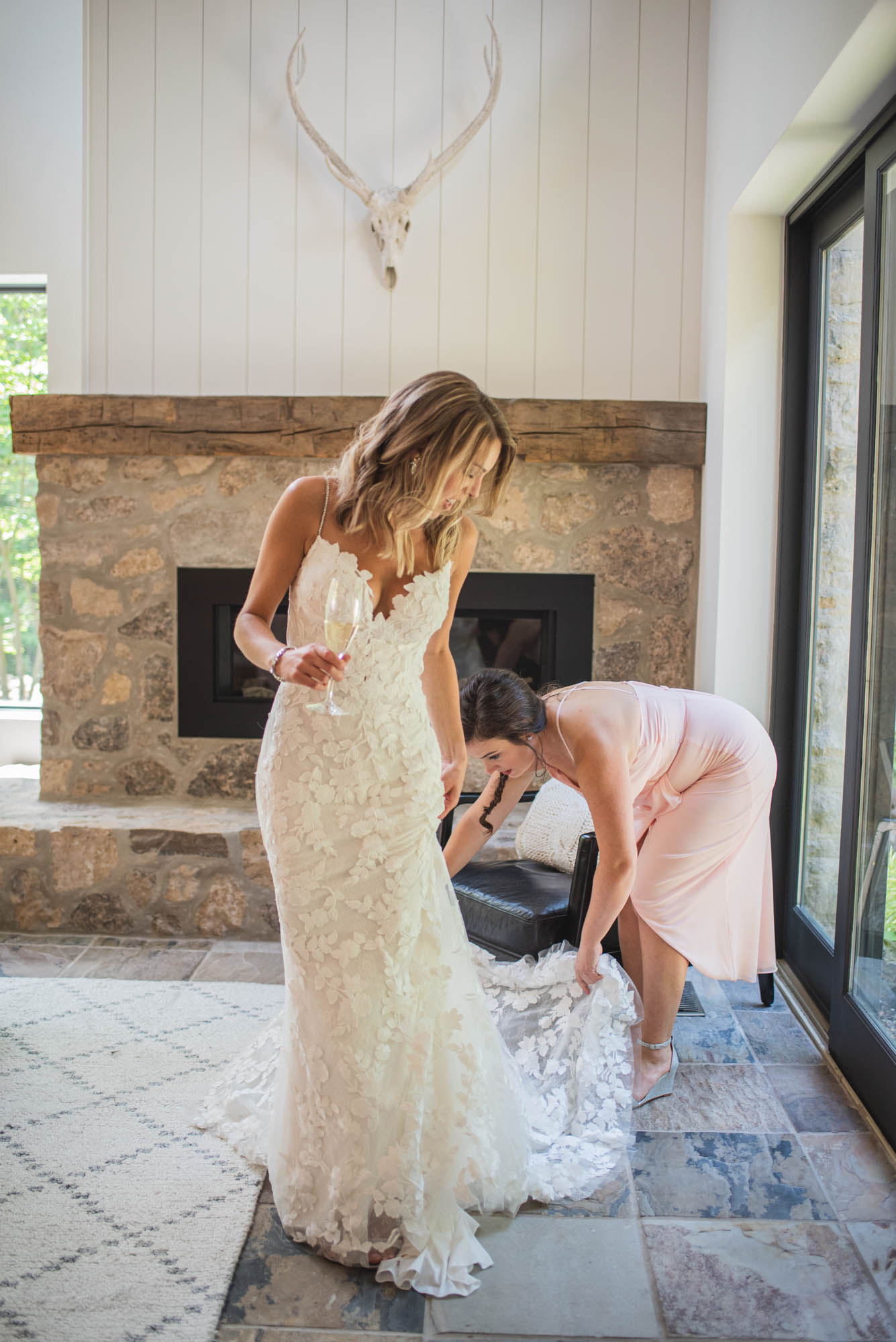 I met up with Stephanie and her bridesmaids at Cedarcliff estate in Elora, a unique castle-esque bed and breakfast overlooking the gorge. This home was the perfect backdrop for Stephanie’s getting ready photos and a little photoshoot of her in her stunning dress.