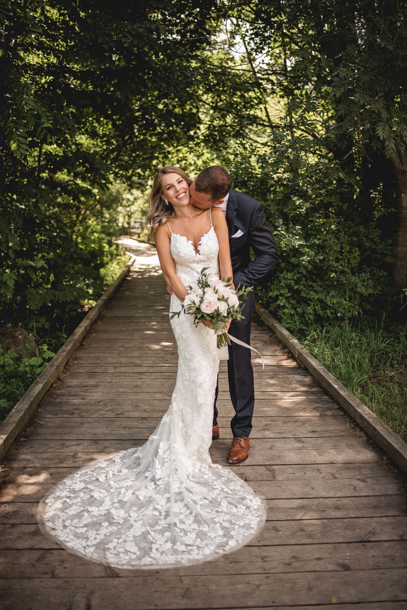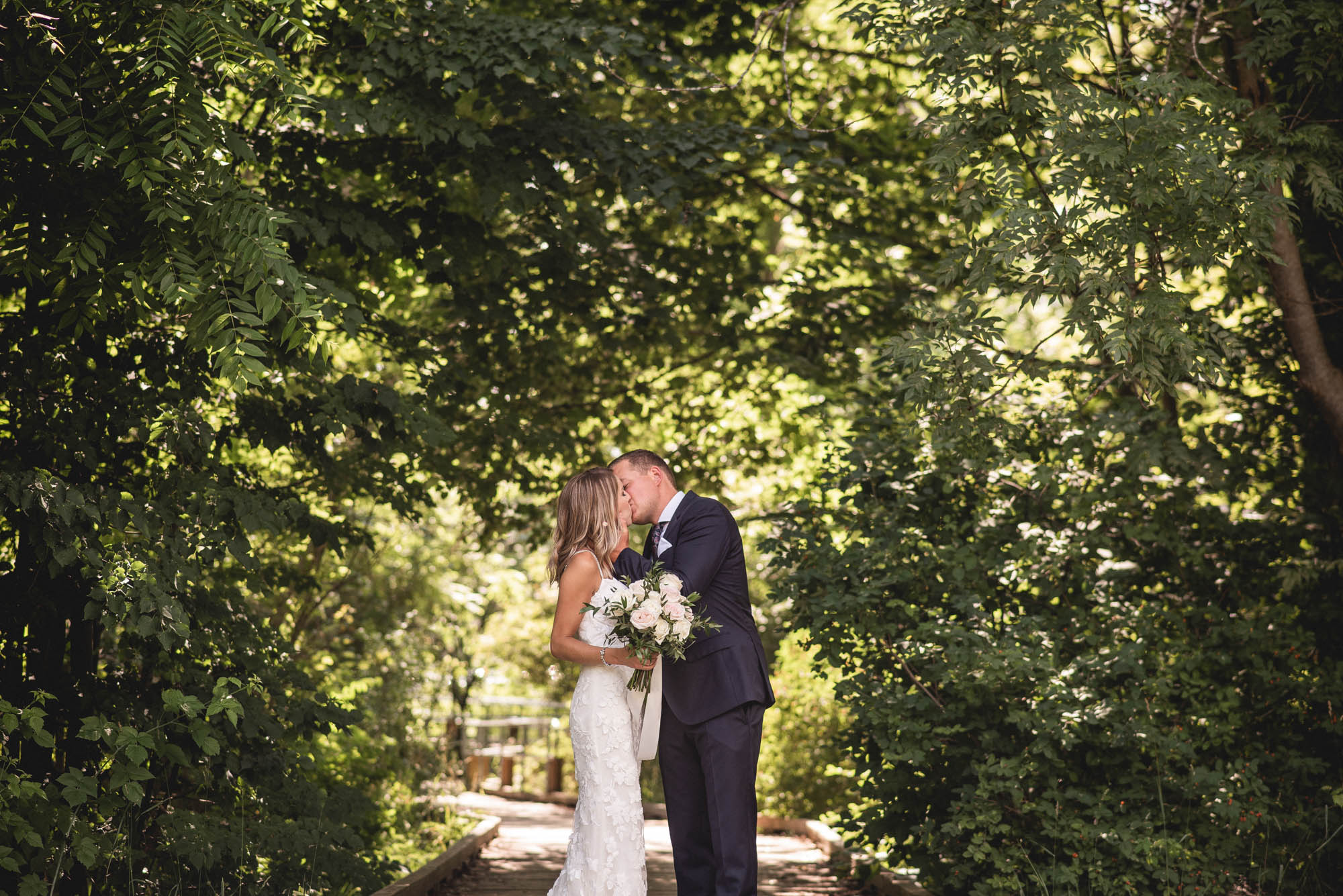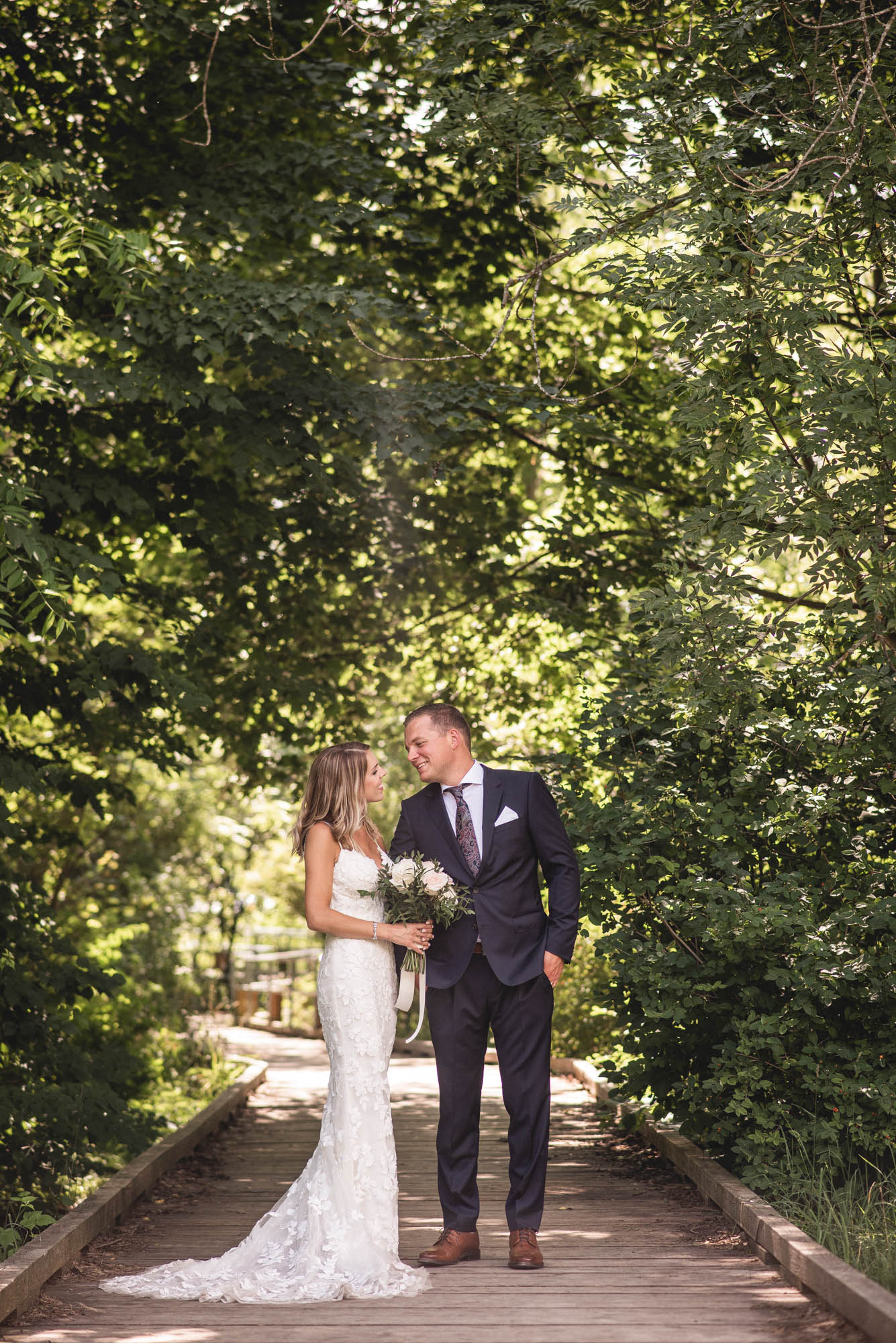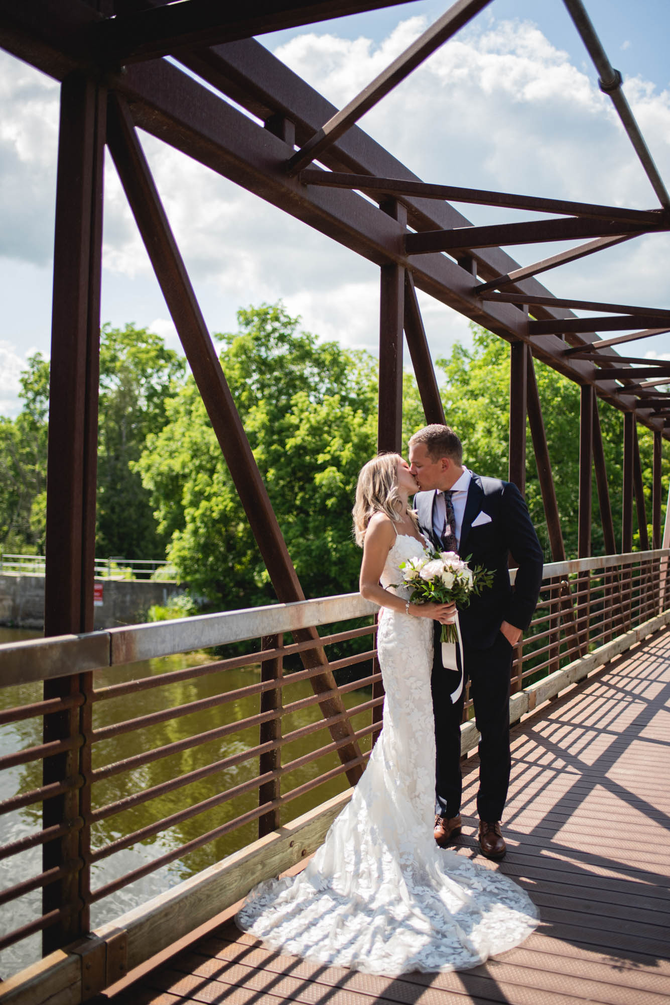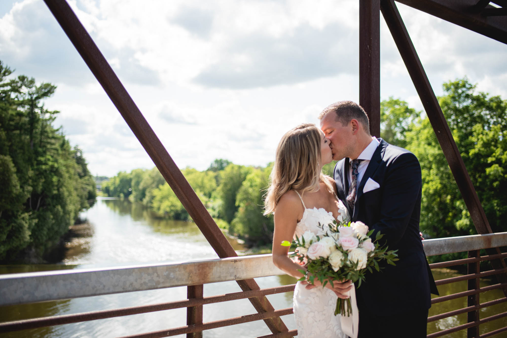 It was a perfect, hot summer day for Stephanie and Trevor’s romantic ceremony at Elora Mill’s outdoor chapel, followed by family and bridal party photos in the much-needed shade of the Foundry Building. Stephanie and Trevor chose nearby Bissell Park for their photoshoot. The heat kept our photoshoot quick as Stephanie and Trevor were eager to get back to the Mill for a nice cold drink with their closest family and friends.