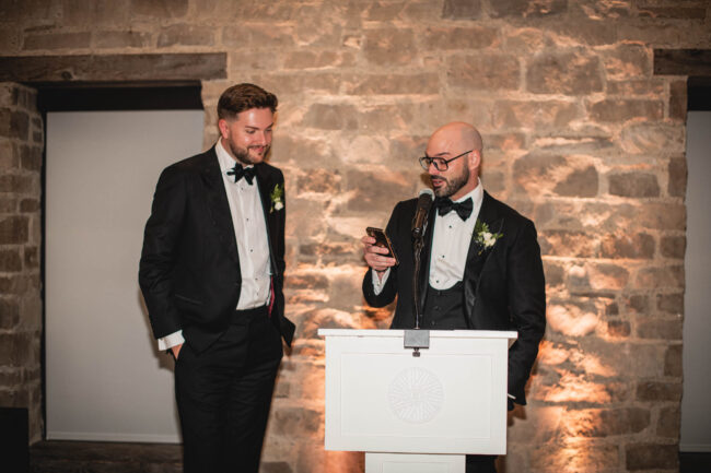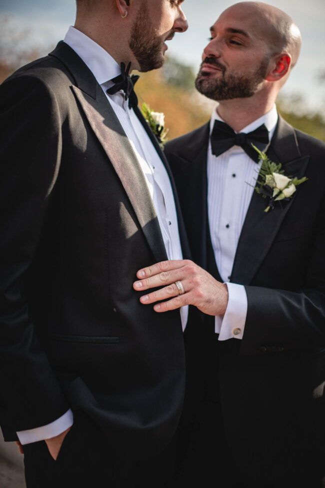 Some weddings feel extra close to the heart, and Tyson and Gordon’s was definitely one of them. Tyson and I met well over a decade ago when he was modelling with a local agency, and we worked together on countless shoots over the years. Later, when he became an event coordinator at the iconic Elora Mill, I’d run into him often while photographing my couples there, which was always such a lovely full-circle moment. So when he and Gordon got engaged and chose me to document their wedding, I was incredibly honoured. With all the photographers Tyson has worked with throughout his career, the fact that he reached out to me meant the world!