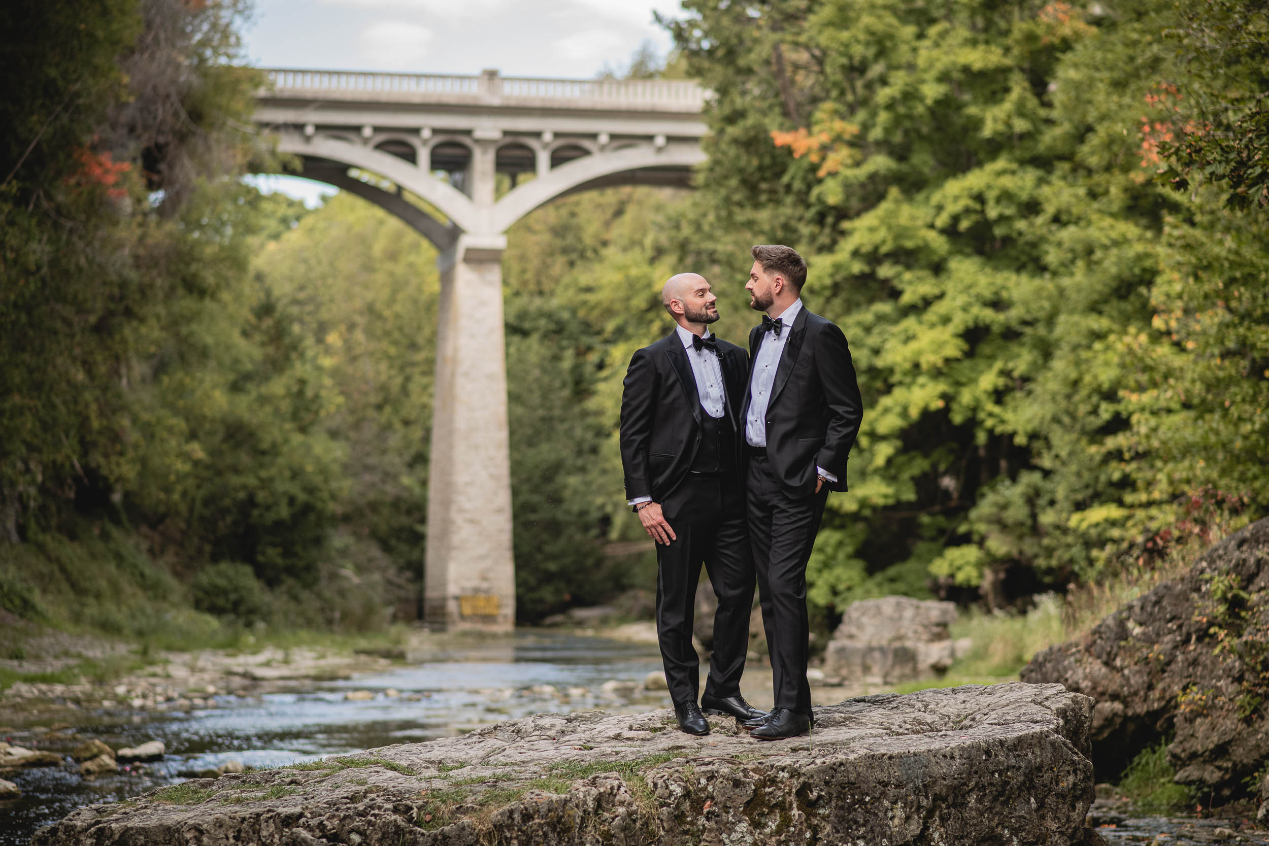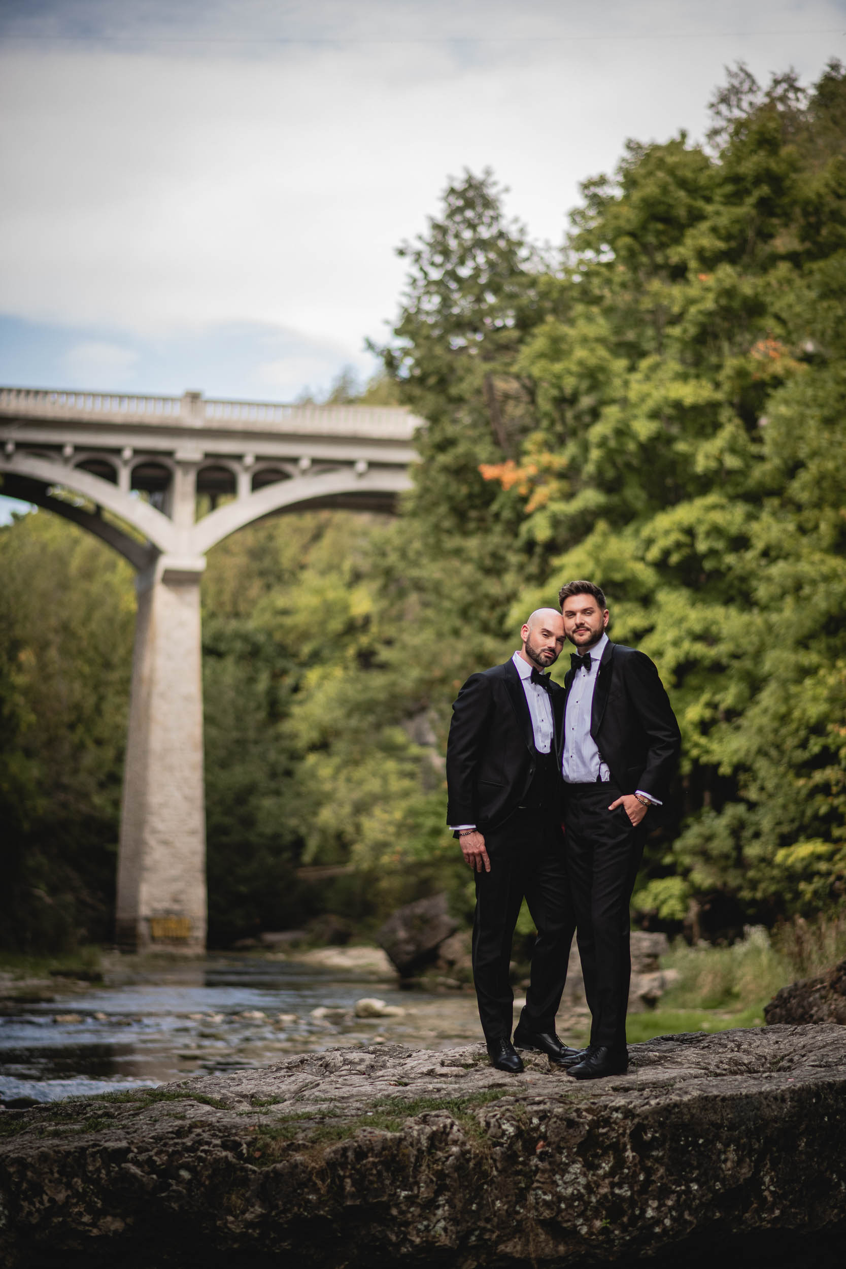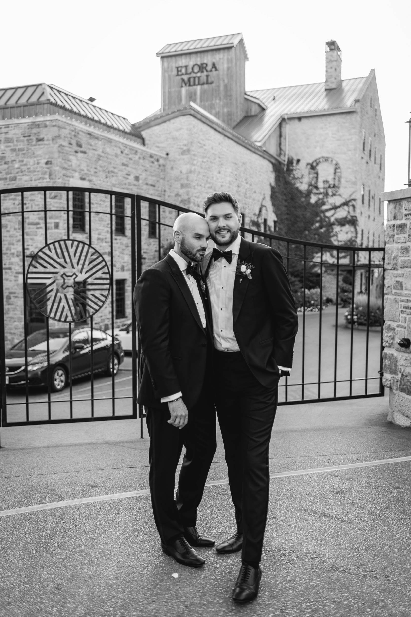 Some weddings feel extra close to the heart, and Tyson and Gordon’s was definitely one of them. Tyson and I met well over a decade ago when he was modelling with a local agency, and we worked together on countless shoots over the years. Later, when he became an event coordinator at the iconic Elora Mill, I’d run into him often while photographing my couples there, which was always such a lovely full-circle moment. So when he and Gordon got engaged and chose me to document their wedding, I was incredibly honoured. With all the photographers Tyson has worked with throughout his career, the fact that he reached out to me meant the world!