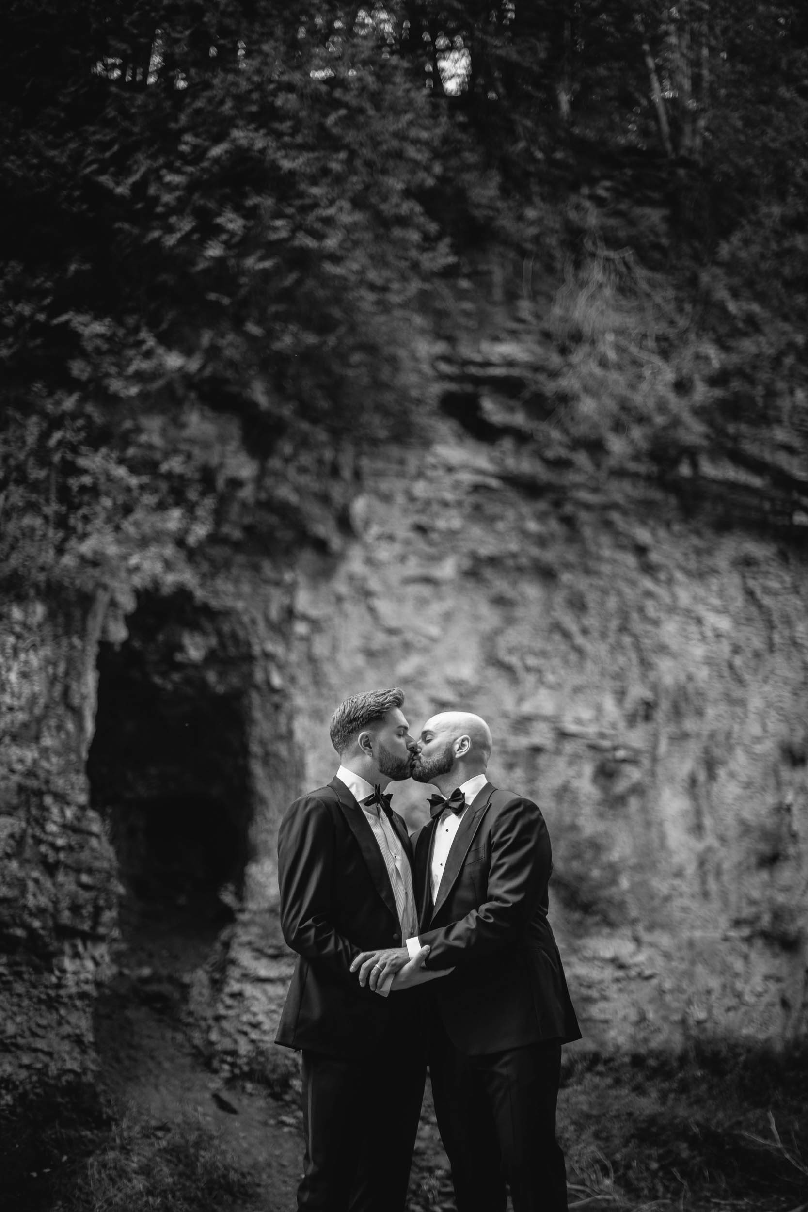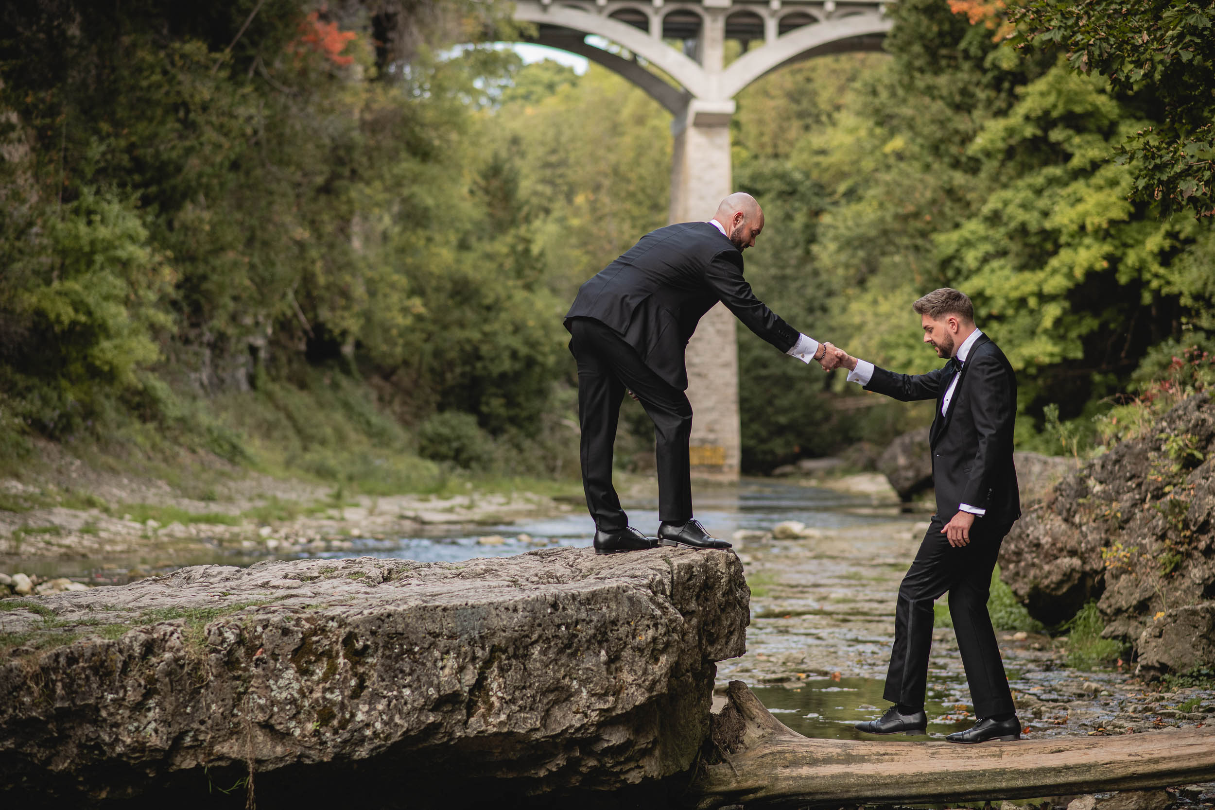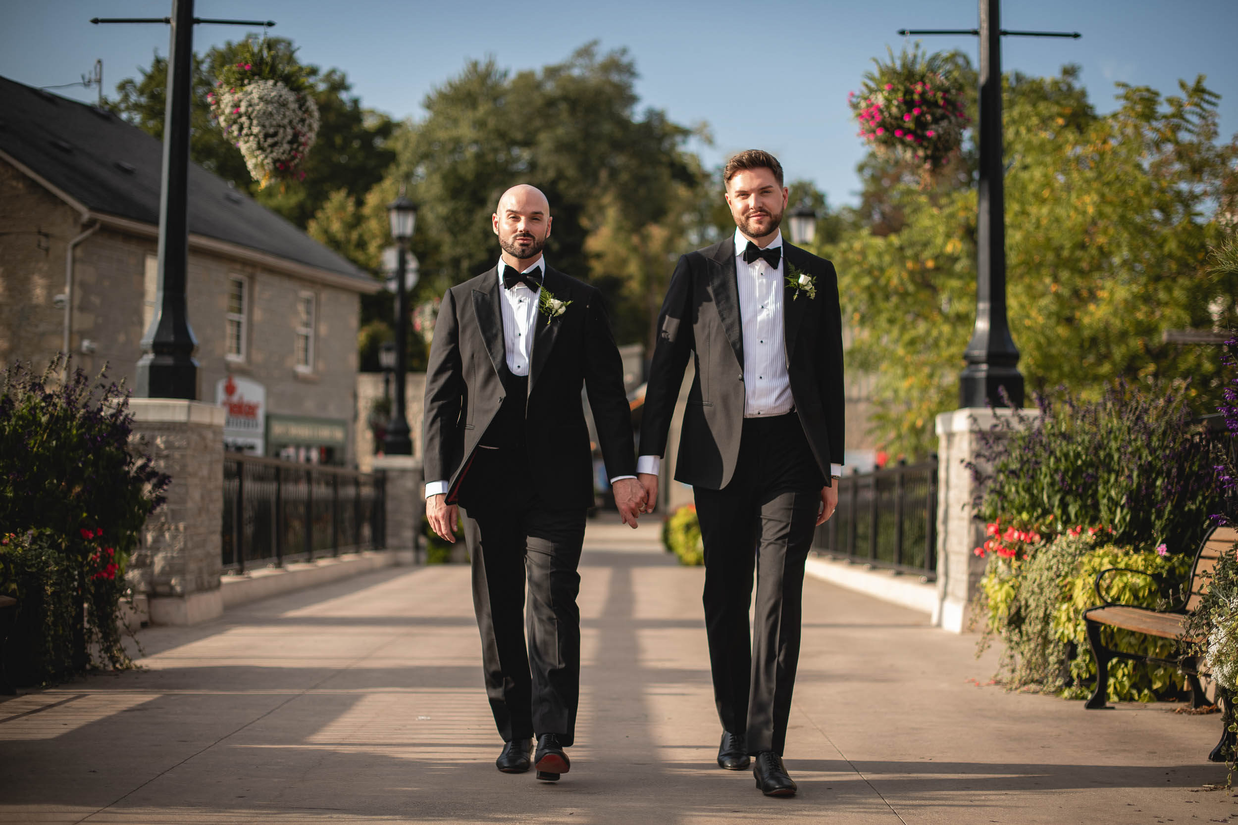 Some weddings feel extra close to the heart, and Tyson and Gordon’s was definitely one of them. Tyson and I met well over a decade ago when he was modelling with a local agency, and we worked together on countless shoots over the years. Later, when he became an event coordinator at the iconic Elora Mill, I’d run into him often while photographing my couples there, which was always such a lovely full-circle moment. So when he and Gordon got engaged and chose me to document their wedding, I was incredibly honoured. With all the photographers Tyson has worked with throughout his career, the fact that he reached out to me meant the world!