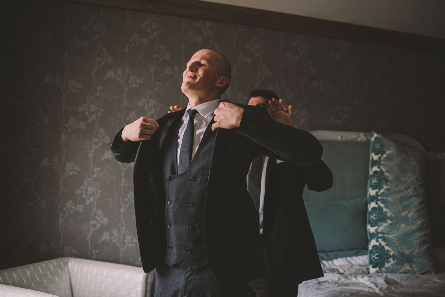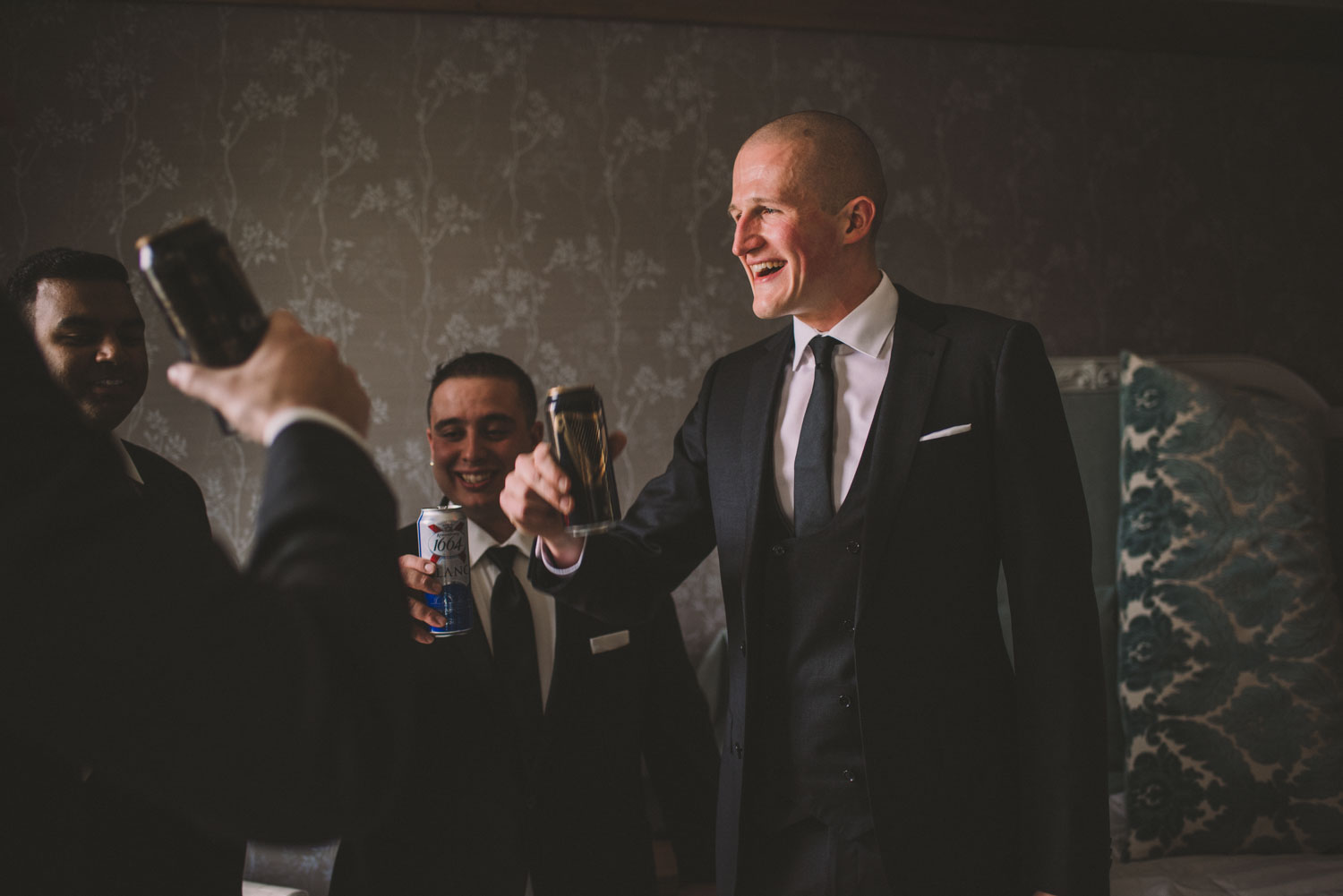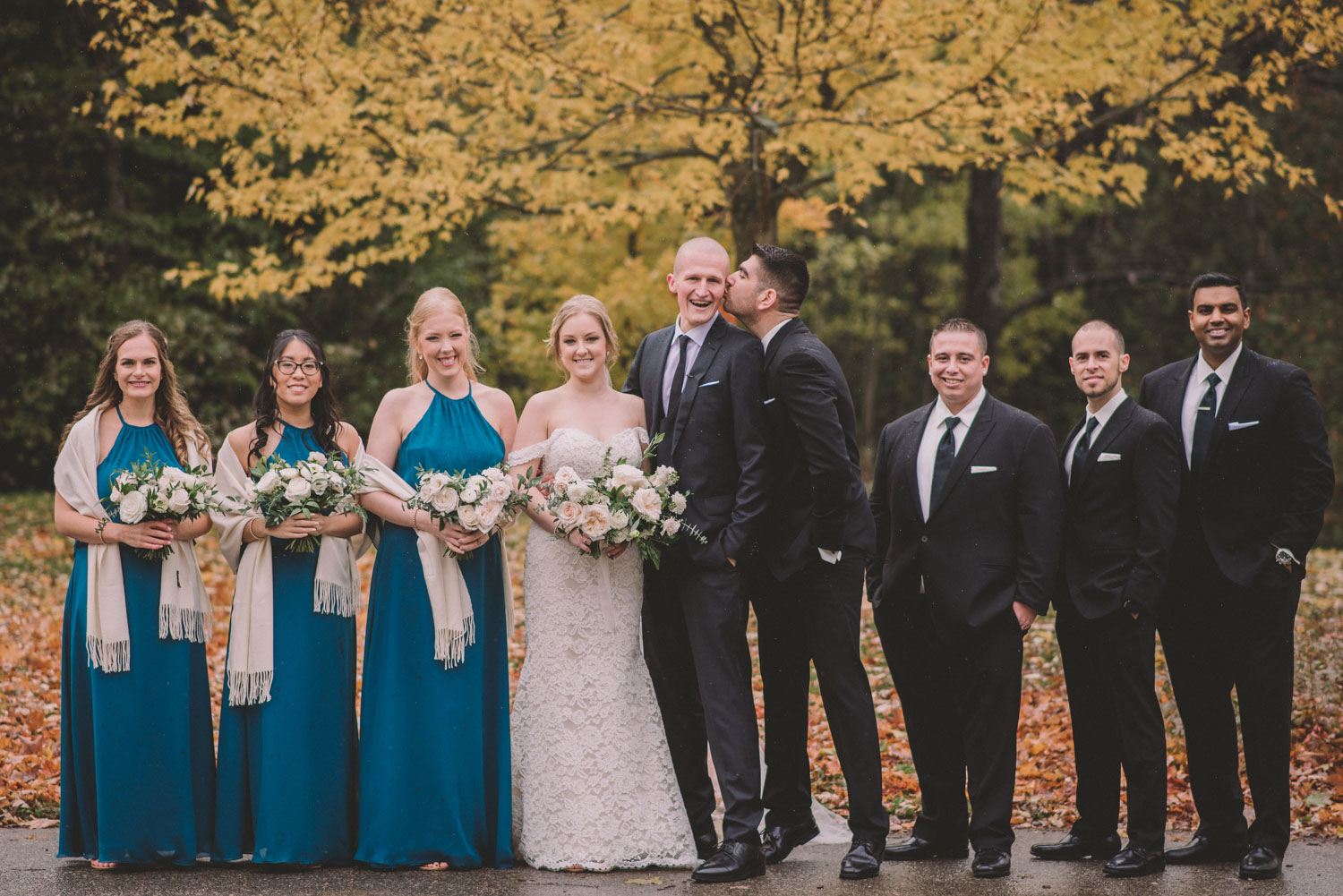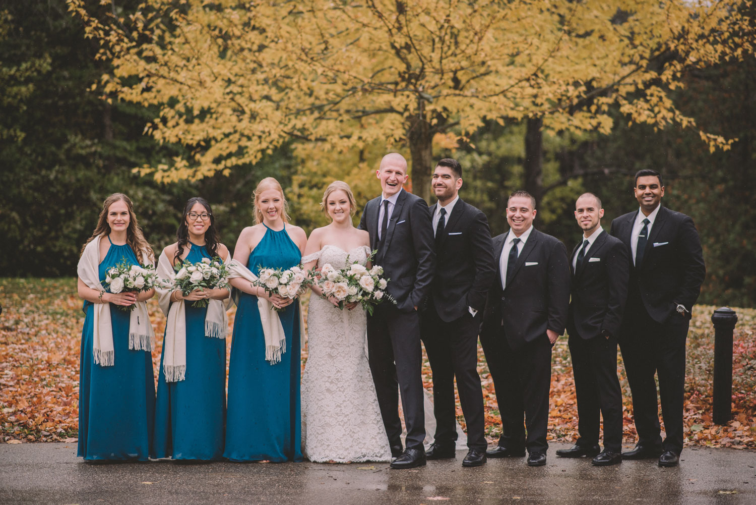 We started the day by capturing both Angelina and Brian’s preparation, then their hilarious first look – where Angelina put a spin on things by donning a Darth Vadar mask as she approached Brian. Myself and the videography team (Eksena Films) were stifling laughter as she surprised him! We followed the first look with bride+groom and bridal party photography in nearby Victoria Park. Though it was cold and rainy, we captured gorgeous (and often hilarious) photos! I love all the photos of their candid laughter!