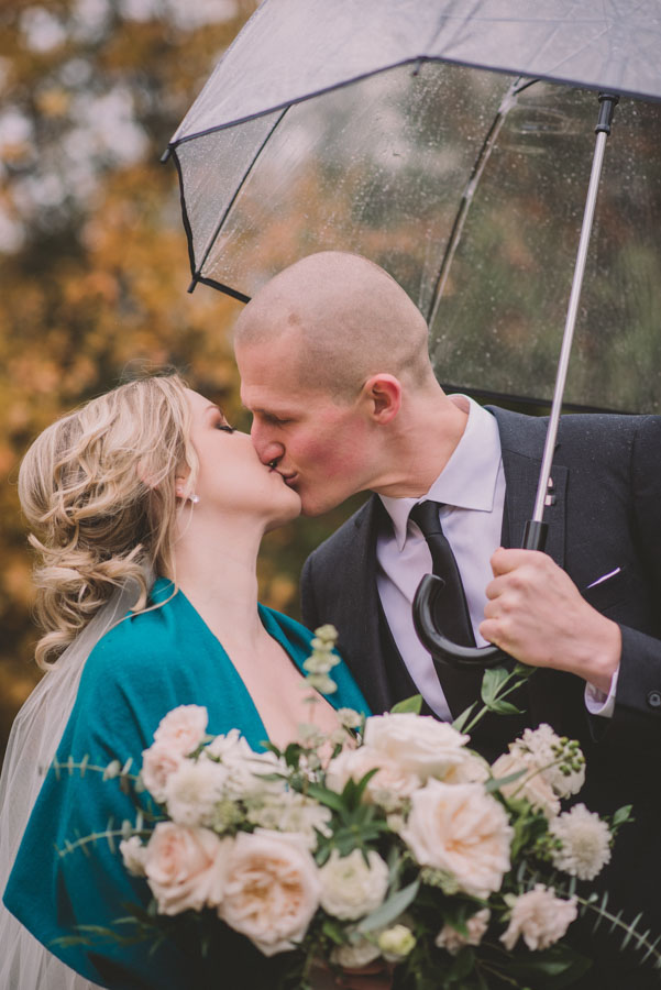 Their beautiful wedding day took place in late October. Though it was a cloudy, cold, and rainy day – their wedding was the perfect testament that even when the weather doesn’t completely work out, you can still have the most perfect wedding day ever!