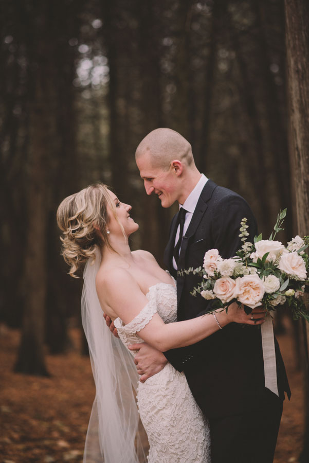 Angelina and Brian were one such couple! We first worked together on their engagement session which took place in Victoria Park and the Elora Gorge in the early spring. The stairs down to the river were in deep shade, and as such they were covered in snow and ice – but that wasn’t going to stop Angelina, who was in heels! We more or less rapelled down the stairs using the hand rail for support and made it down (and back up) unscathed – and captured some fantastic photos as a result!
