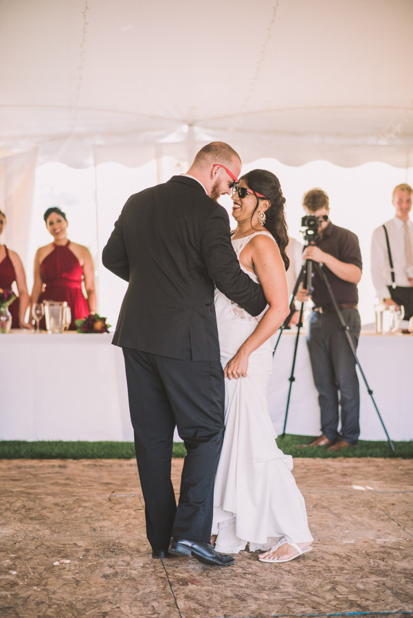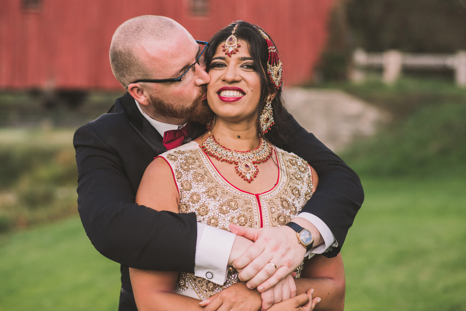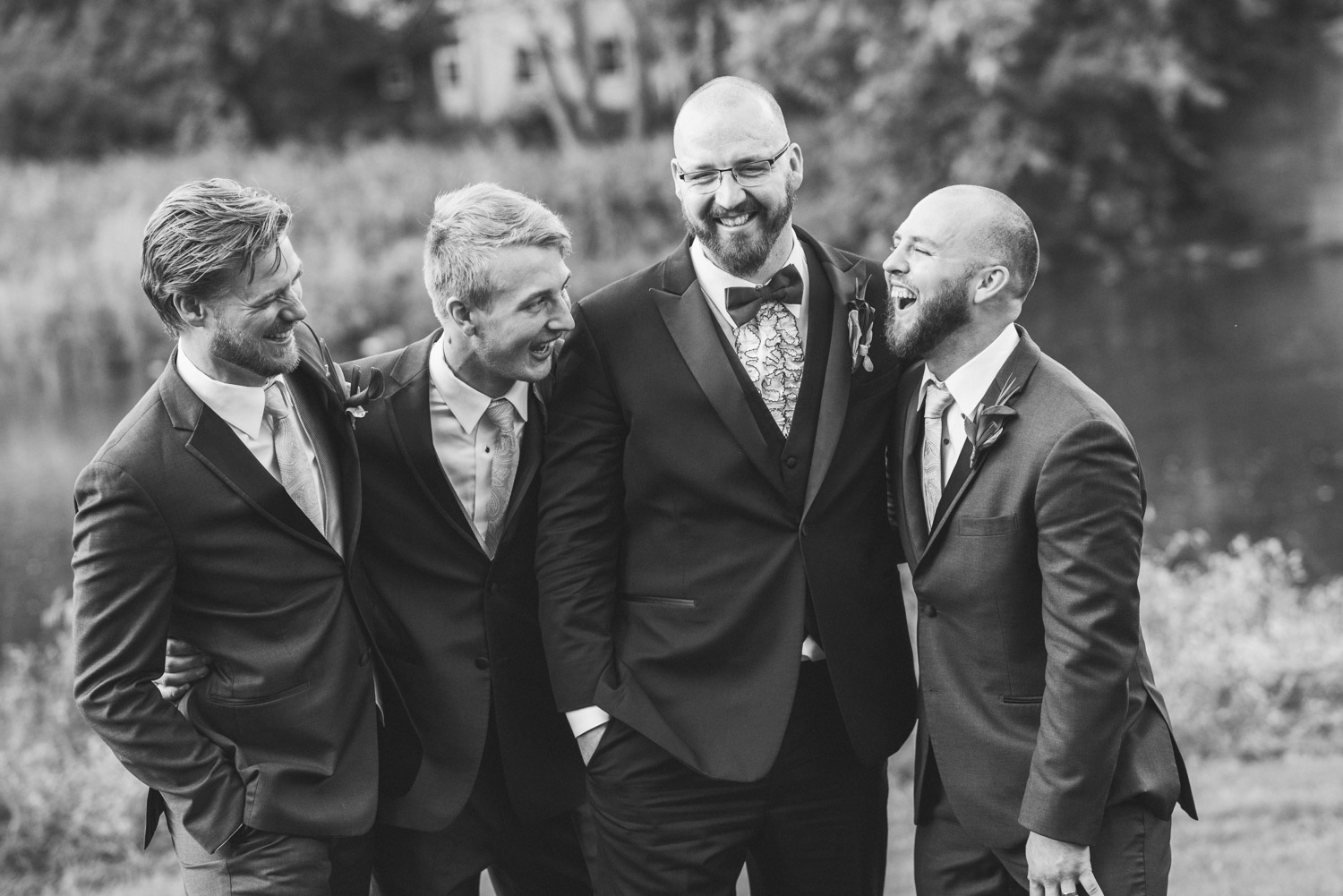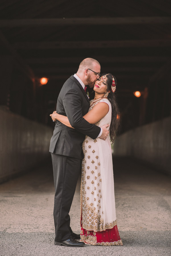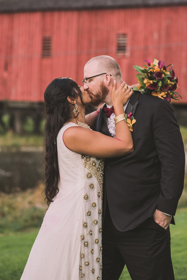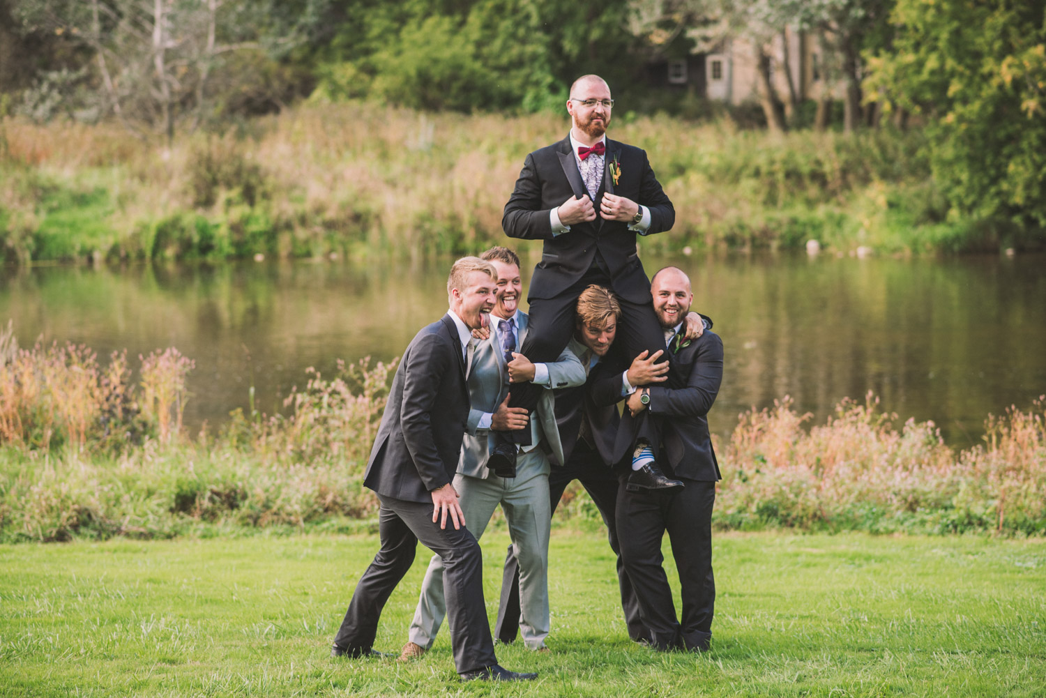 Irim and Tyler’s wedding took place in Elora, on Tyler’s family’s beautiful property. We started the day with preparation photos of both the boys and girls – I LOVED Irim’s intricate and beautiful jewellery and dress! Irim and Tyler’s emotional ceremony took place in front of his family’s home surrounded by family and friends. We then headed to the historic West Montrose Covered Bridge nearby for family photos and bridal party photography. This bridal party was HILARIOUS! I was in stitches as we captured their antics. So much fun!