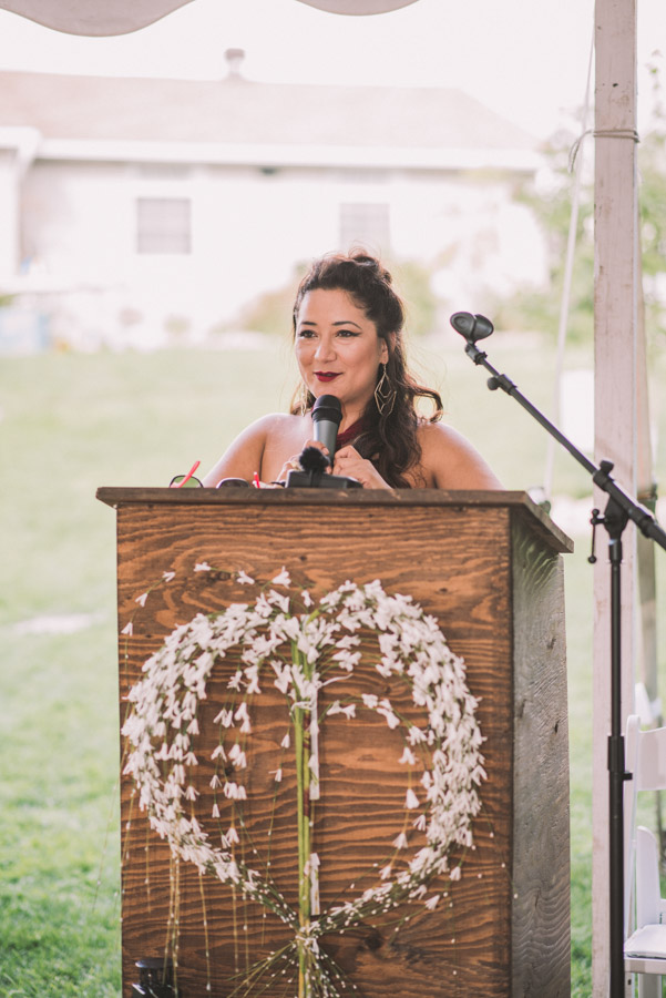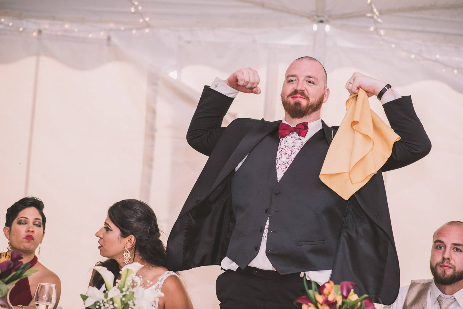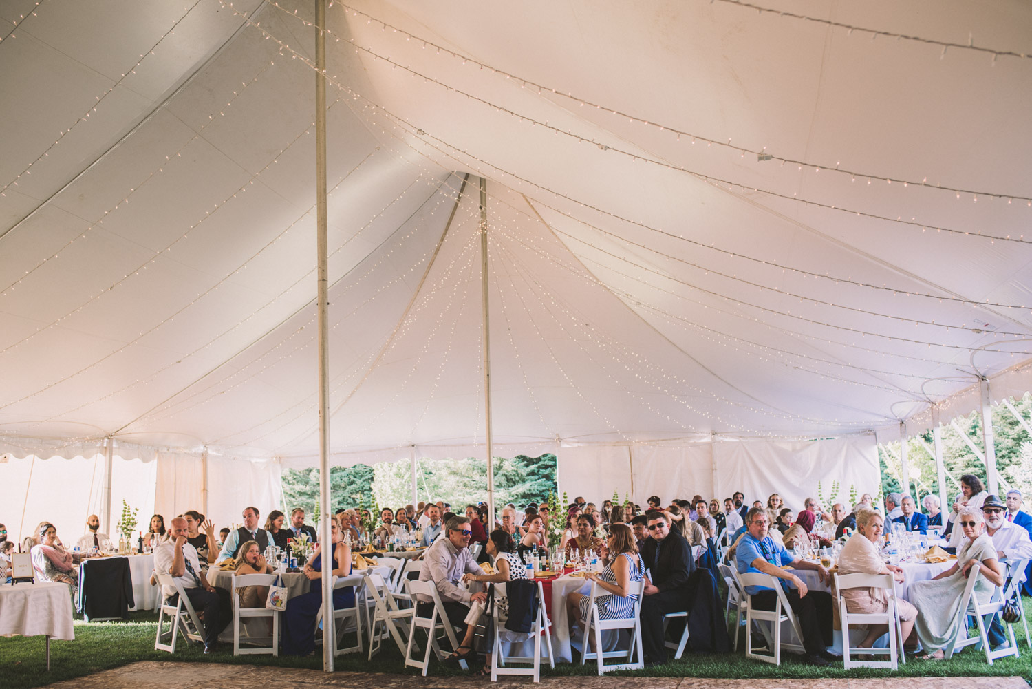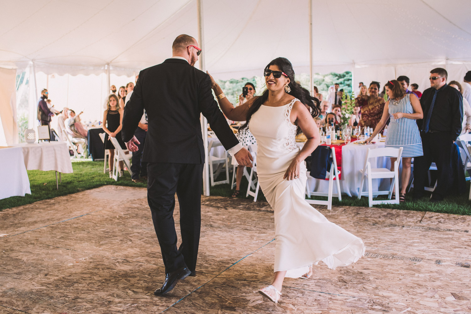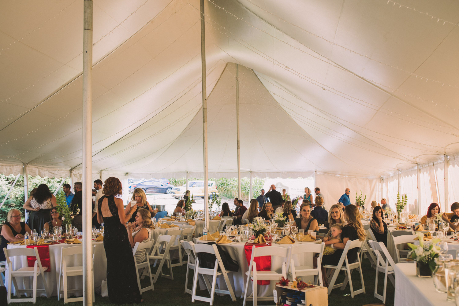 Their reception took place in an amazing backyard tent, complete with beautiful lights and a gigantic bonfire as the sun set and the evening festivities progressed.