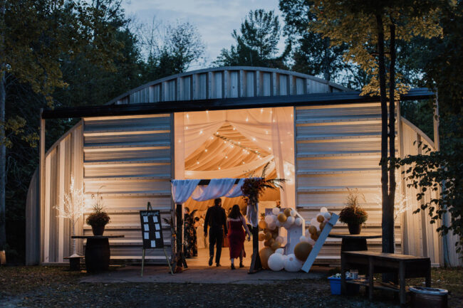 After the ceremony, we took care of family photos and the bridal party photoshoot, then proceeded to the quonset hut which had been beautifully decorated into an amazing reception space.