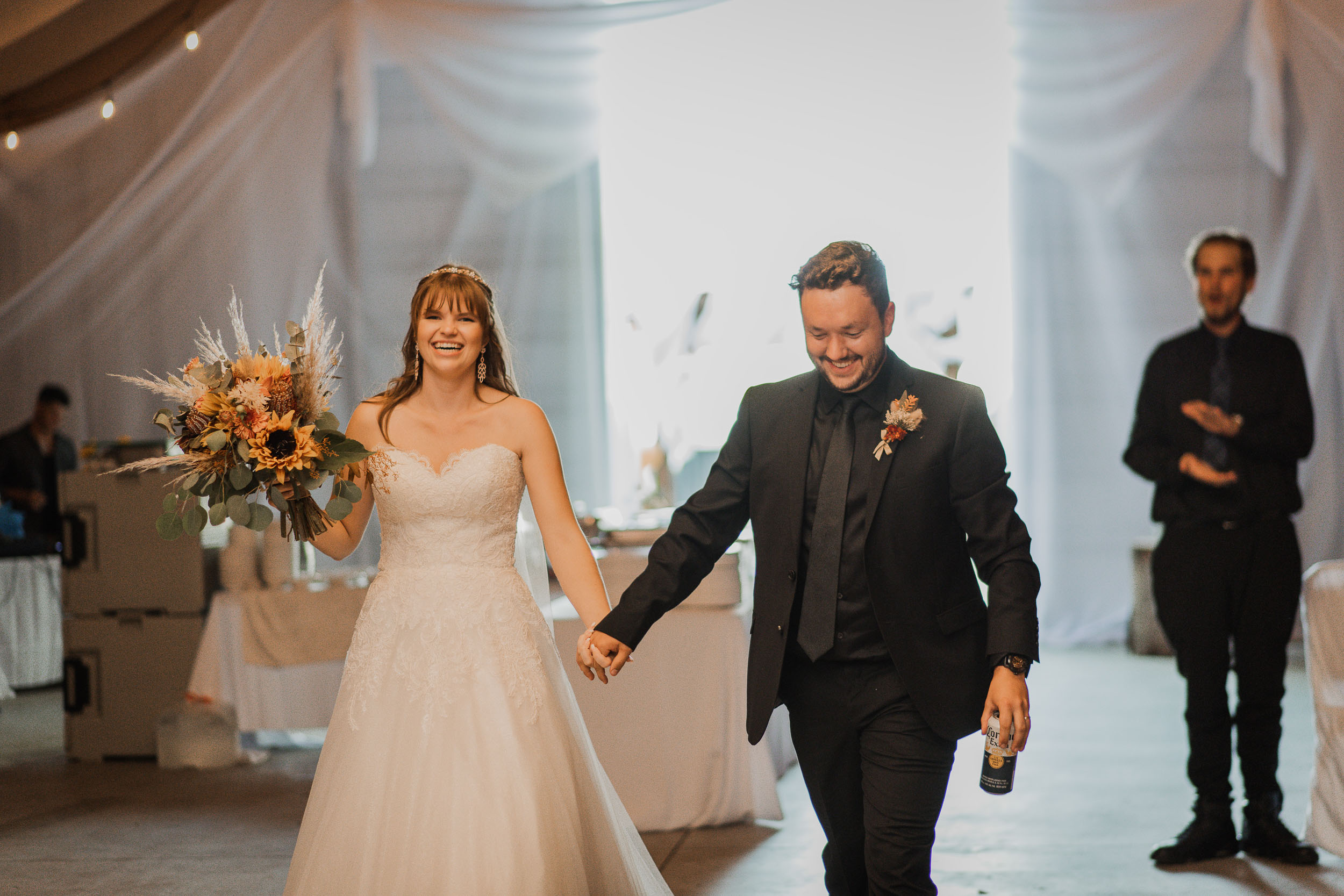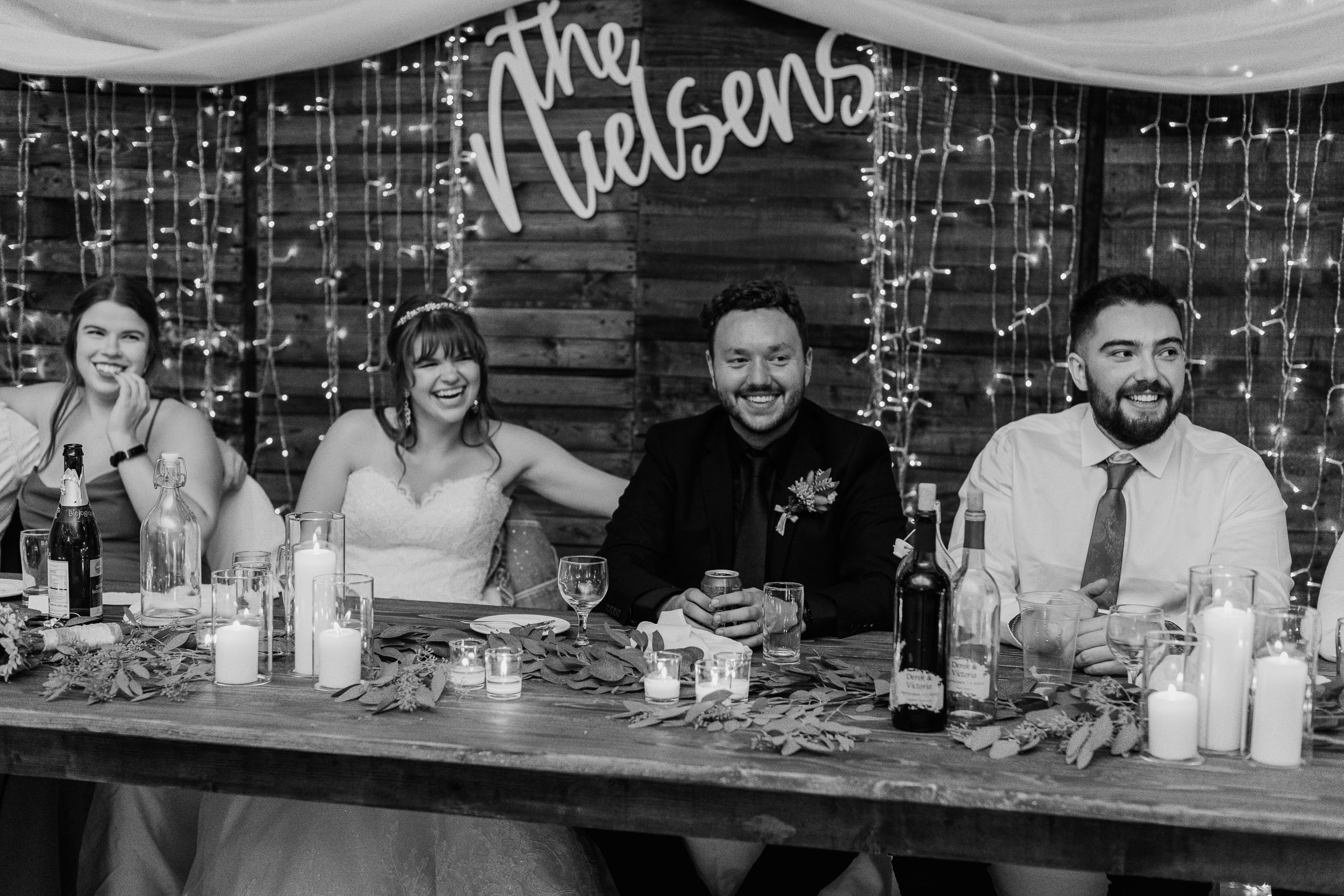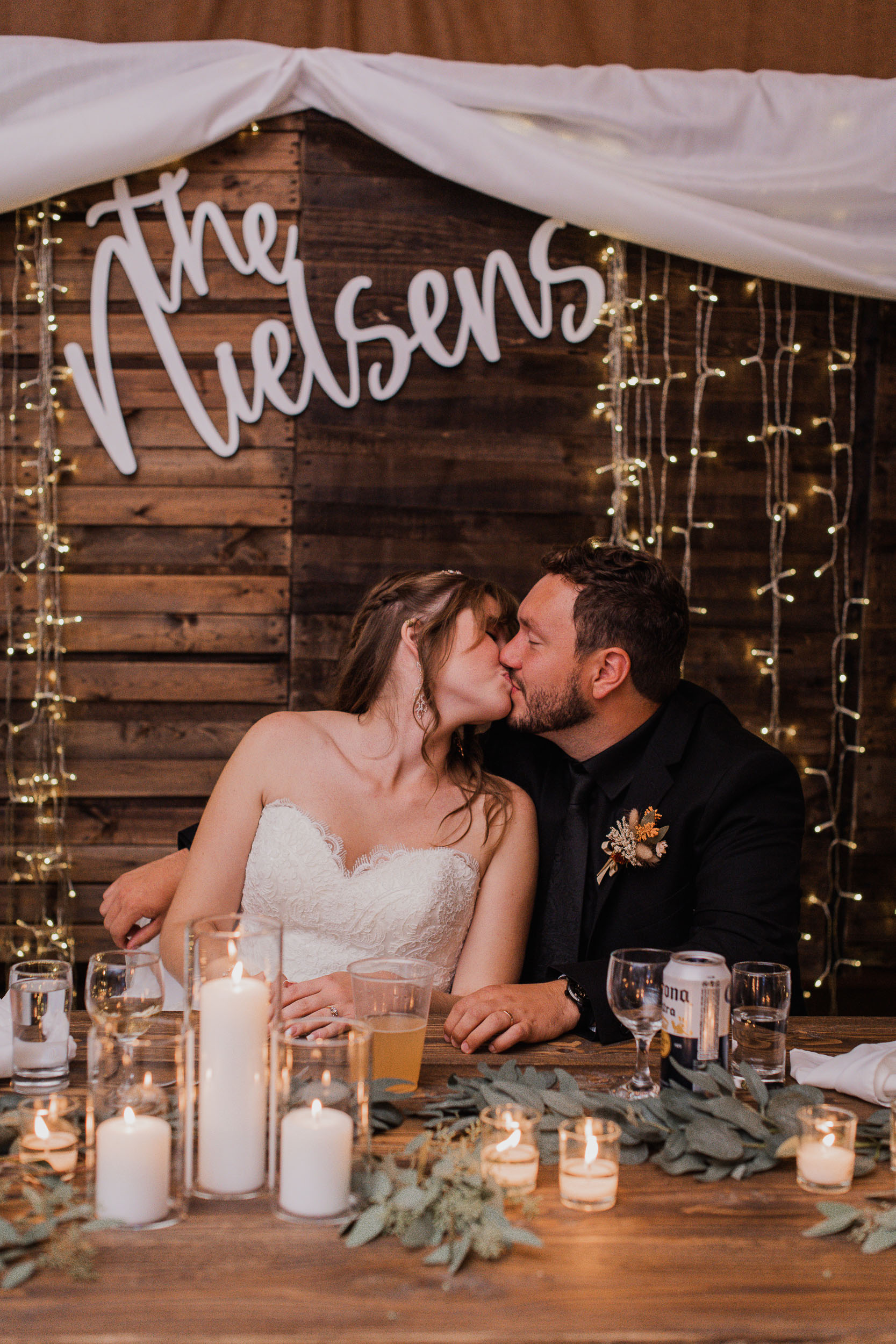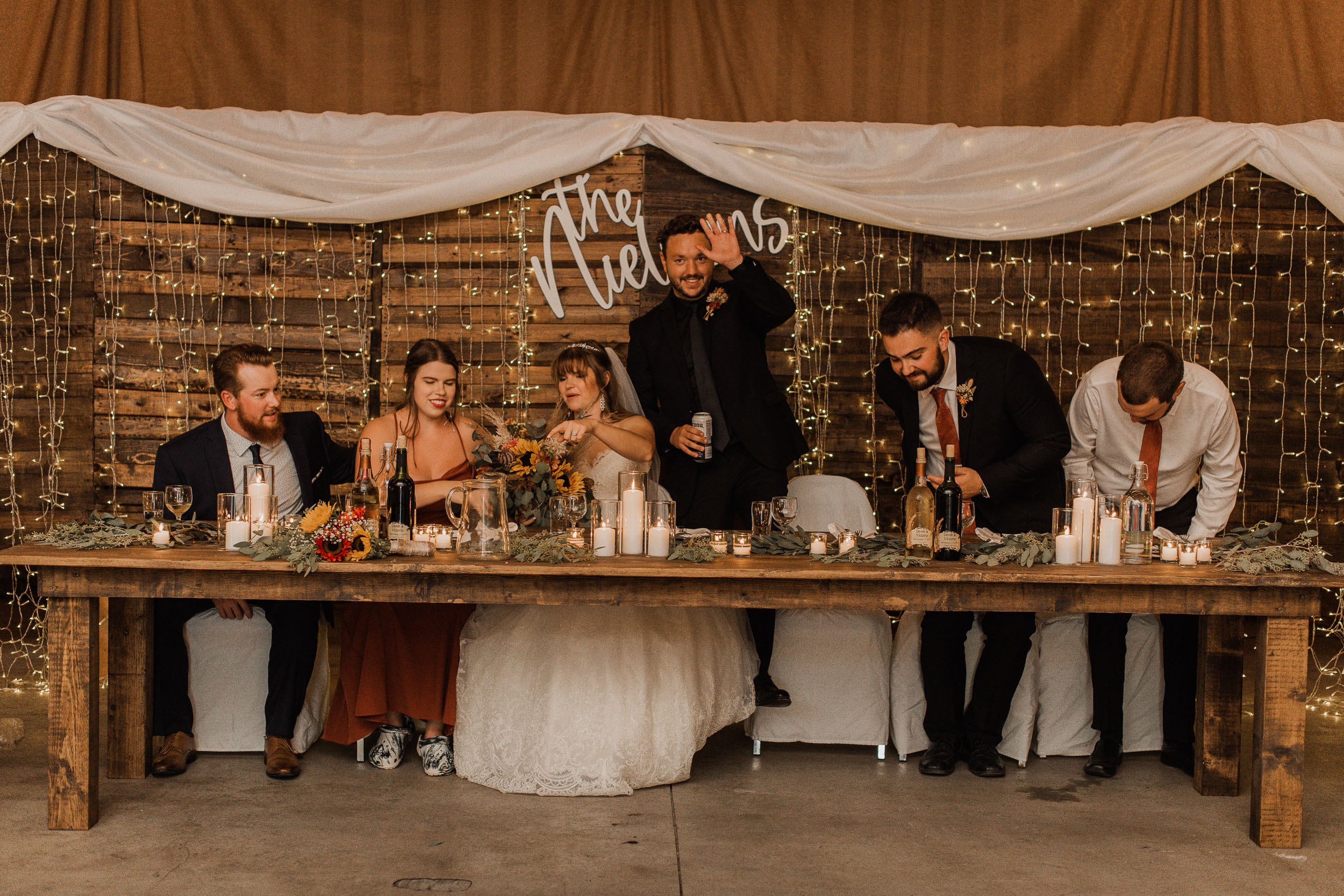 After the ceremony, we took care of family photos and the bridal party photoshoot, then proceeded to the quonset hut which had been beautifully decorated into an amazing reception space.
