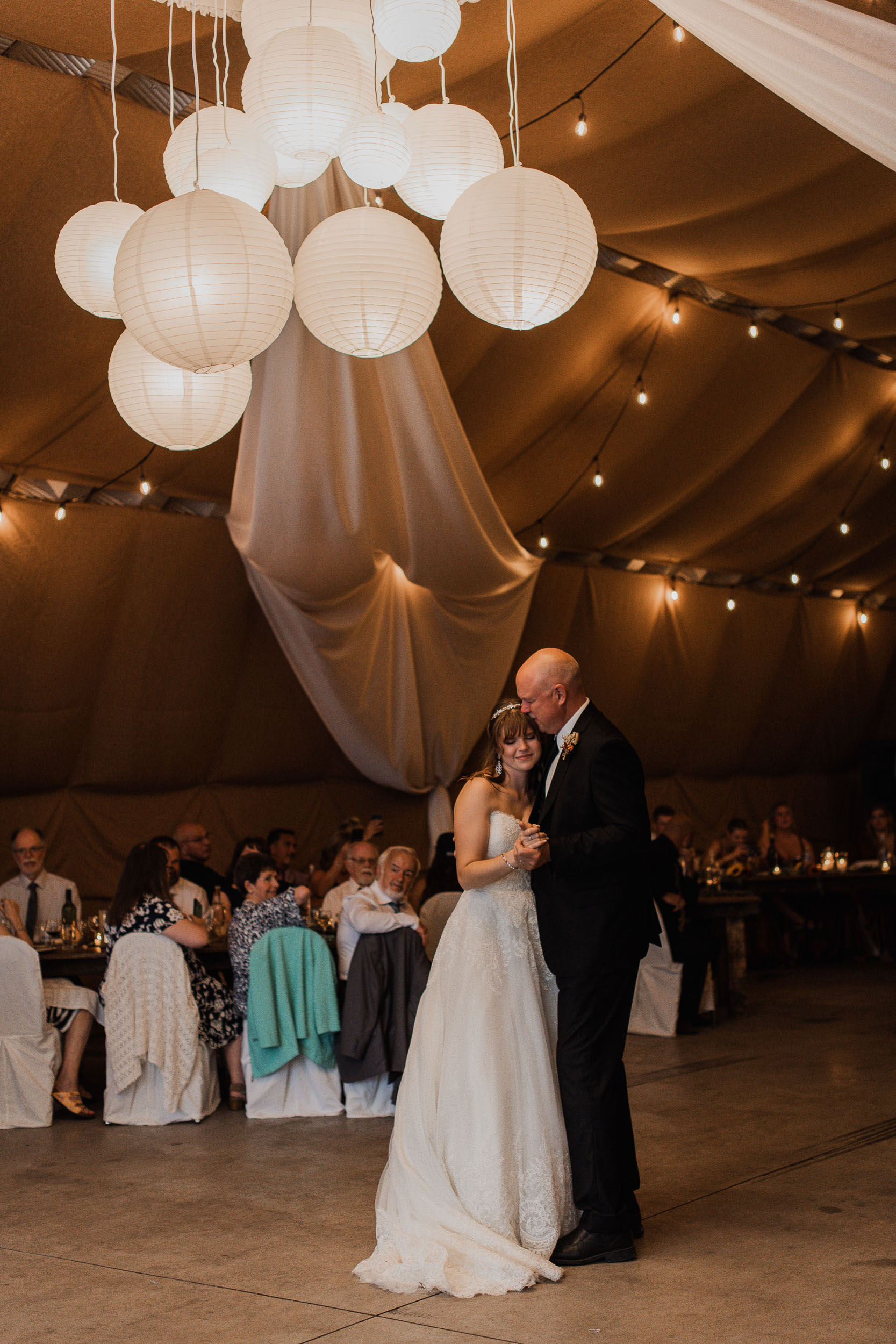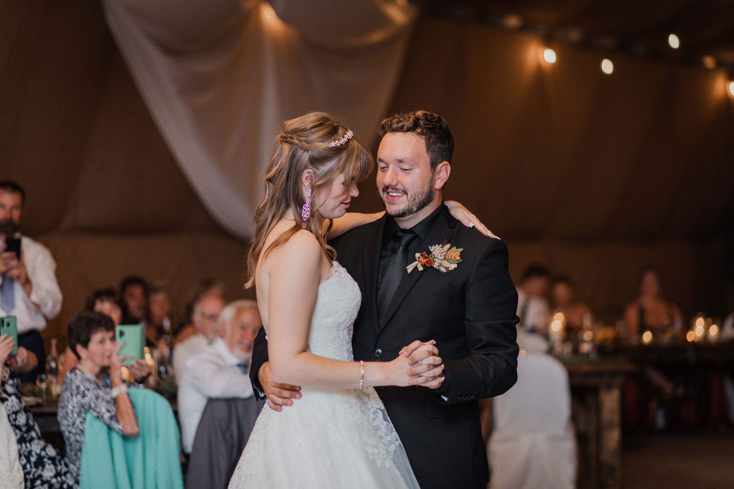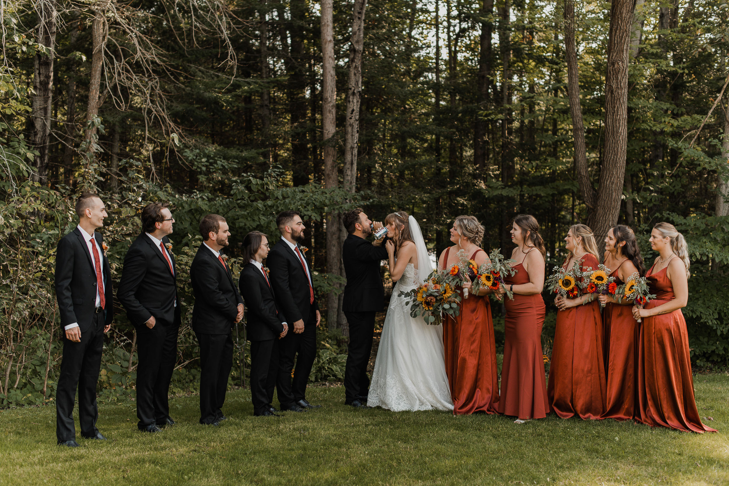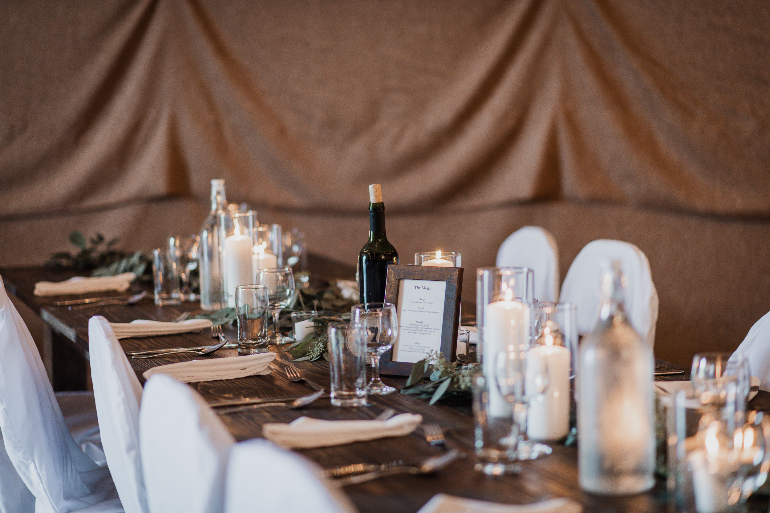 After the ceremony, we took care of family photos and the bridal party photoshoot, then proceeded to the quonset hut which had been beautifully decorated into an amazing reception space.