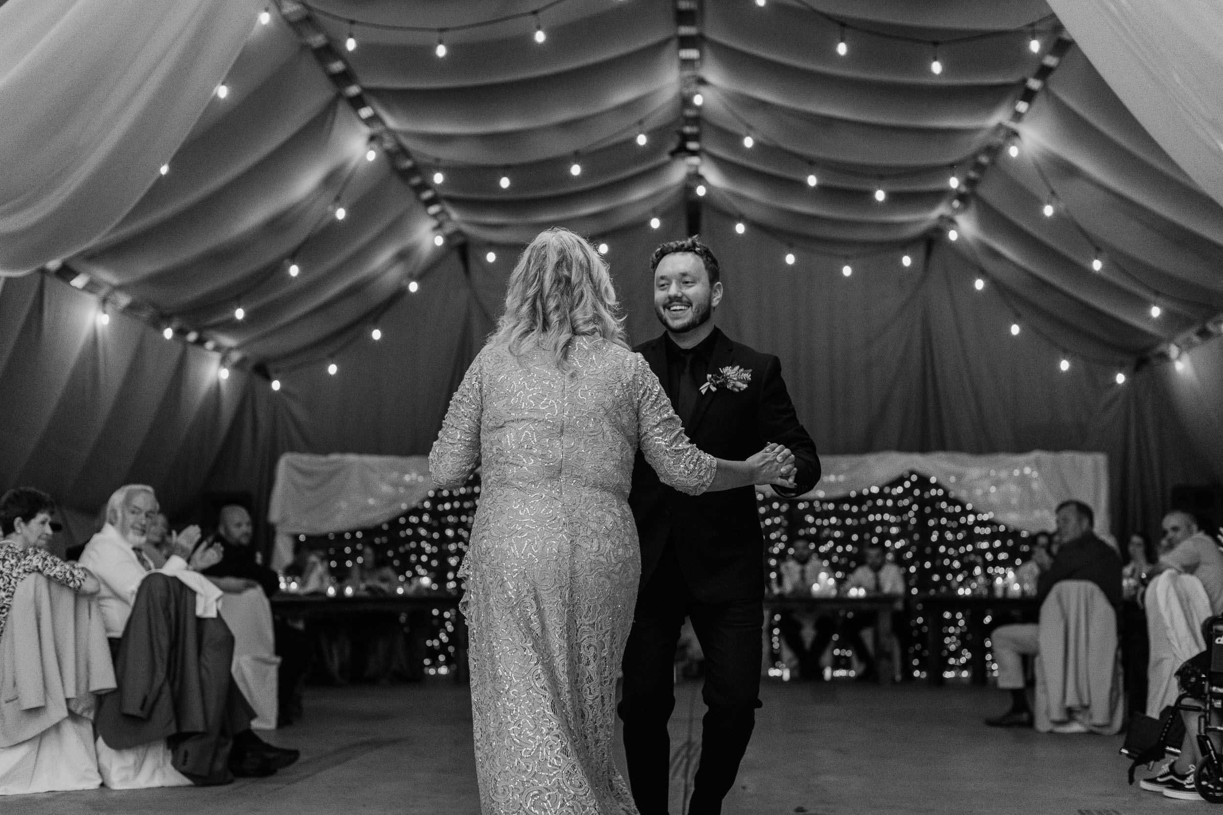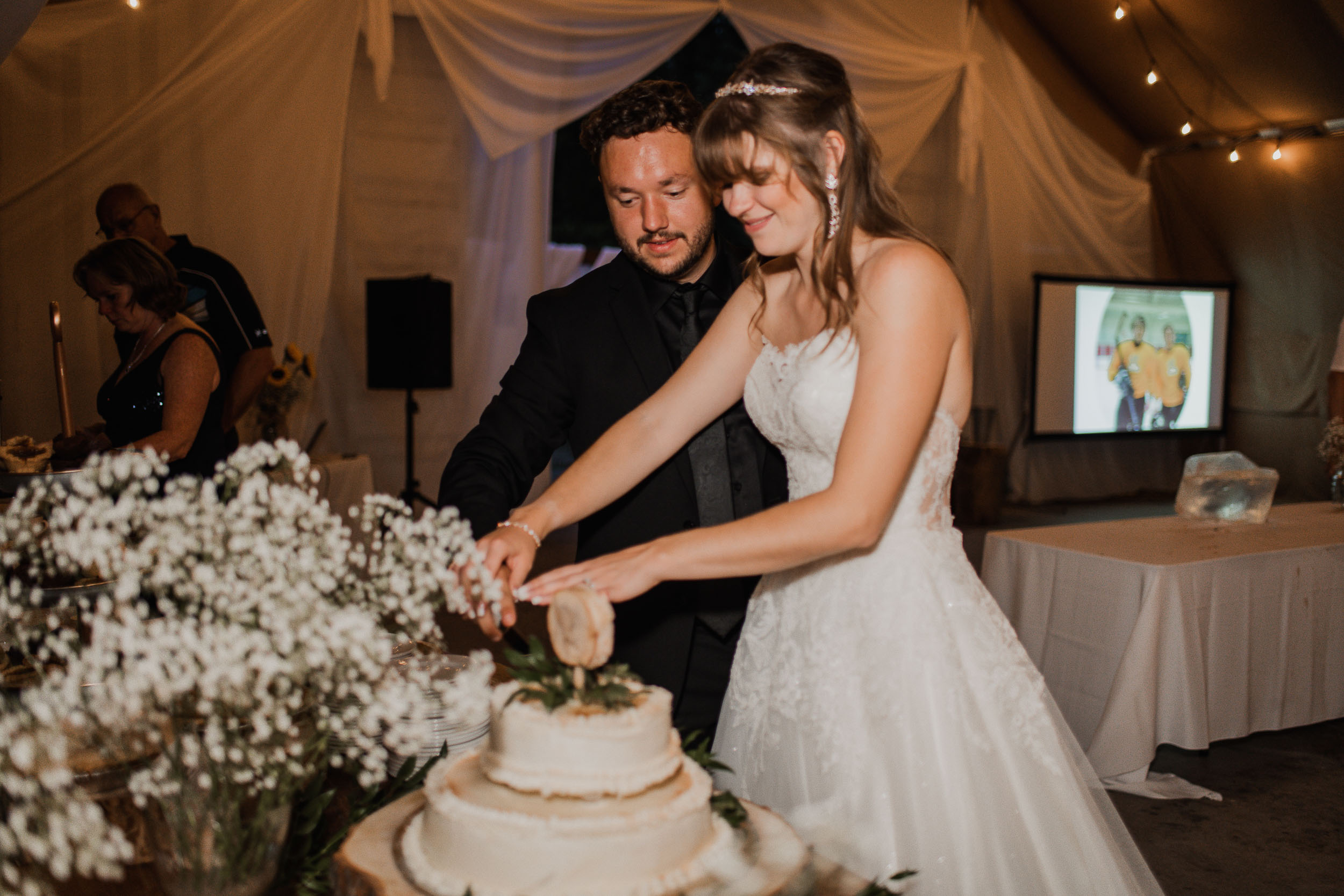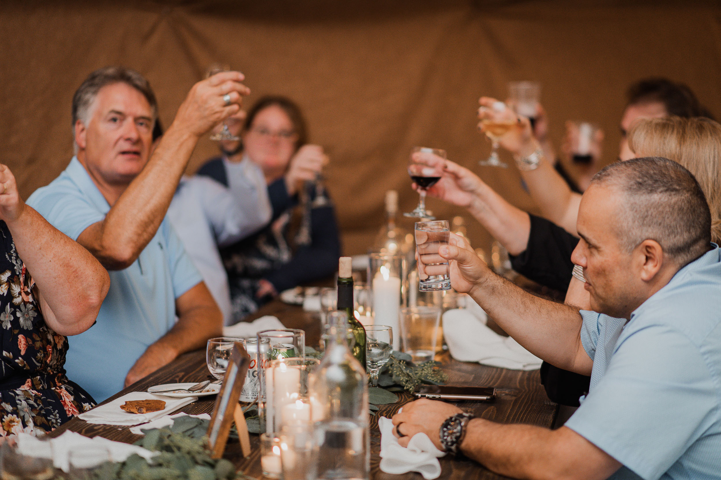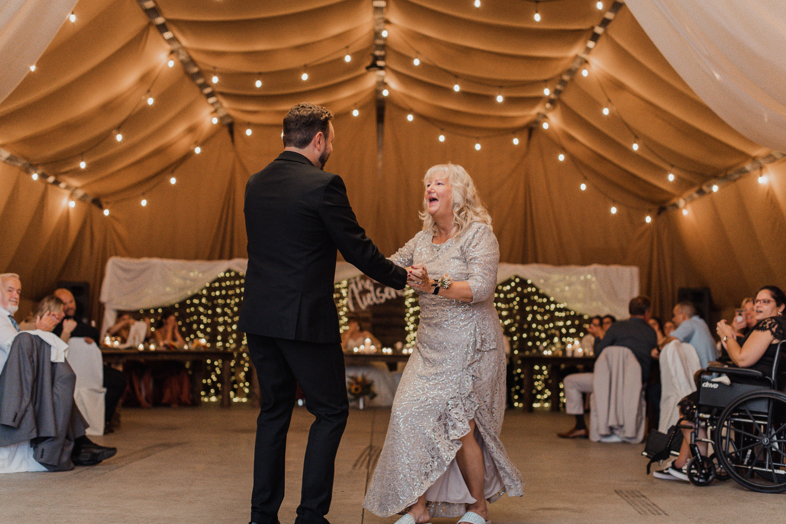 After the ceremony, we took care of family photos and the bridal party photoshoot, then proceeded to the quonset hut which had been beautifully decorated into an amazing reception space.
