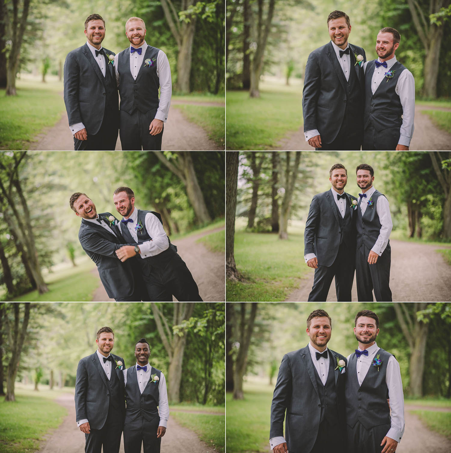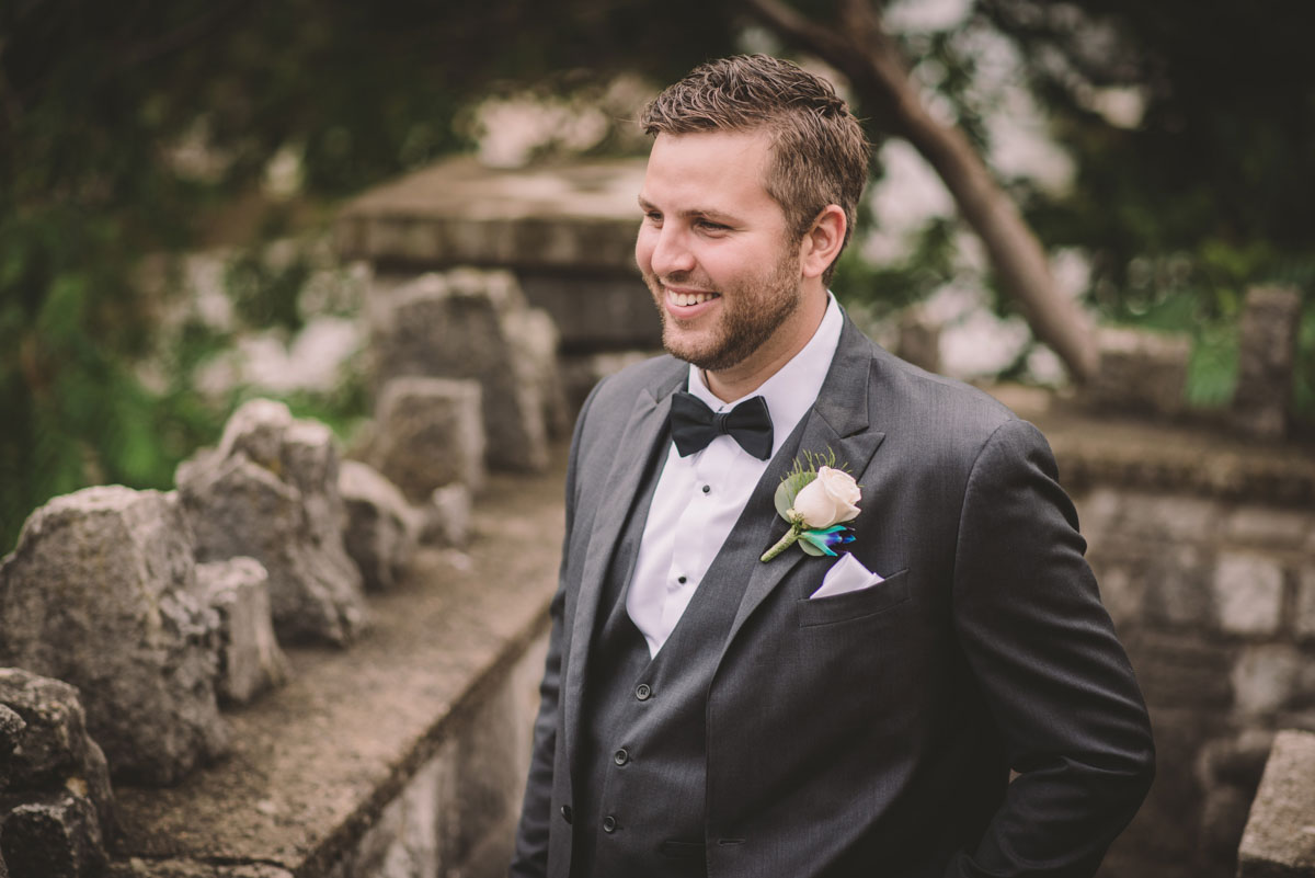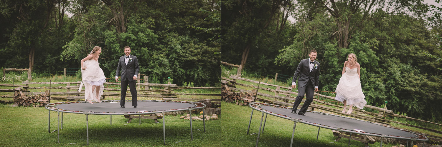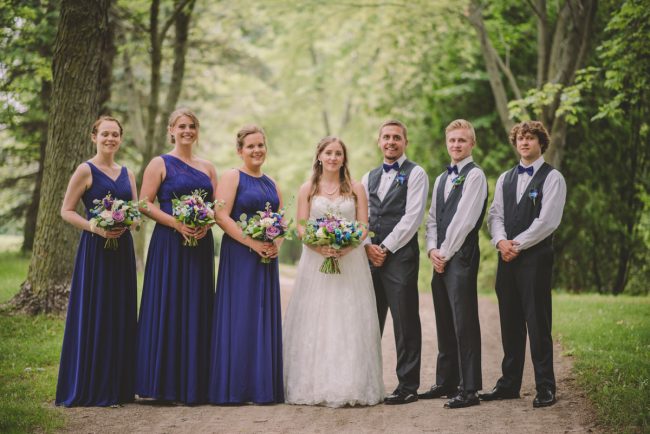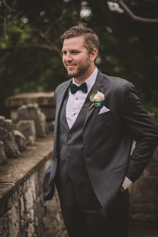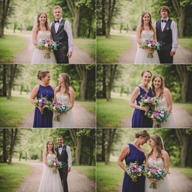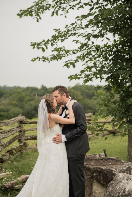 This past July, Ray and Billy’s big day finally arrived! We met at Templin Gardens in Fergus, where I positioned Billy by the water to wait for Rachel’s arrival.  The first look was followed by their formal photos at the Gardens, and at nearby property of one of their bridal party members.  This beautiful farm had horses — so in her yellow rain boots, Ray and Billy had a photoshoot with them, too!