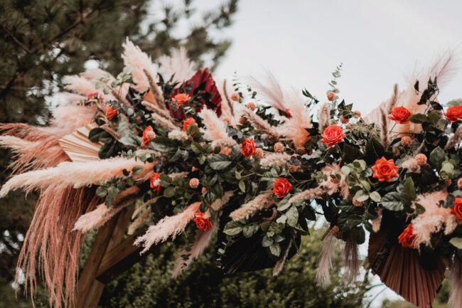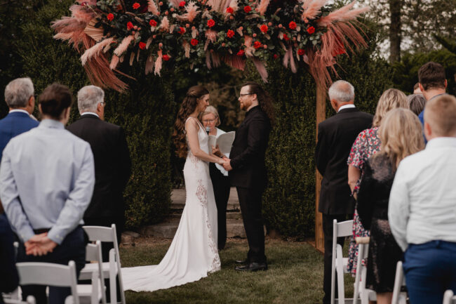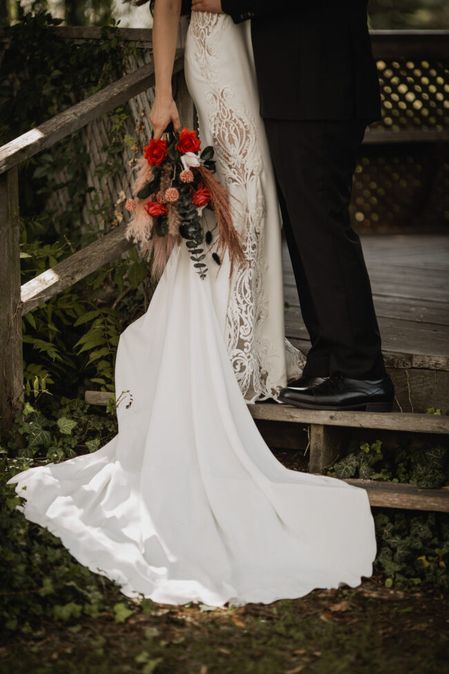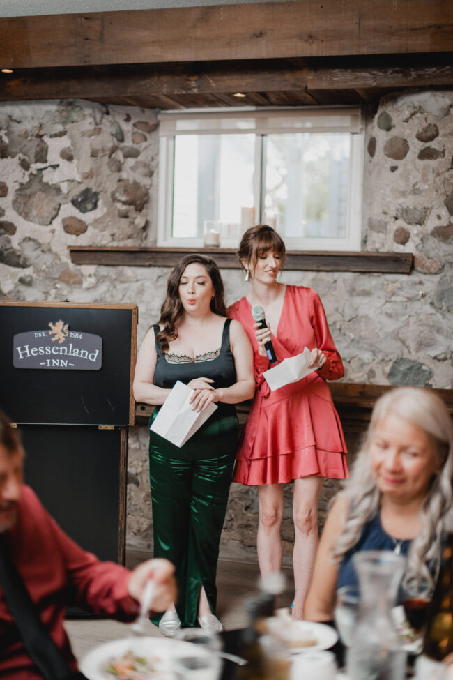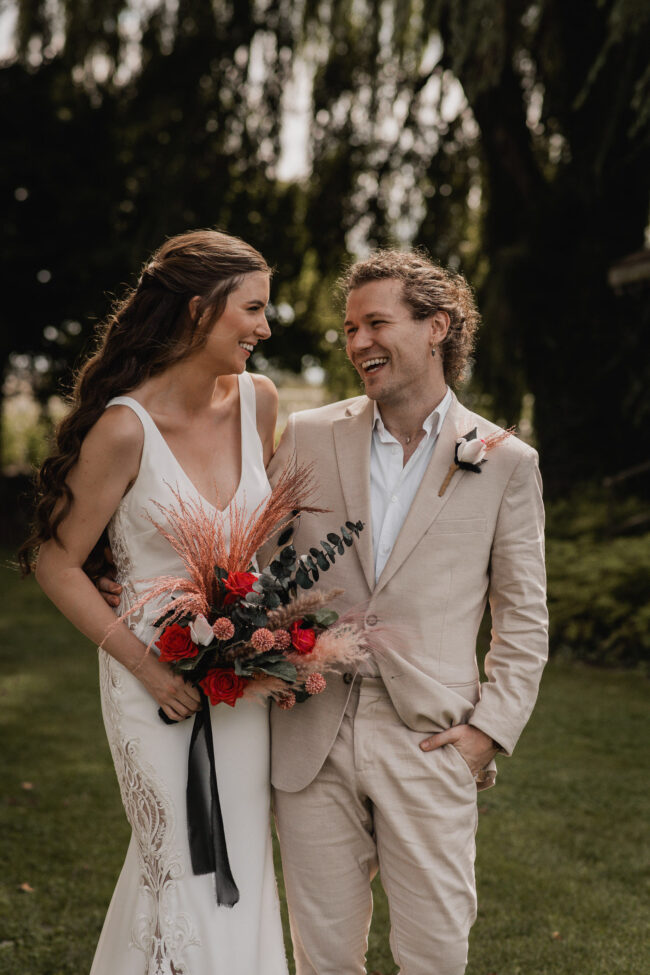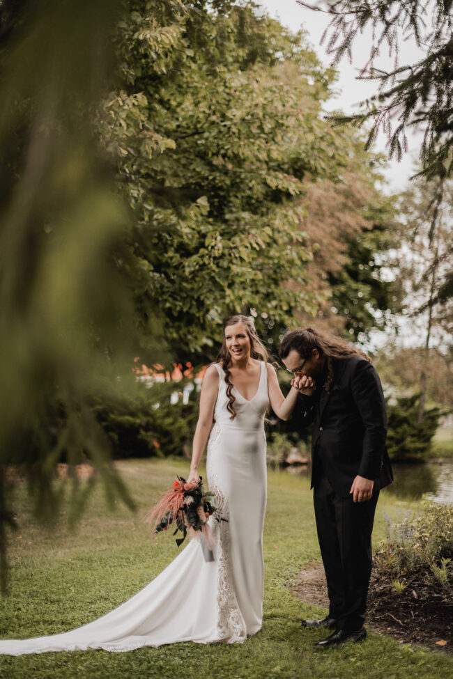 Their celebration at Hessenland Winery in Grand Bend was a vibrant, joyful gathering filled with personality. From the saturated reds, maroons, and jewel tones to Natalie’s matte black nails (a perfect touch!), every visual element was rich, moody, and beautiful. Their styling was bold and unique which I felt was a true reflection of their personalities and relationship.