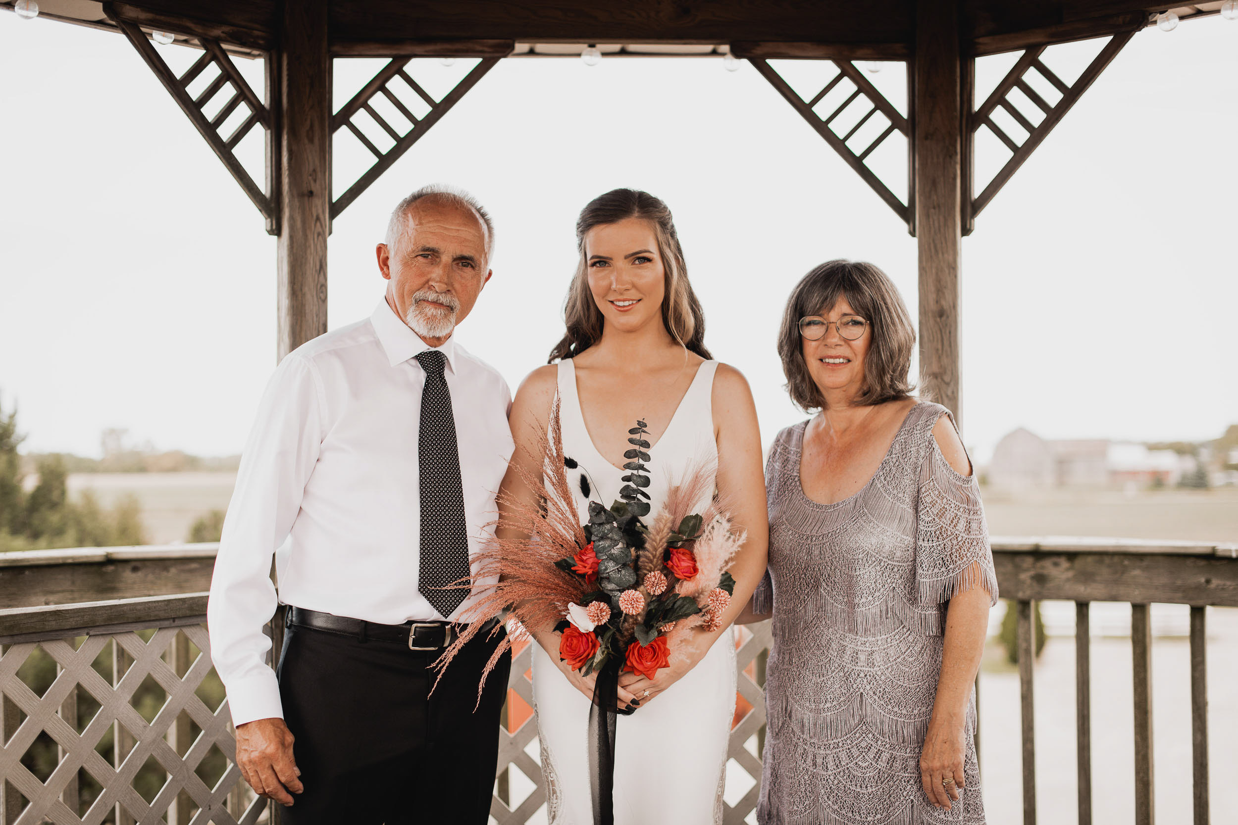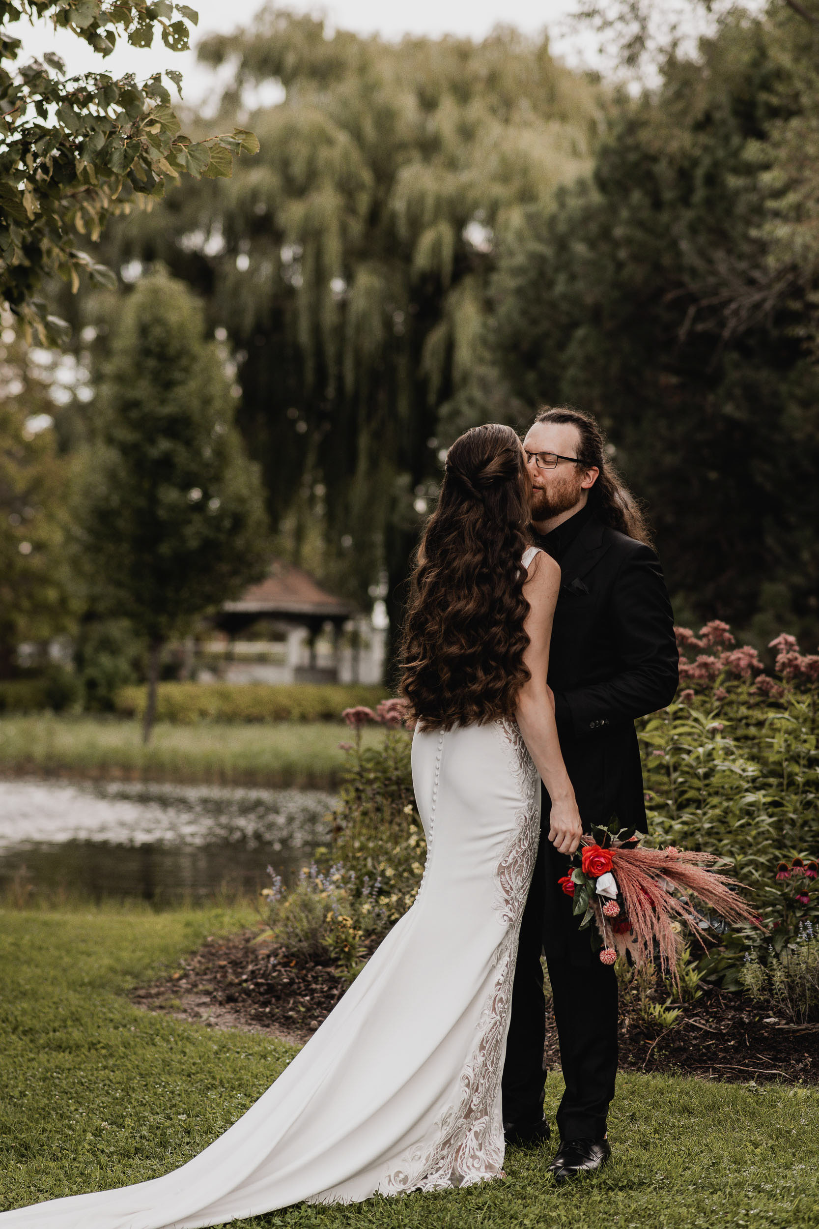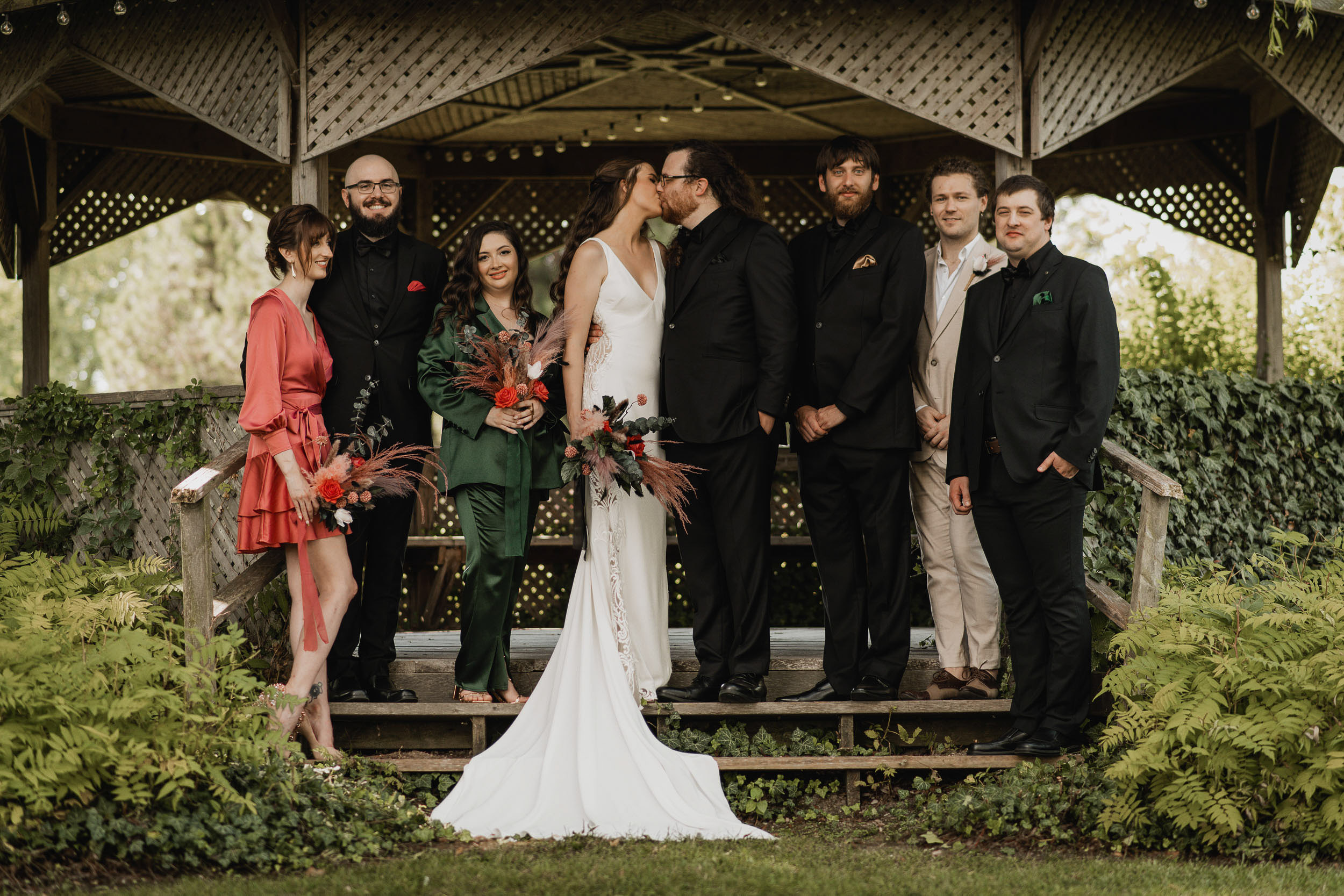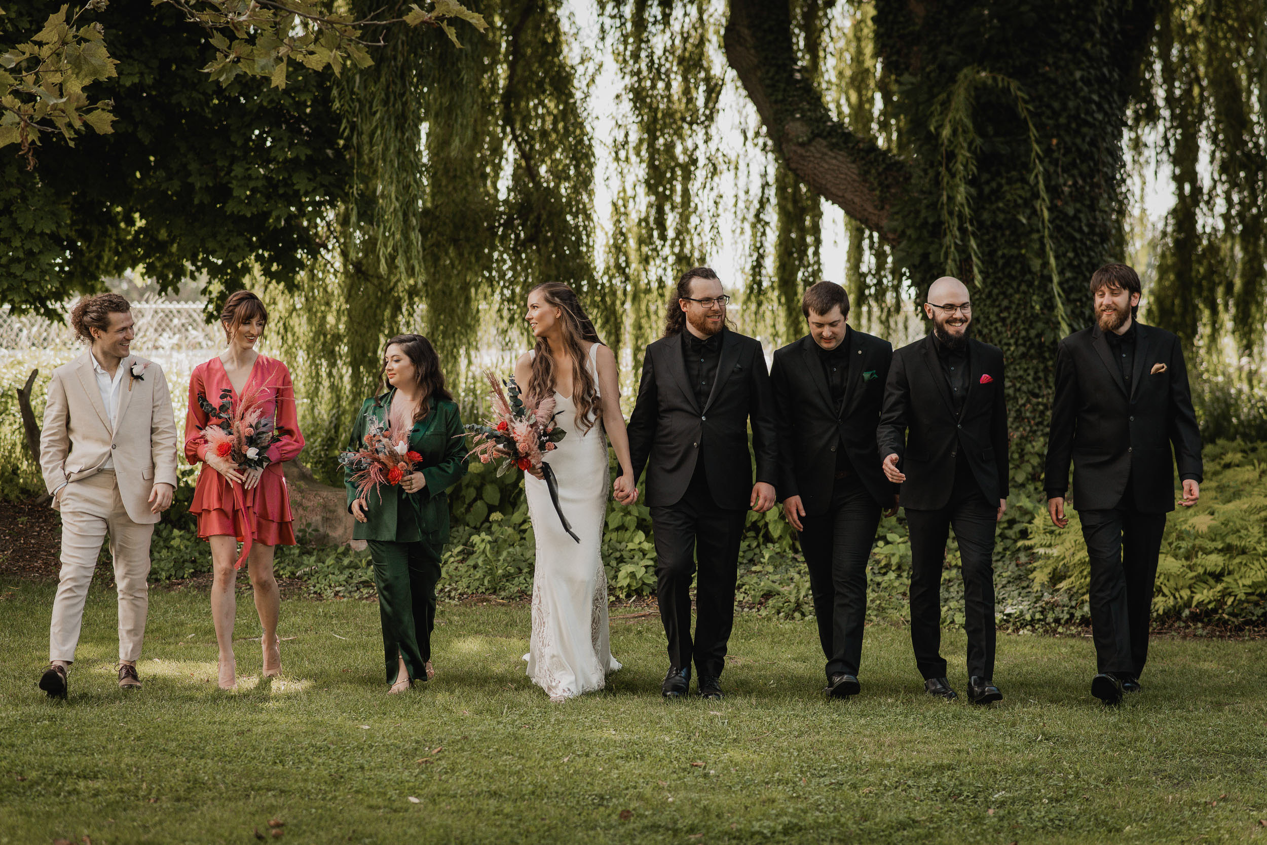 Their celebration at Hessenland Winery in Grand Bend was a vibrant, joyful gathering filled with personality. From the saturated reds, maroons, and jewel tones to Natalie’s matte black nails (a perfect touch!), every visual element was rich, moody, and beautiful. Their styling was bold and unique which I felt was a true reflection of their personalities and relationship.