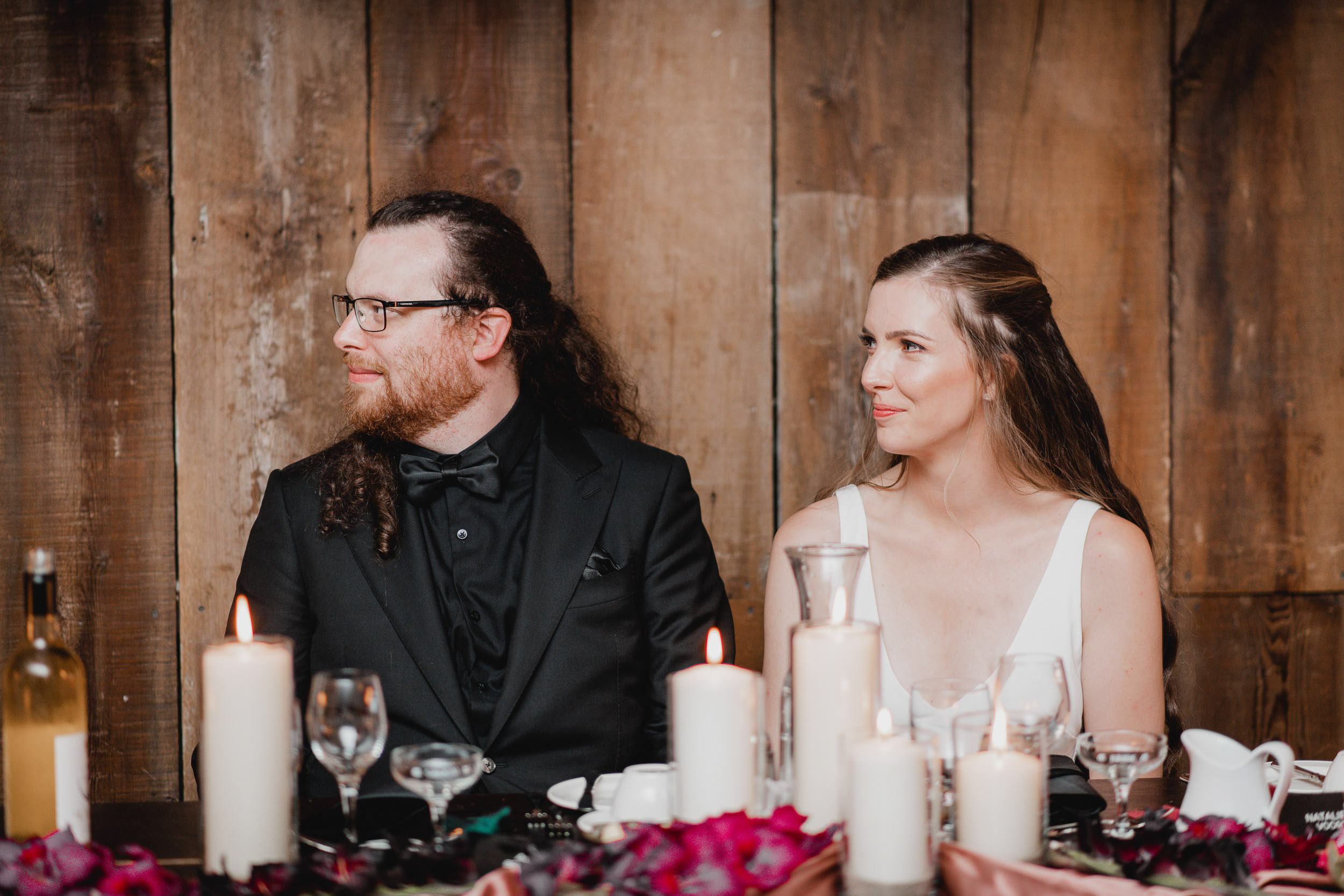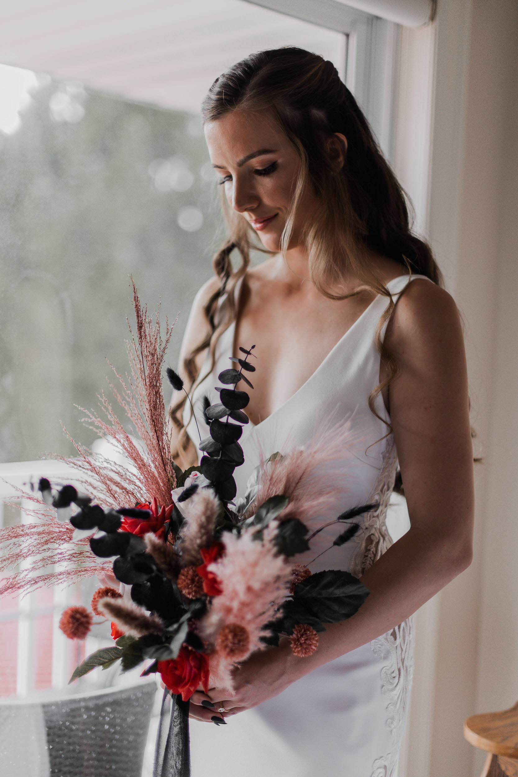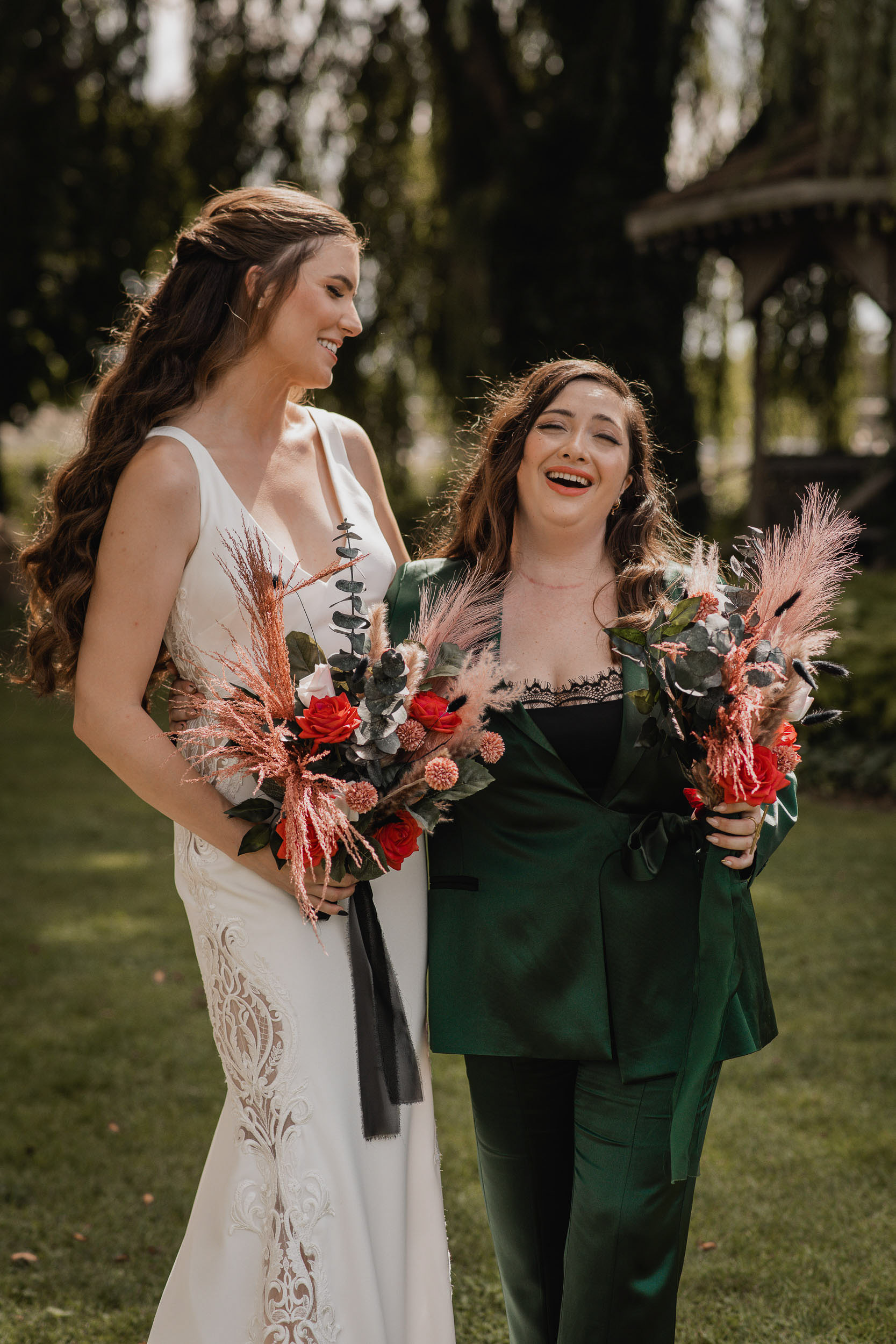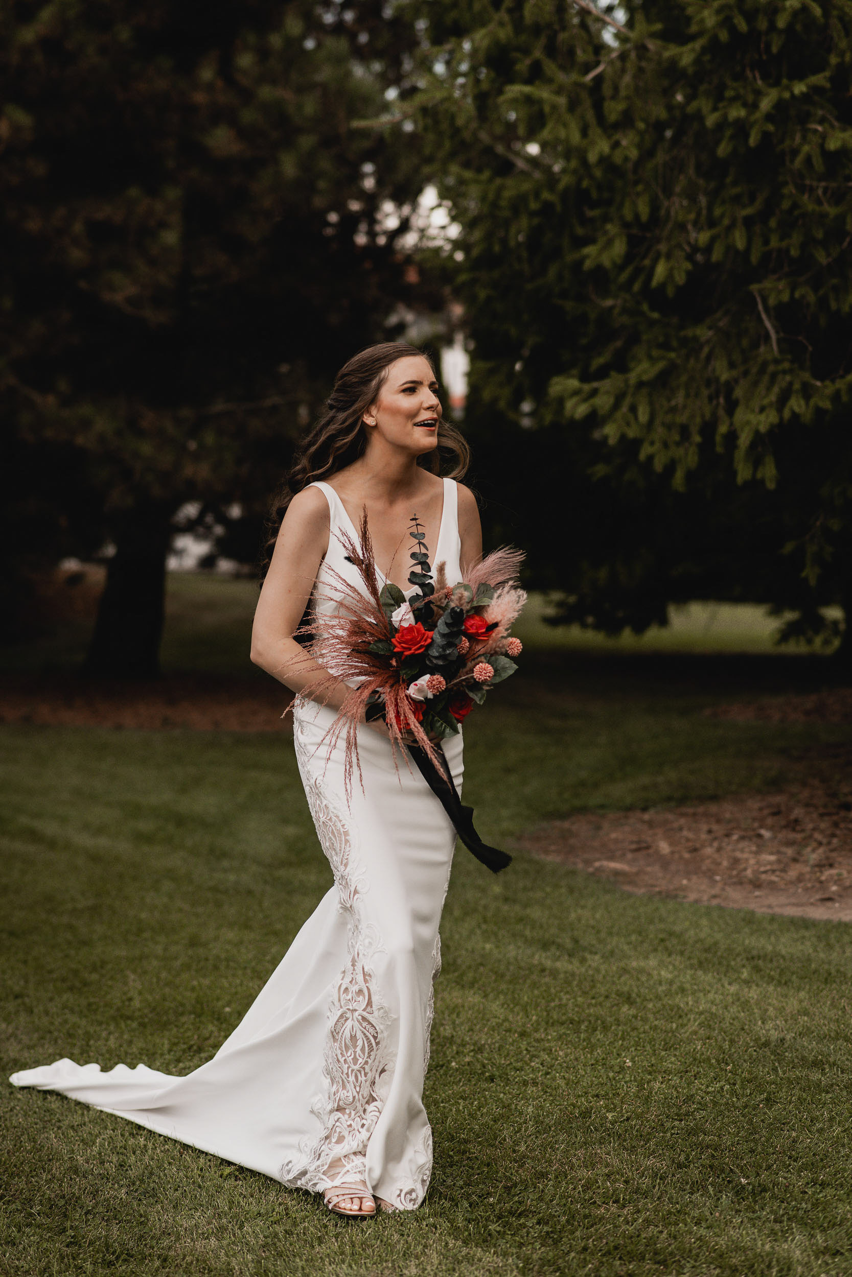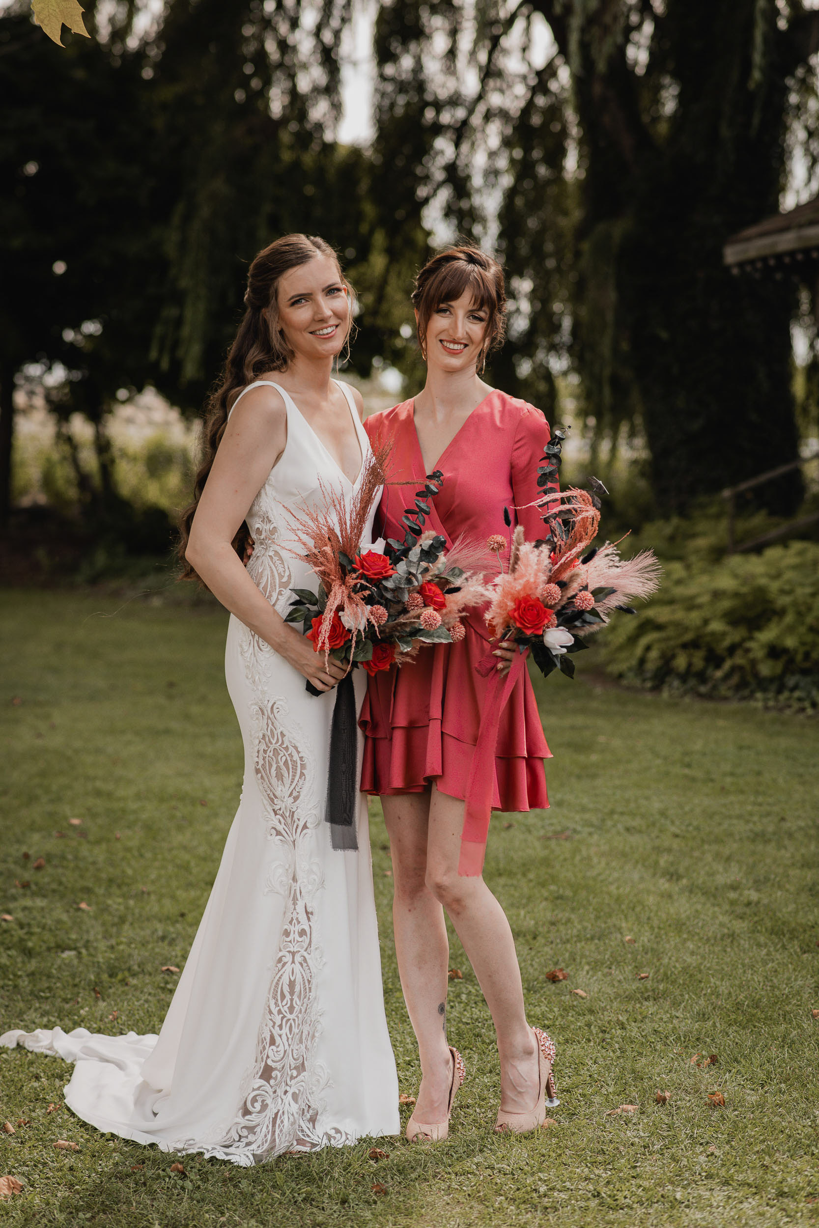 Their celebration at Hessenland Winery in Grand Bend was a vibrant, joyful gathering filled with personality. From the saturated reds, maroons, and jewel tones to Natalie’s matte black nails (a perfect touch!), every visual element was rich, moody, and beautiful. Their styling was bold and unique which I felt was a true reflection of their personalities and relationship.