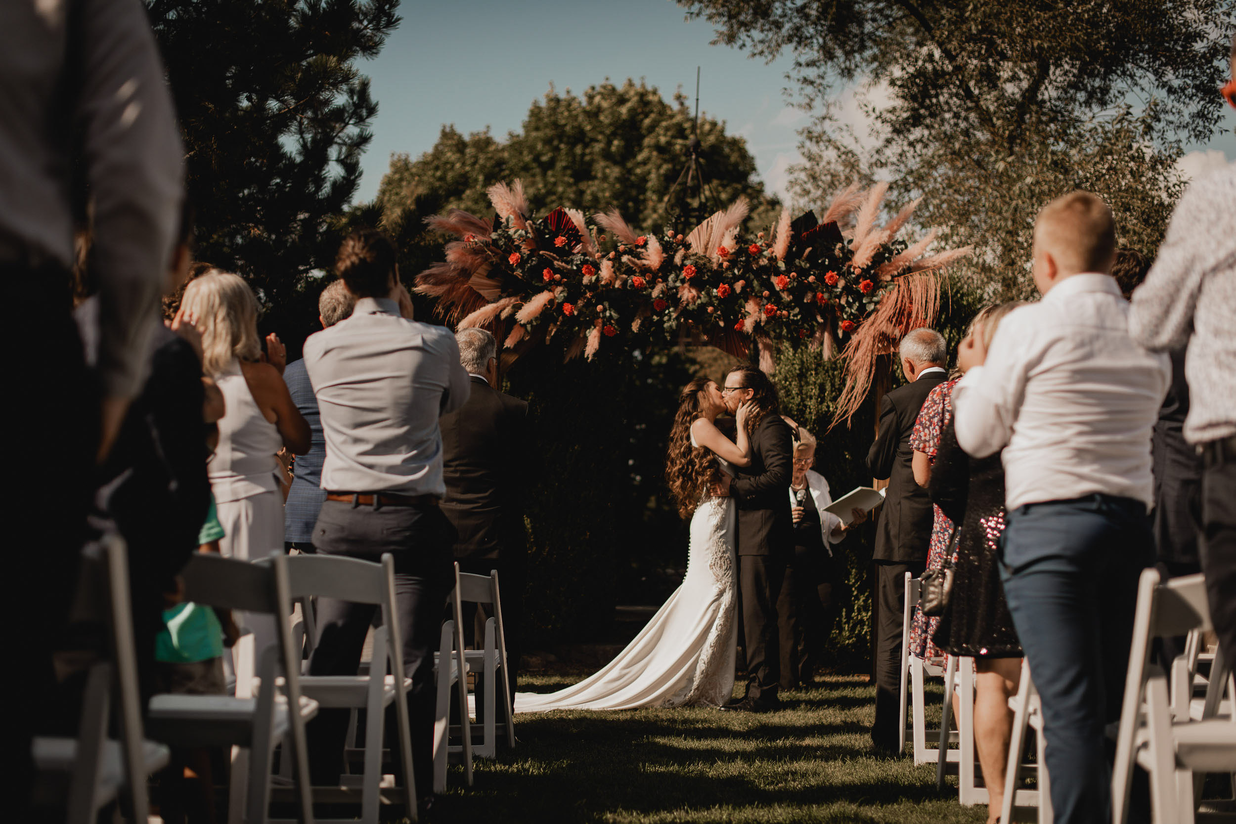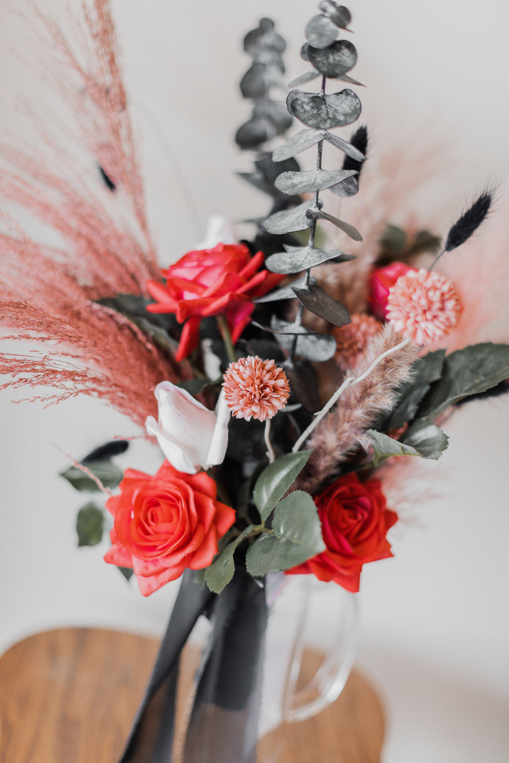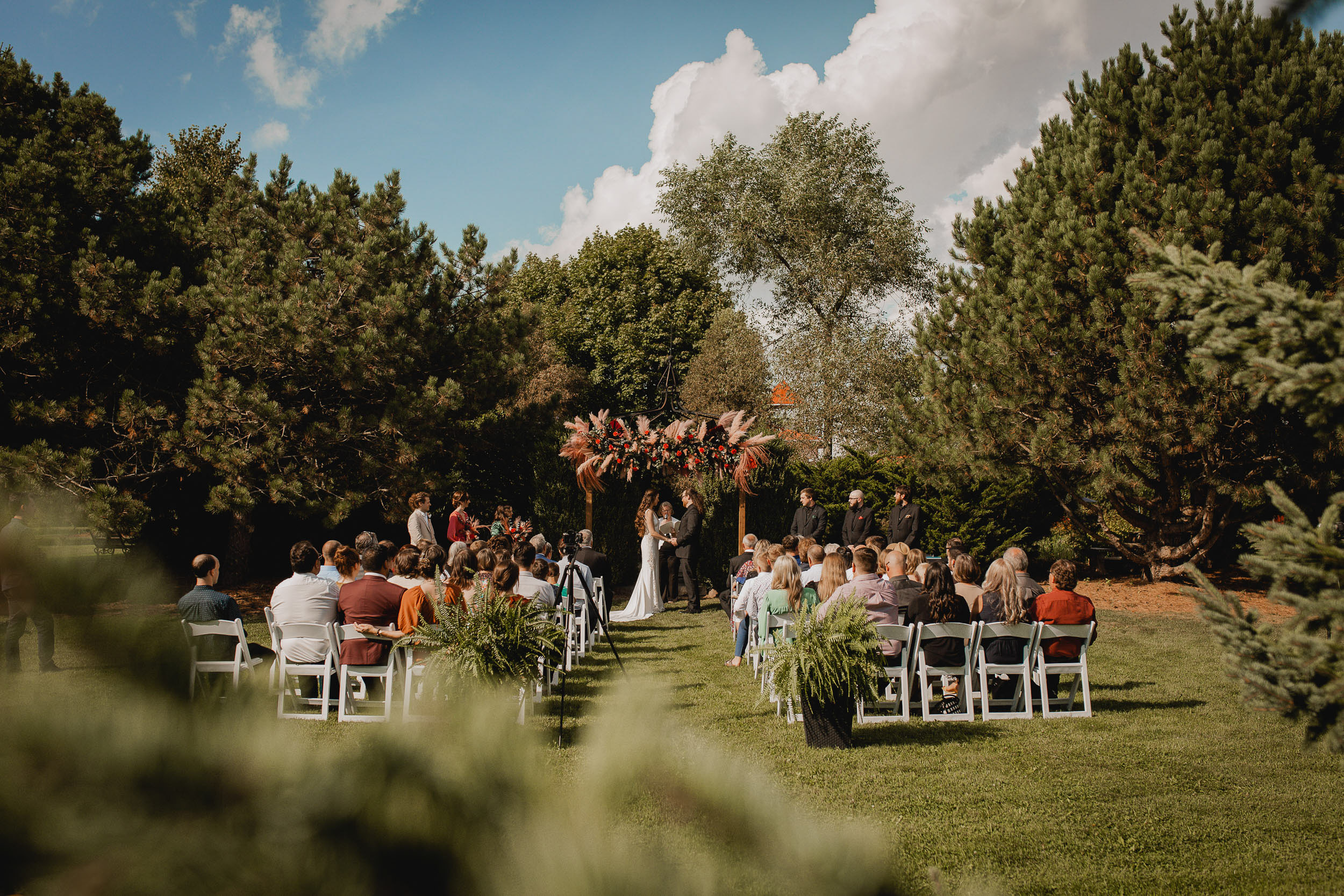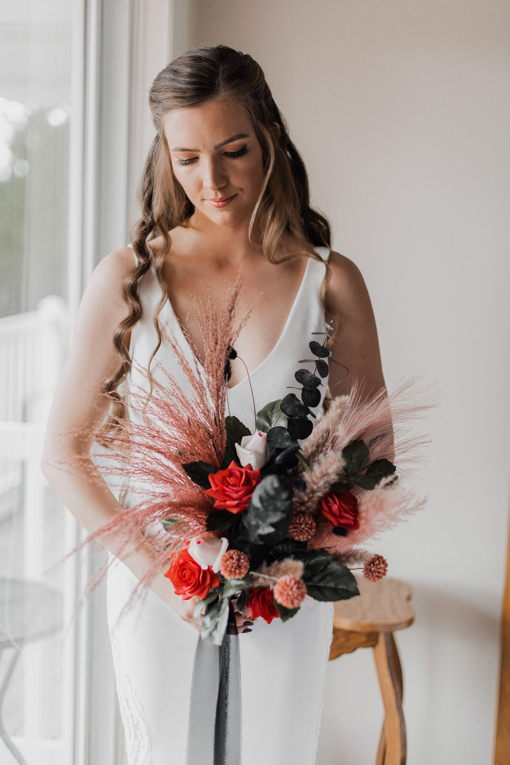 Their celebration at Hessenland Winery in Grand Bend was a vibrant, joyful gathering filled with personality. From the saturated reds, maroons, and jewel tones to Natalie’s matte black nails (a perfect touch!), every visual element was rich, moody, and beautiful. Their styling was bold and unique which I felt was a true reflection of their personalities and relationship.