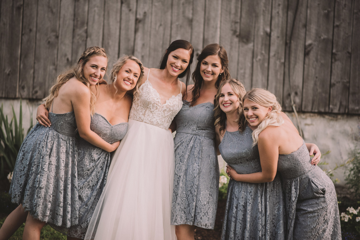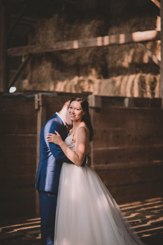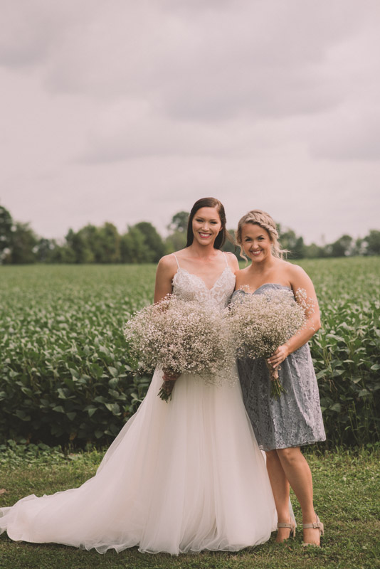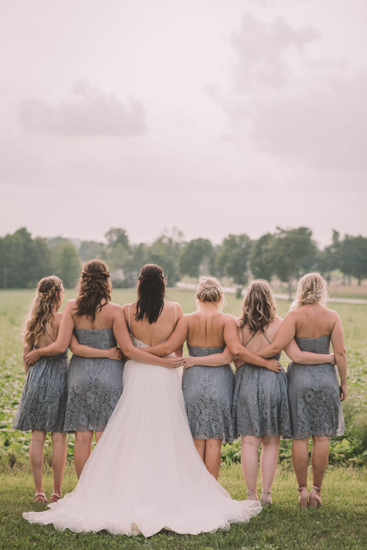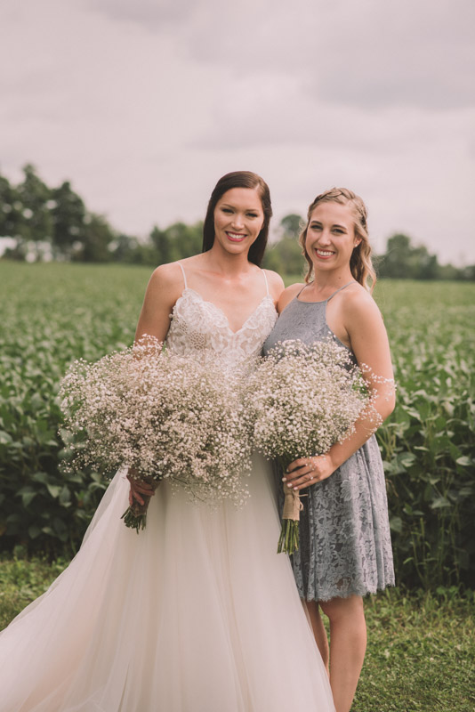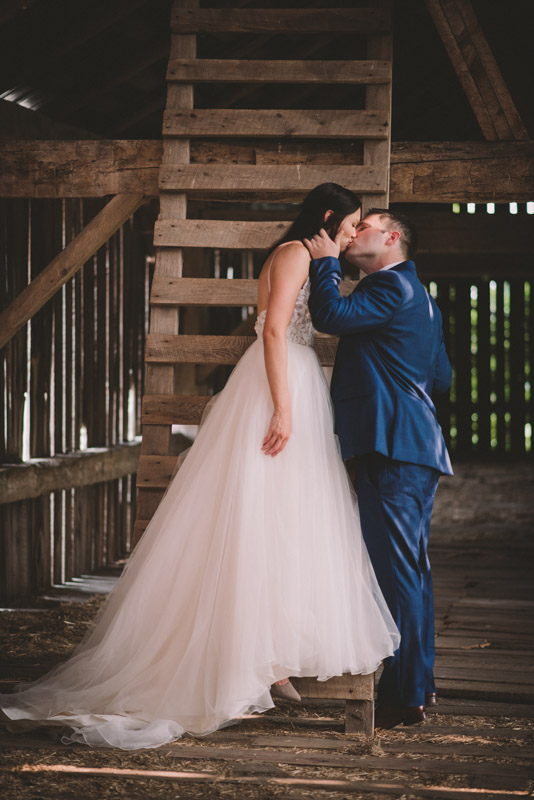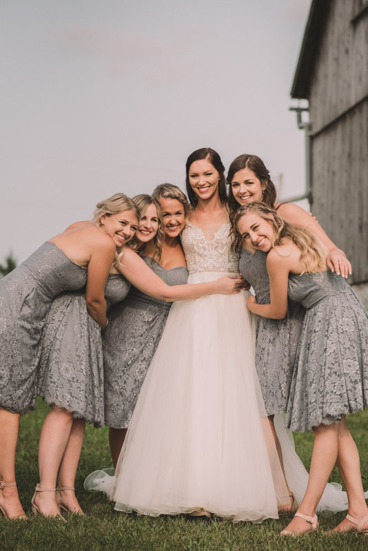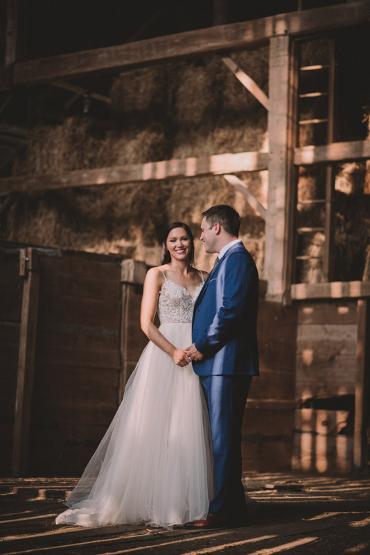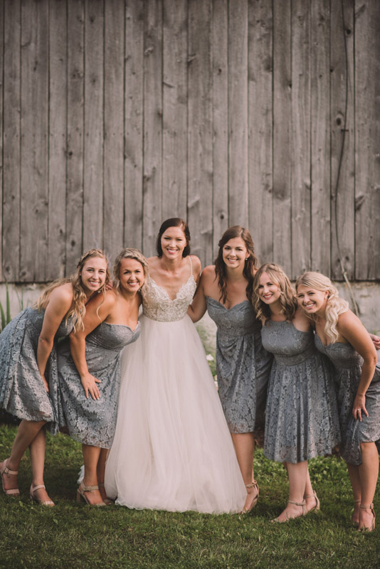 After photographing some details and prep, it was time for Brooke and Adam’s lovely ceremony, right on the porch of Brooke’s family’s farmhouse home. The ceremony was followed by a toast, family photos, and bridal party photos! The family had cleaned out the barn, so we were able to use the rustic interior for some gorgeous bride and groom photos.