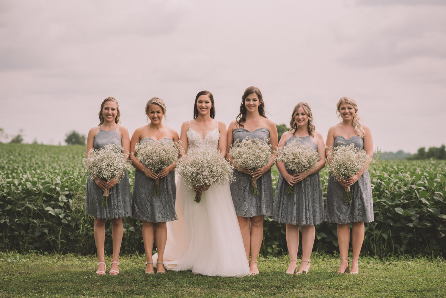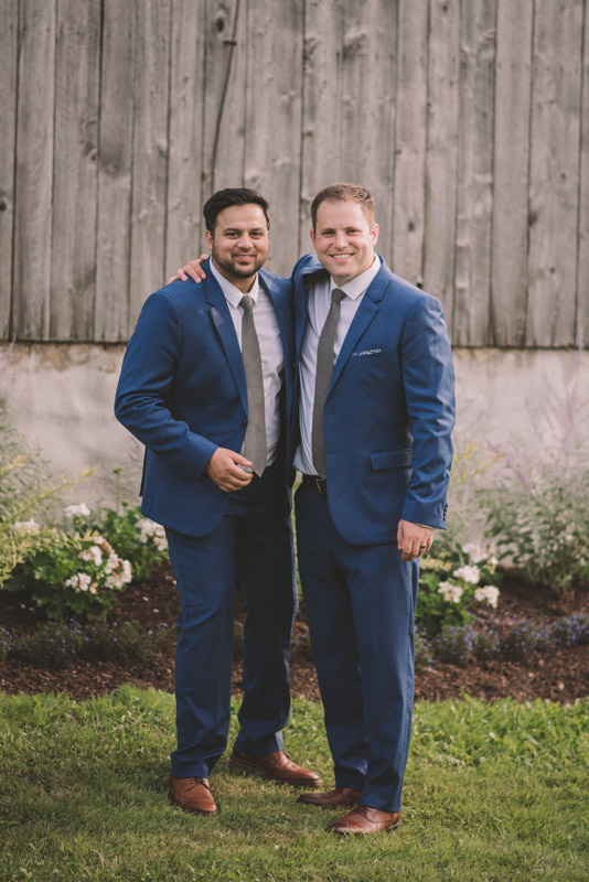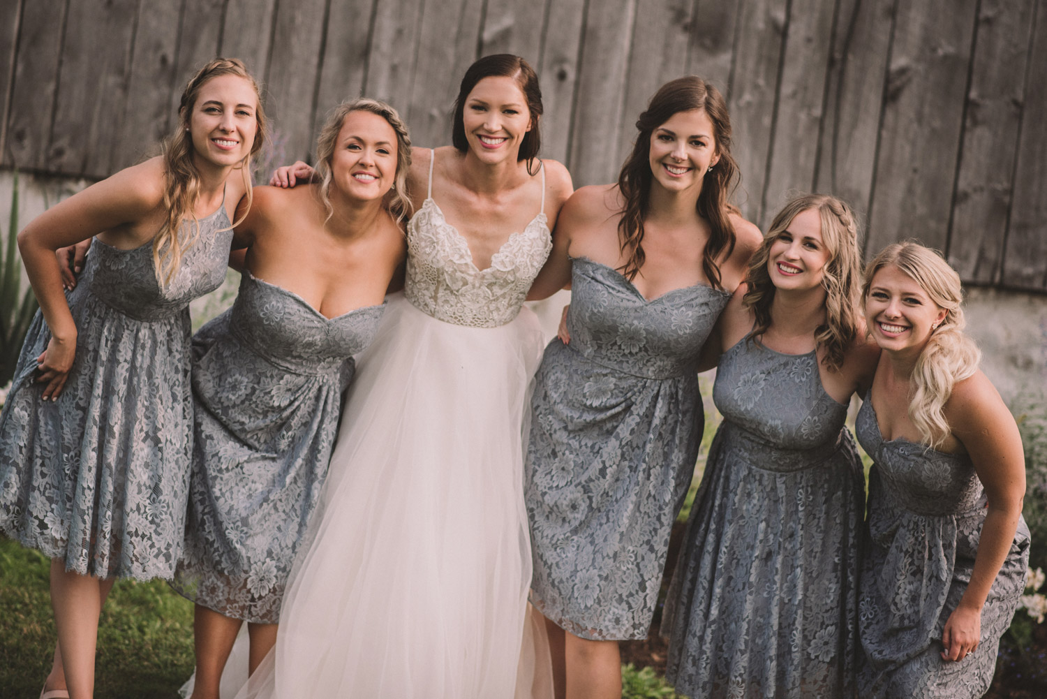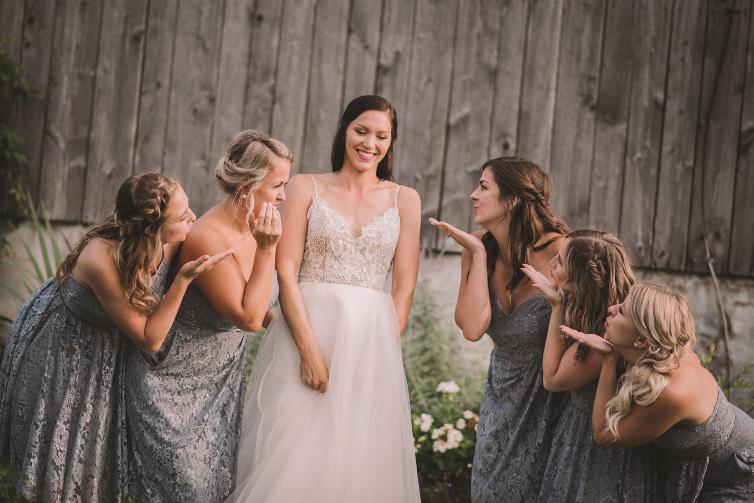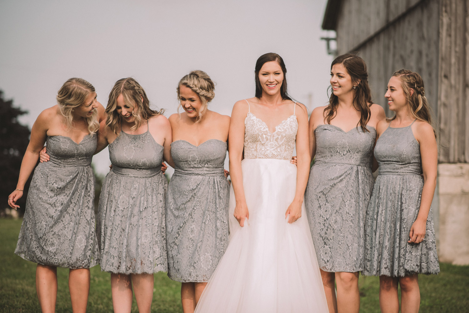 After photographing some details and prep, it was time for Brooke and Adam’s lovely ceremony, right on the porch of Brooke’s family’s farmhouse home. The ceremony was followed by a toast, family photos, and bridal party photos! The family had cleaned out the barn, so we were able to use the rustic interior for some gorgeous bride and groom photos.