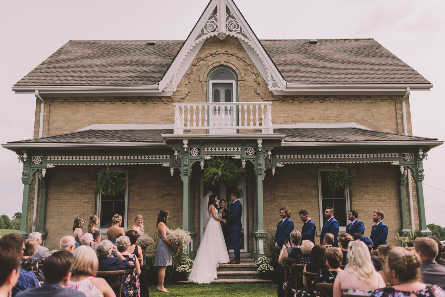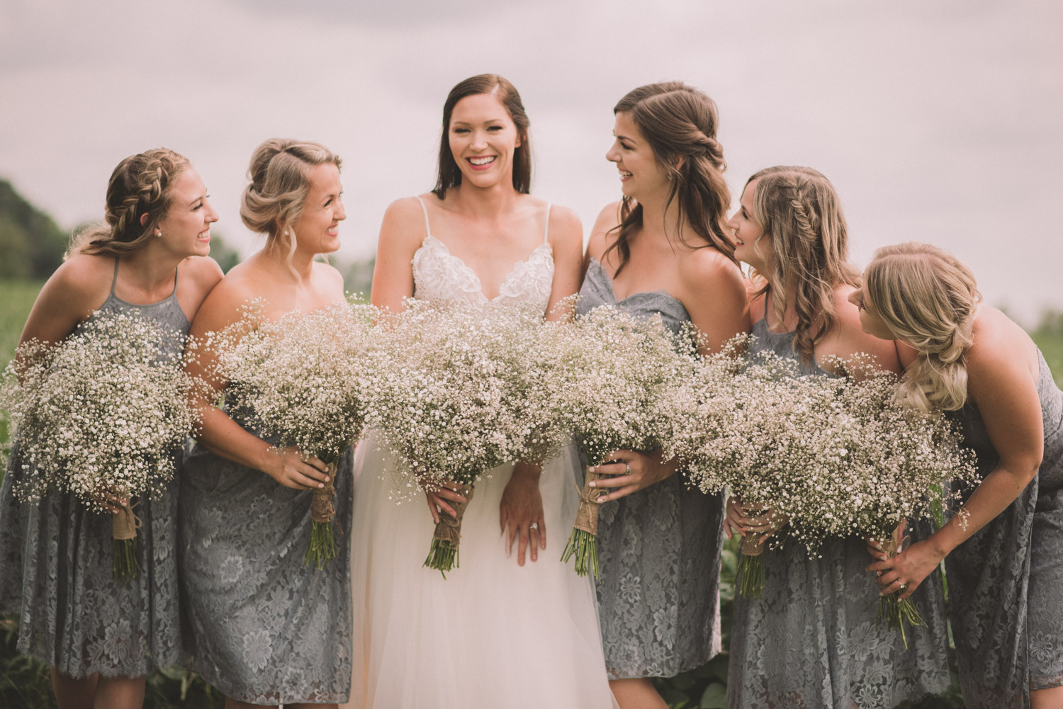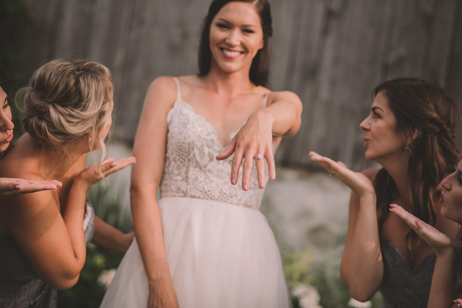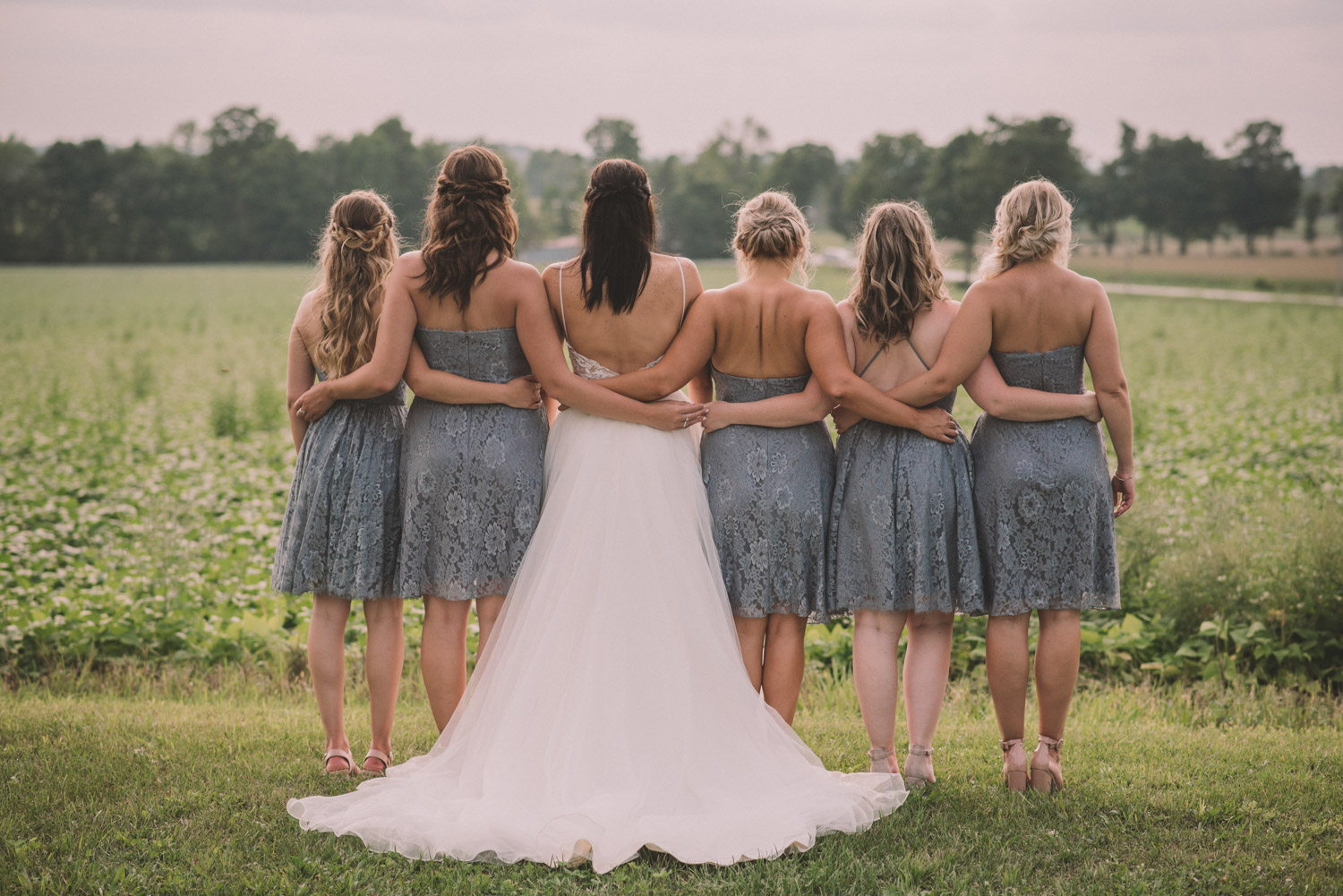 After photographing some details and prep, it was time for Brooke and Adam’s lovely ceremony, right on the porch of Brooke’s family’s farmhouse home. The ceremony was followed by a toast, family photos, and bridal party photos! The family had cleaned out the barn, so we were able to use the rustic interior for some gorgeous bride and groom photos.