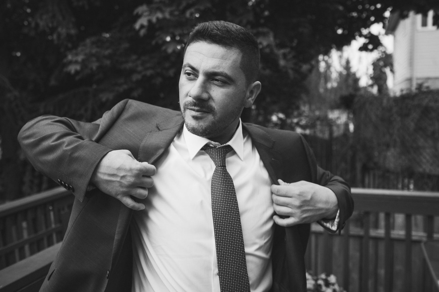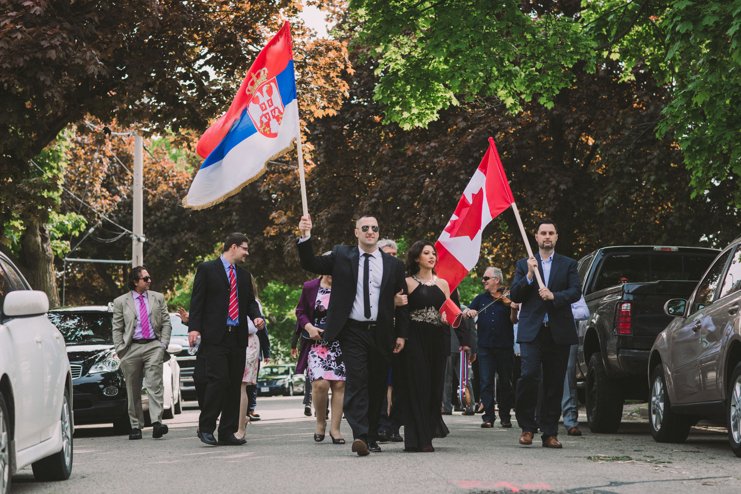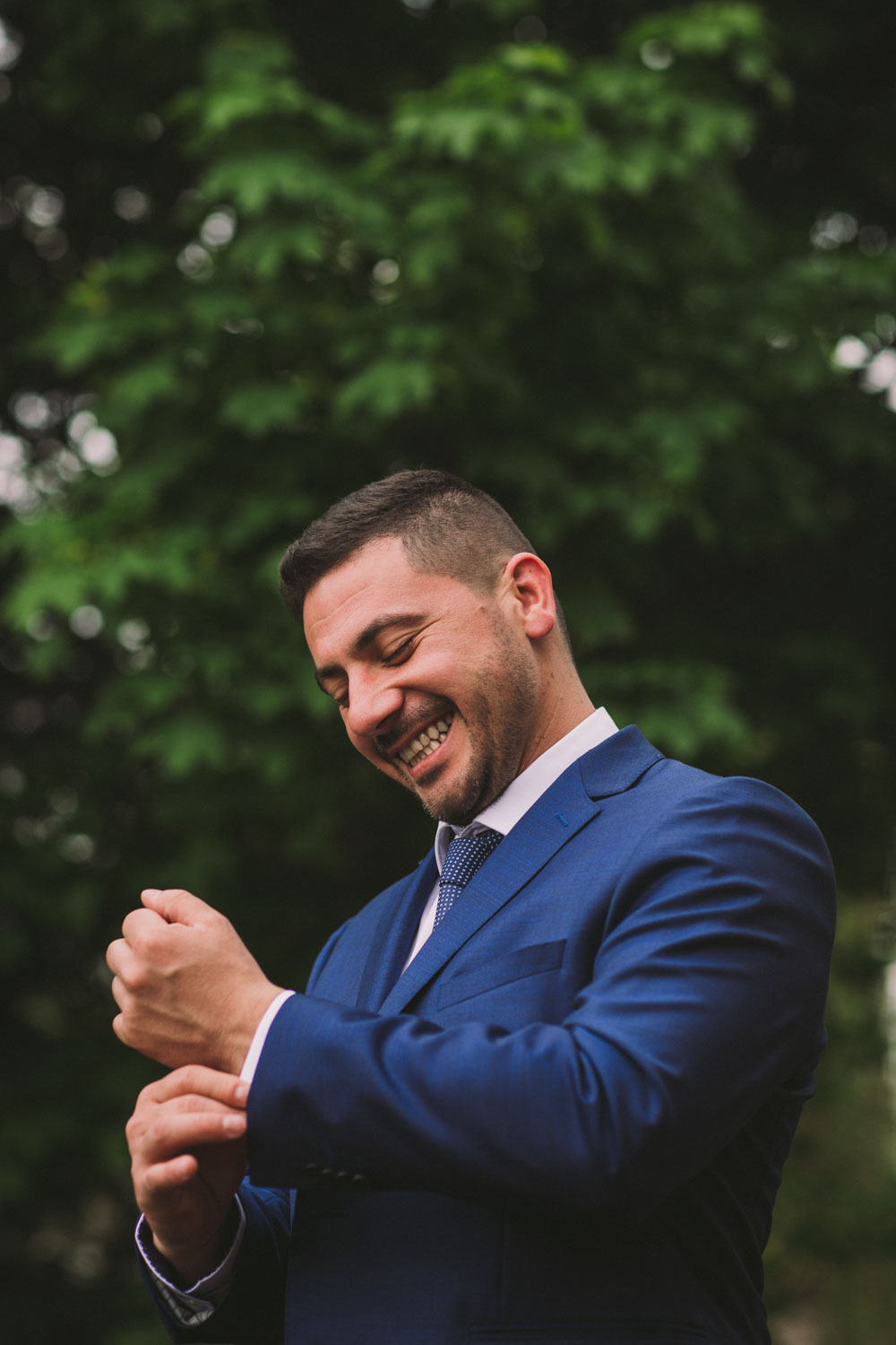 It was hard to believe when their wedding day rolled around – it always comes around so much faster than I expect. It was a gorgeous sunny June day with beautiful spring apple blossoms. We started the day photographing Vanja’s preparation with my secondary photographer David with Mladen at his home. As is tradition with Serbian weddings, Mladen’s side then proceeded to come to Vanja’s side and “barter” for the bride (and old tradition that is now a showy and hilarious spectacle as the men “barter” and the bride’s side demands more and more).