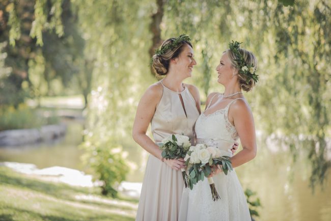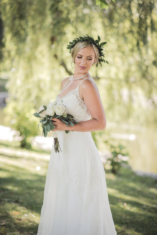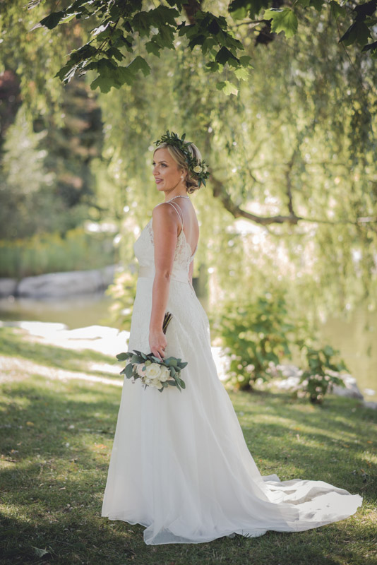 Joanna and Kyle’s beautiful outdoor wedding ceremony took place at Bingeman’s in Kitchener, on a gorgeous day! We then proceeded to Victoria Park for family and bridal party photography amongst the sunlit willows along the riverbank. Perfection!