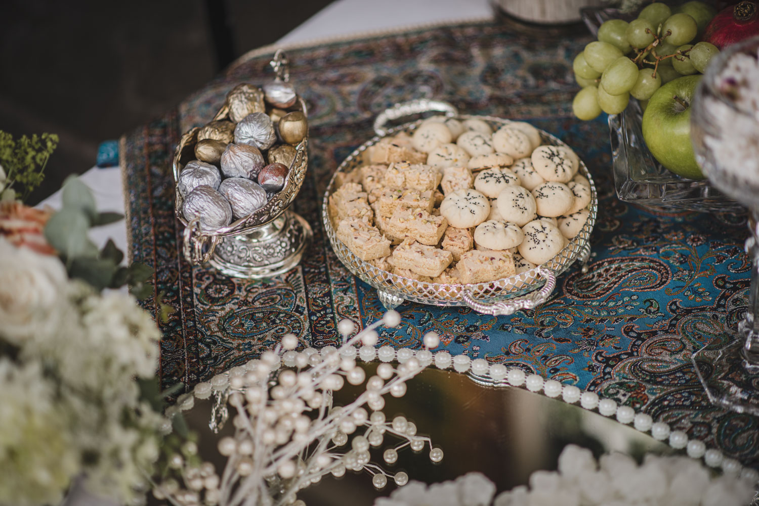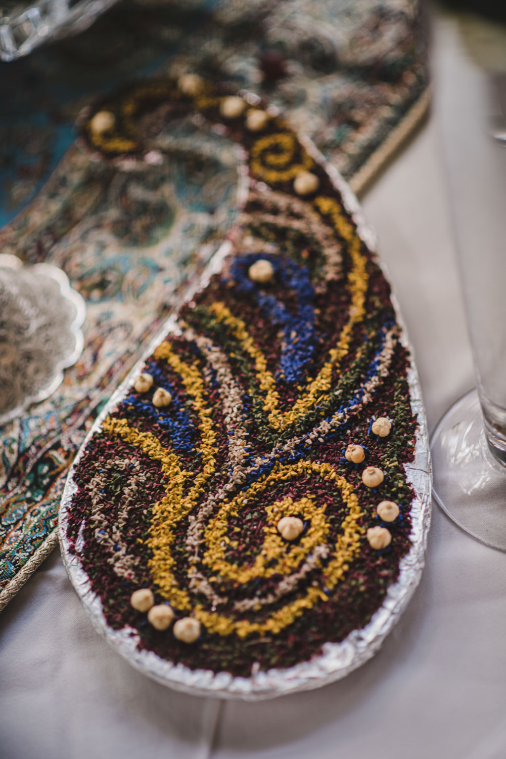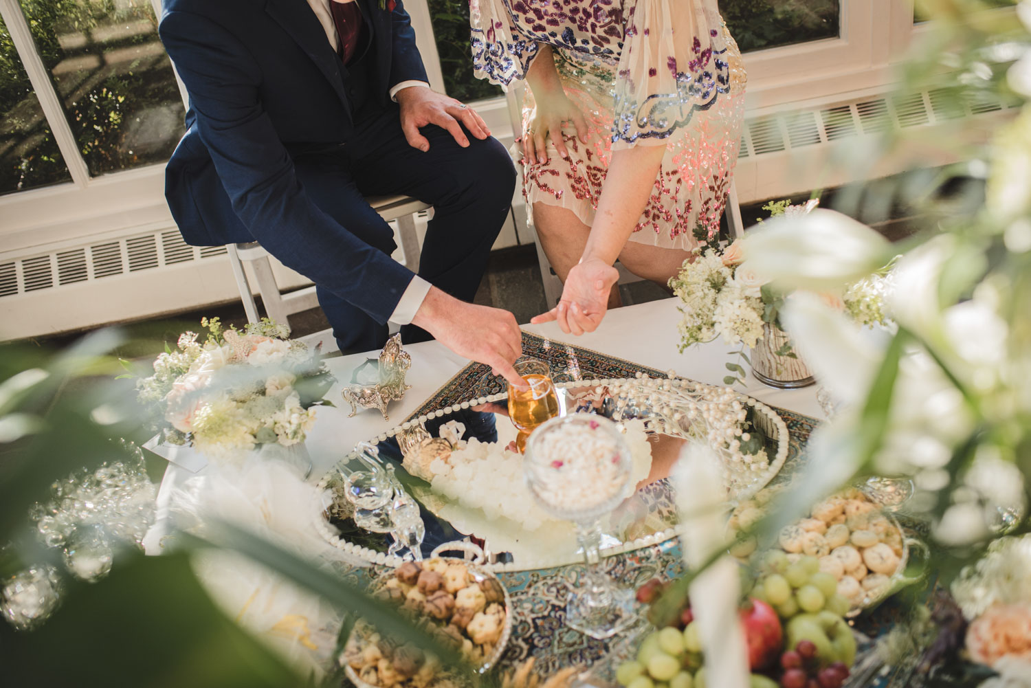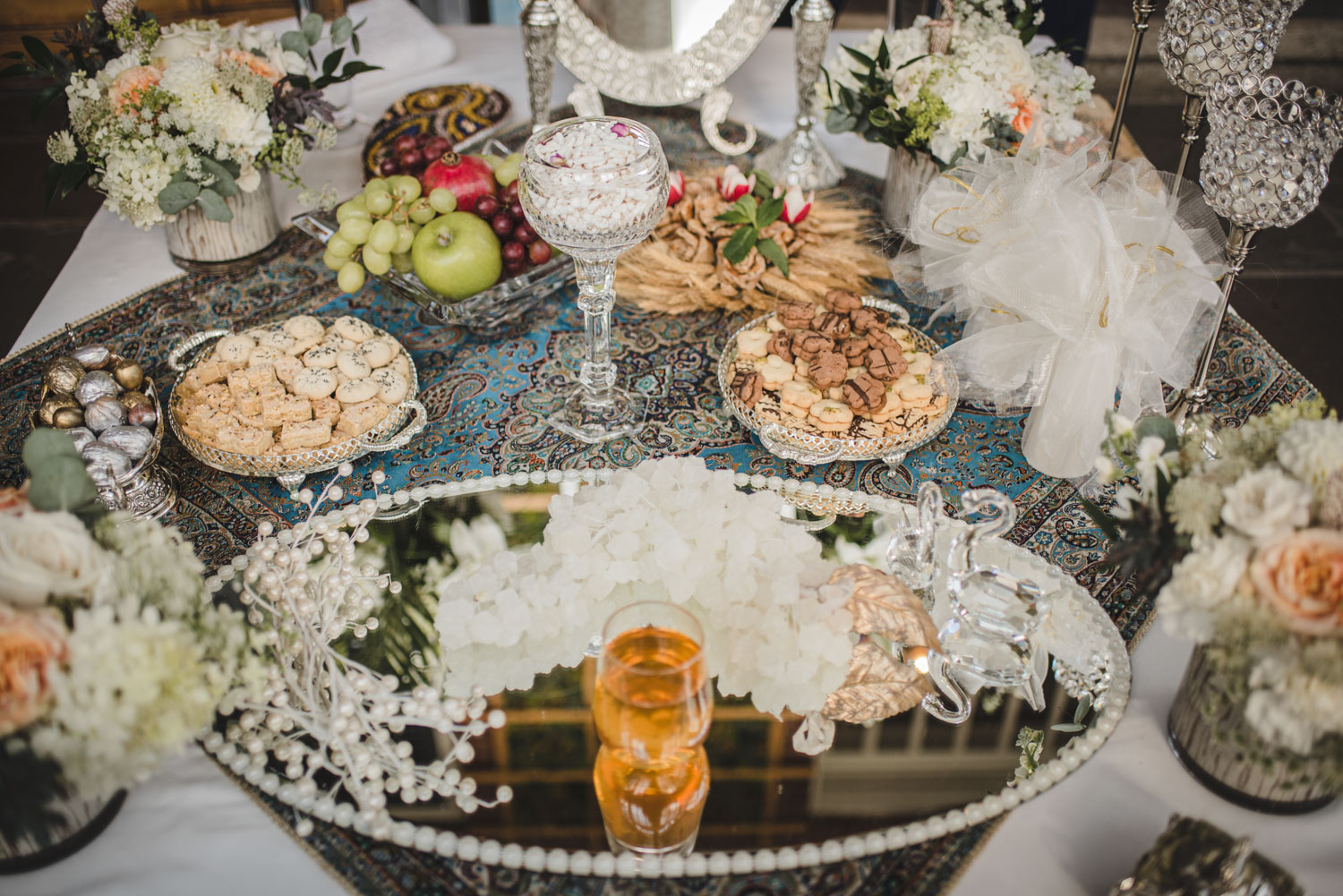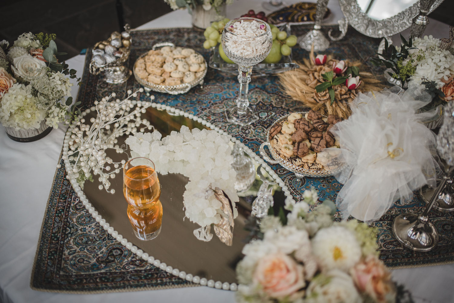 We started their big day with their couples’ photoshoot on the beautiful Langdon Hall property, followed by family photos, and their ceremony and reception in Colonel Langdon’s room and conservatory. Ailar’s mum prepared a beautiful Sofreh Aghd – an elaborate “wedding table” traditional to Persian culture – for their big day. Like the couple, it was lovely!