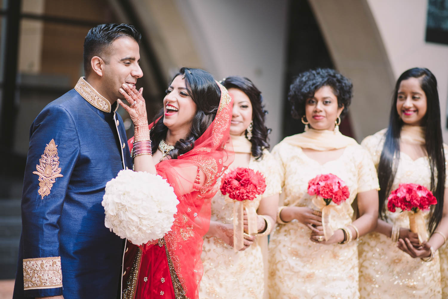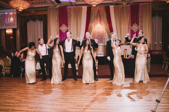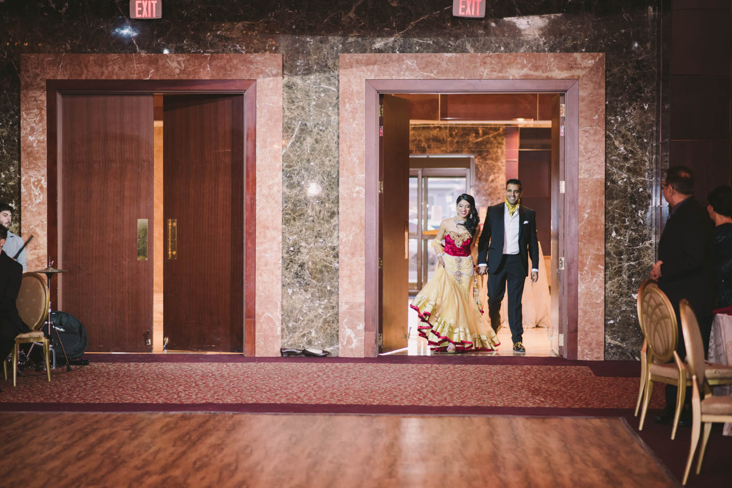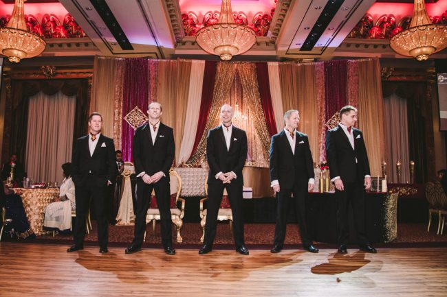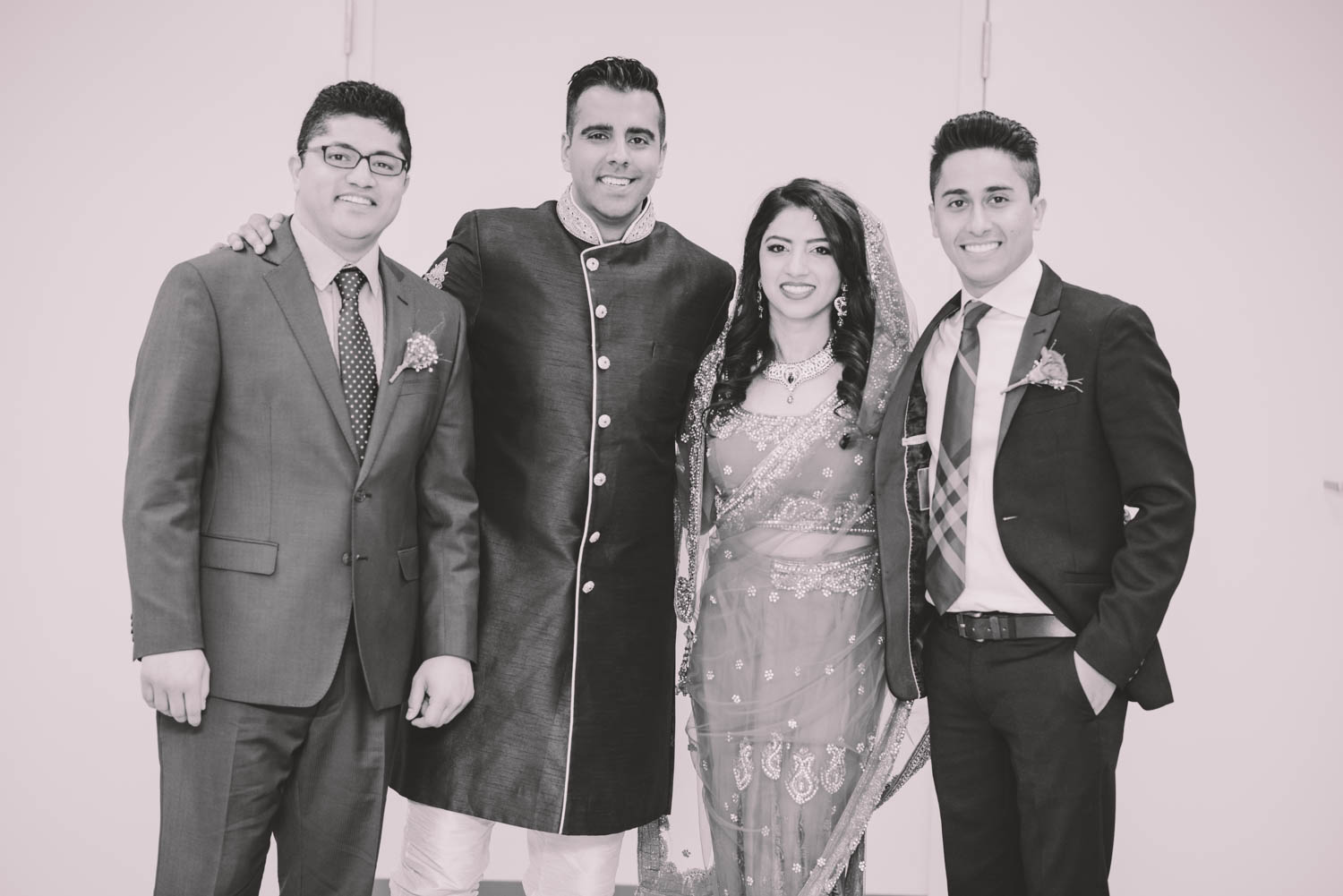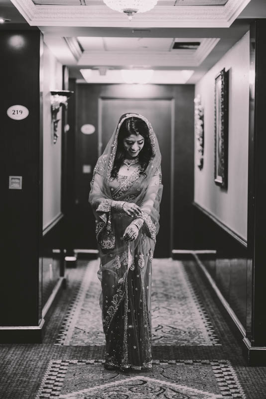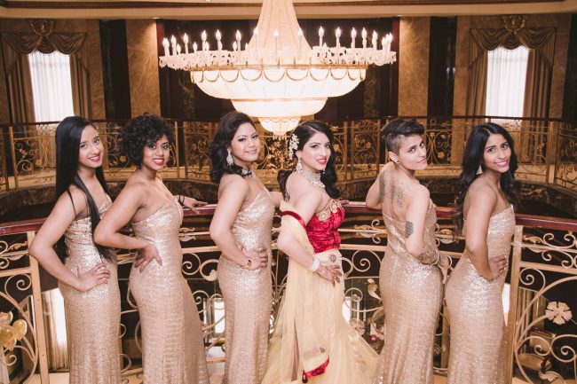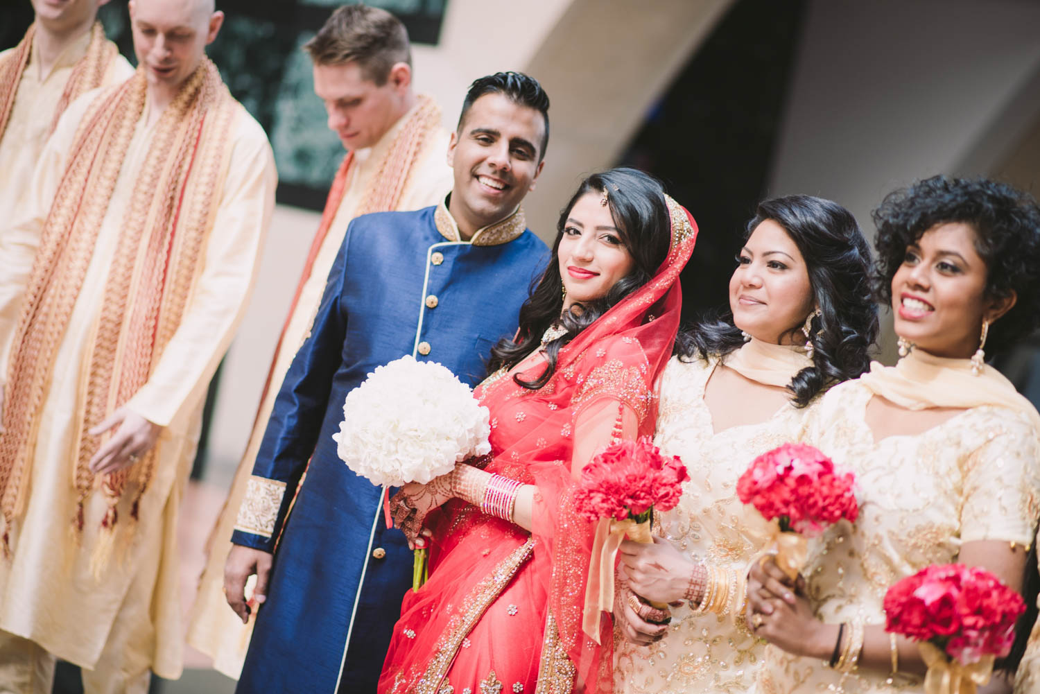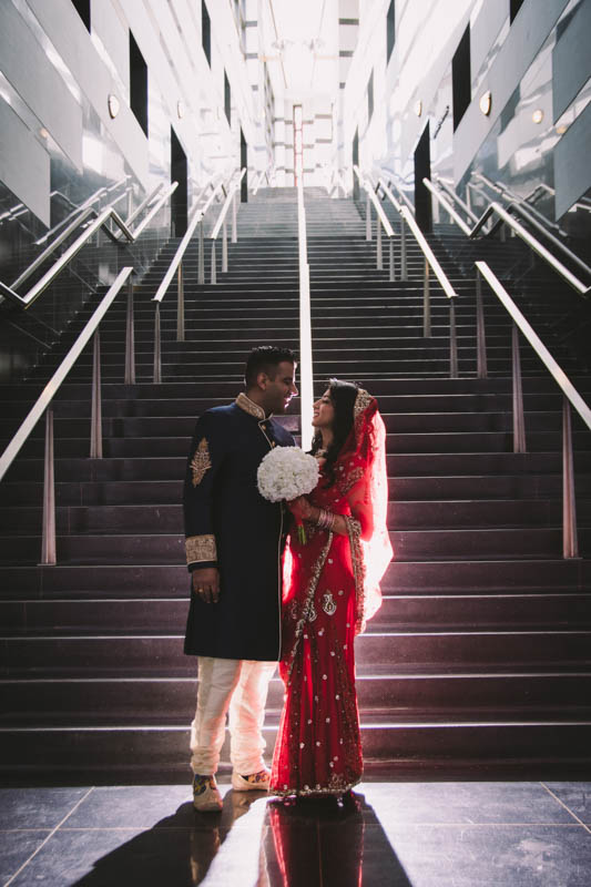 It was still very cold, so they opted to have their bridal party photos done indoors at Mississauga City Hall. Their Ismaili wedding ceremony took place at a nearby Jama’at Khana, followed by a gorgeous reception at the Grand Victorian Convention Centre.