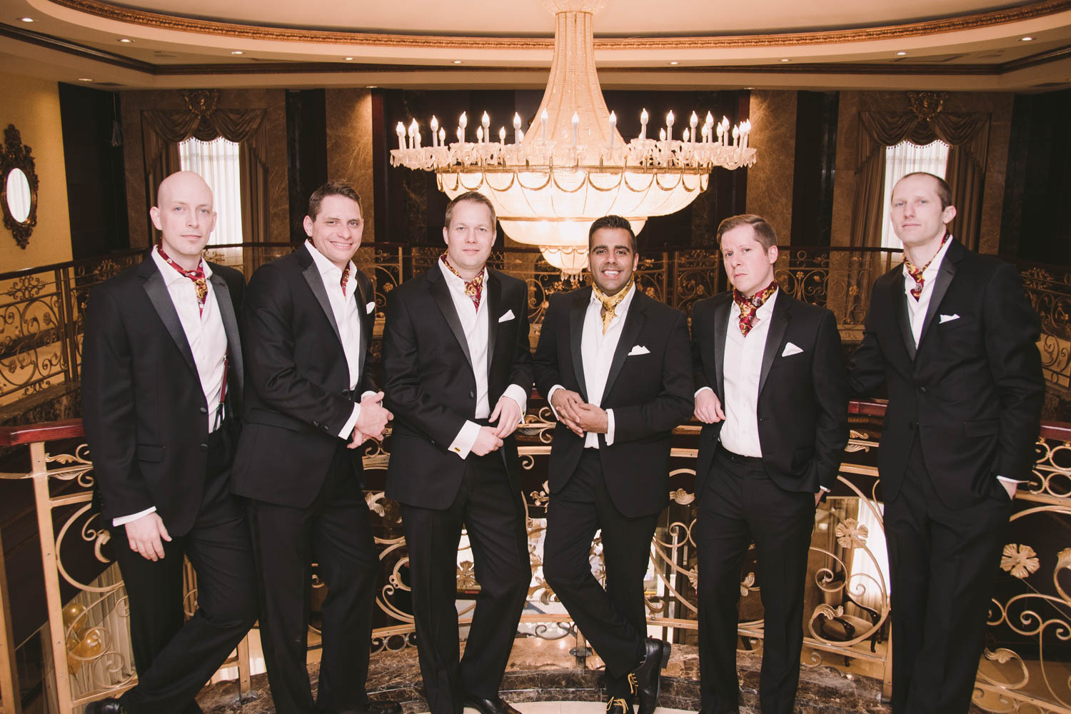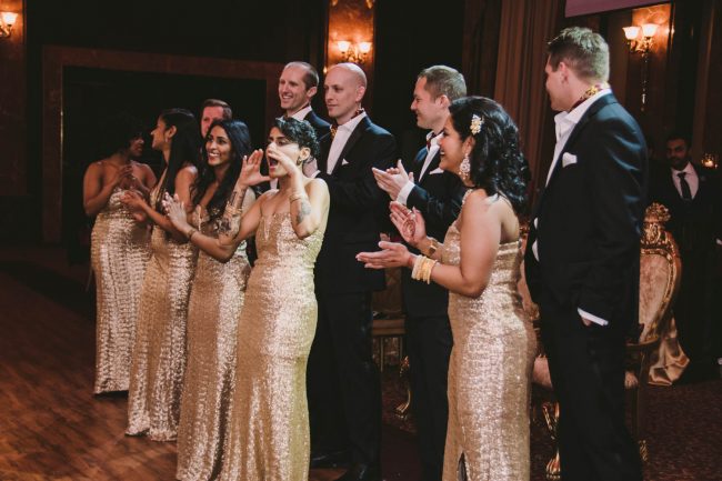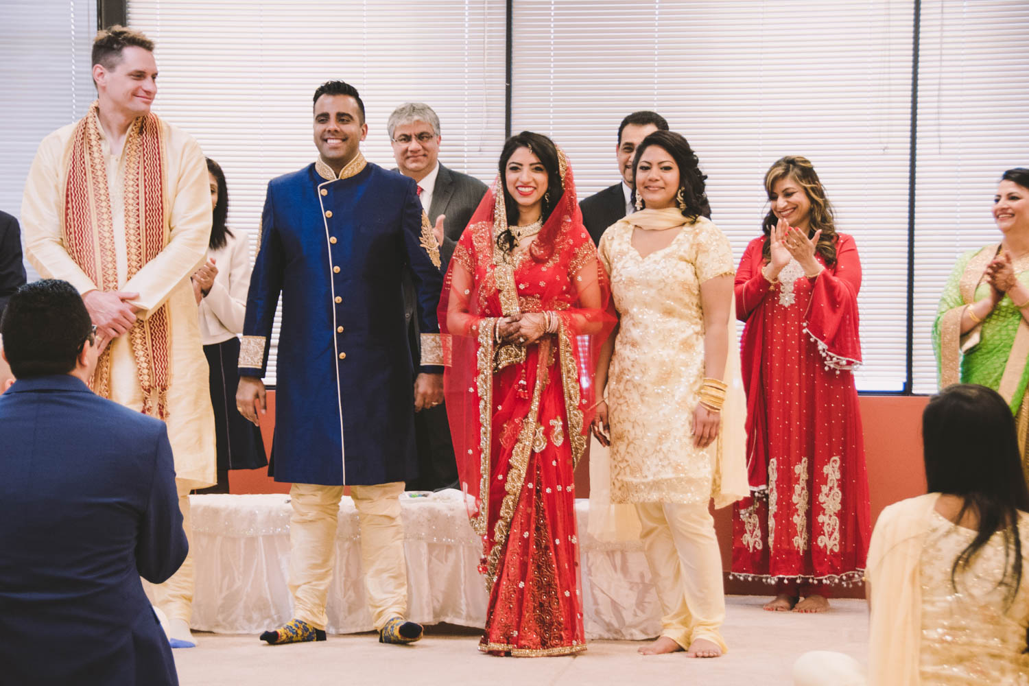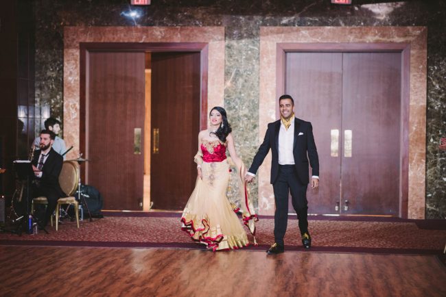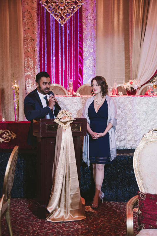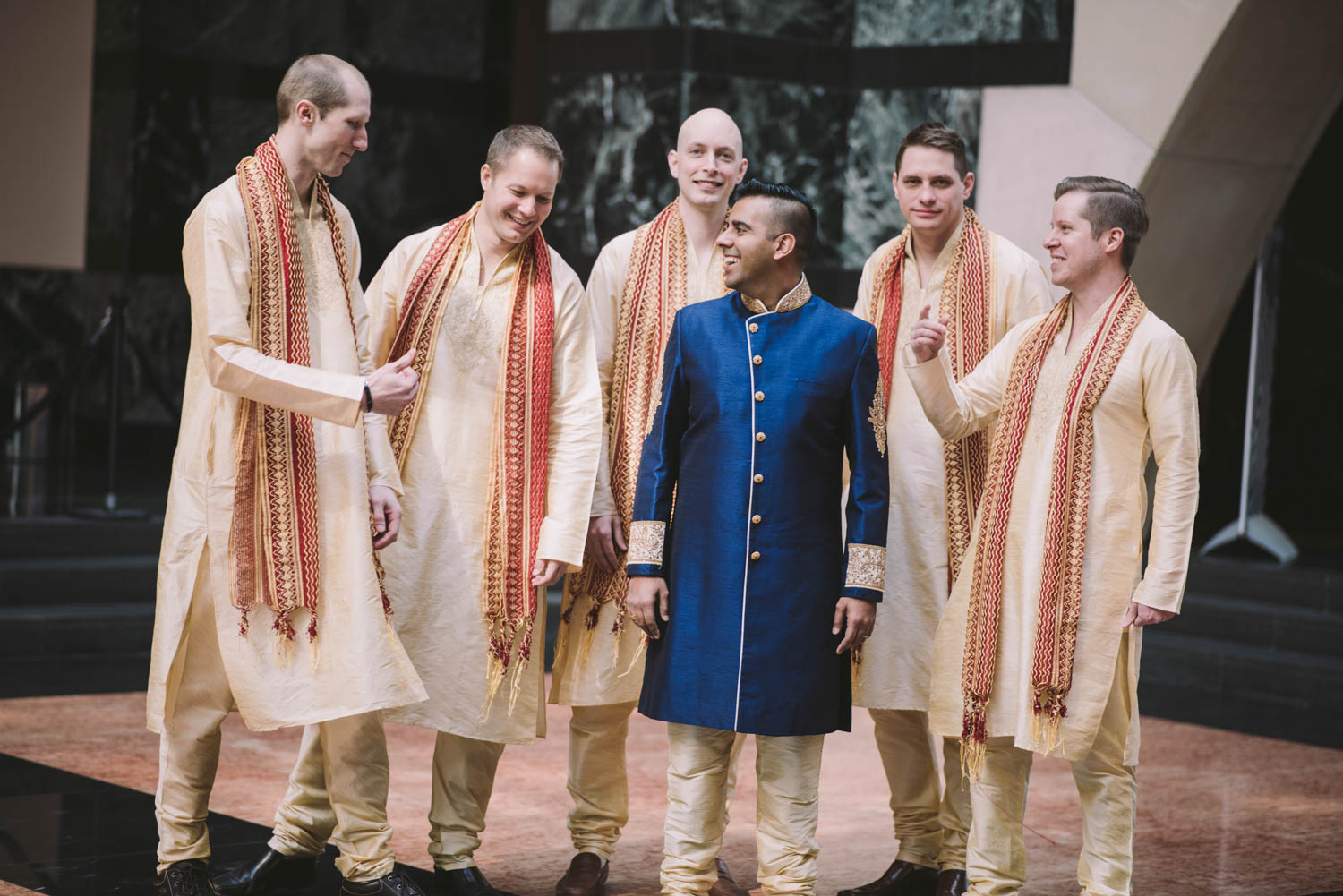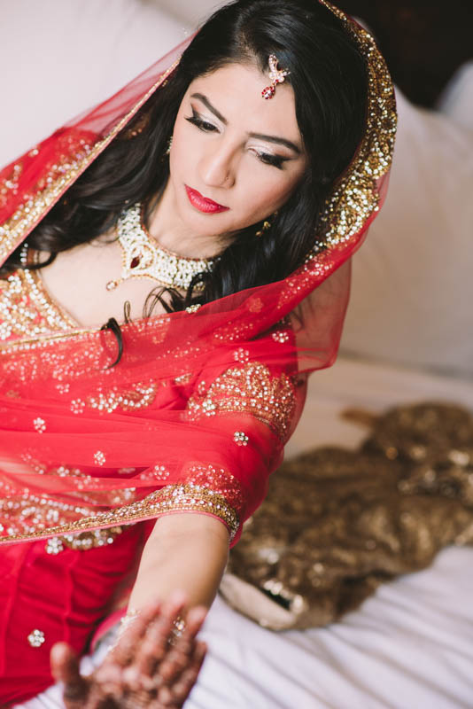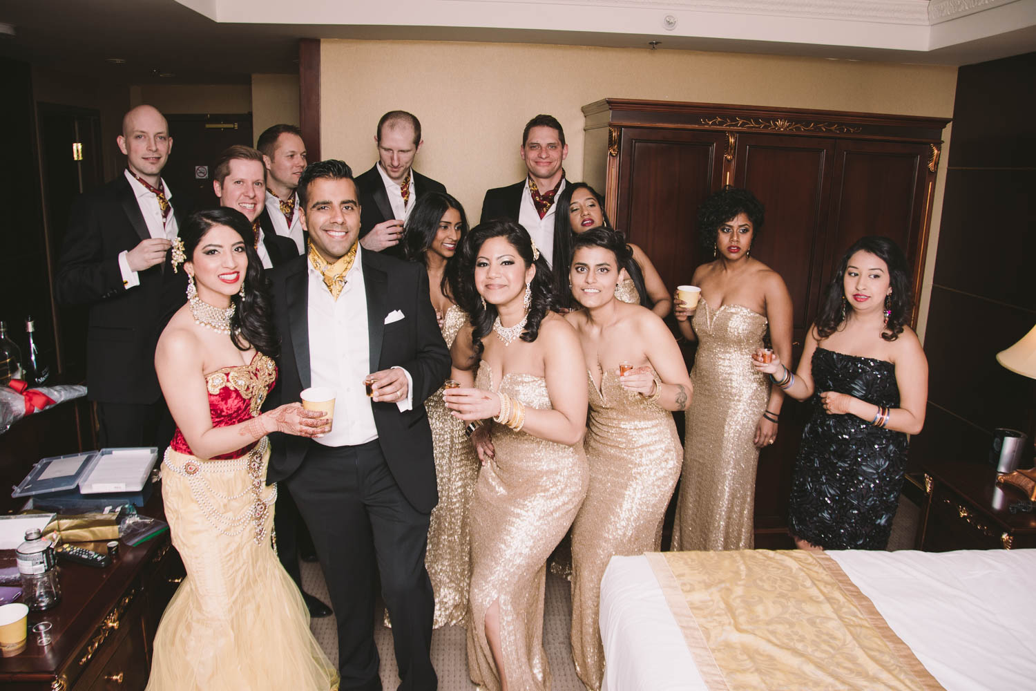 It was still very cold, so they opted to have their bridal party photos done indoors at Mississauga City Hall. Their Ismaili wedding ceremony took place at a nearby Jama’at Khana, followed by a gorgeous reception at the Grand Victorian Convention Centre.