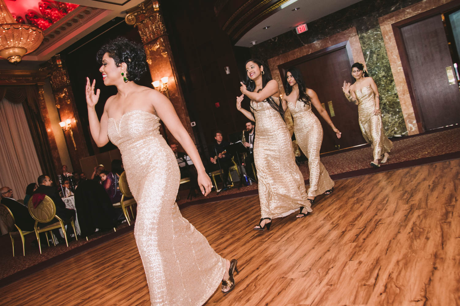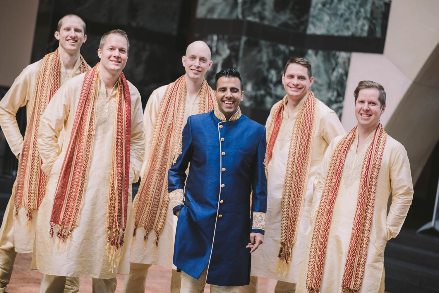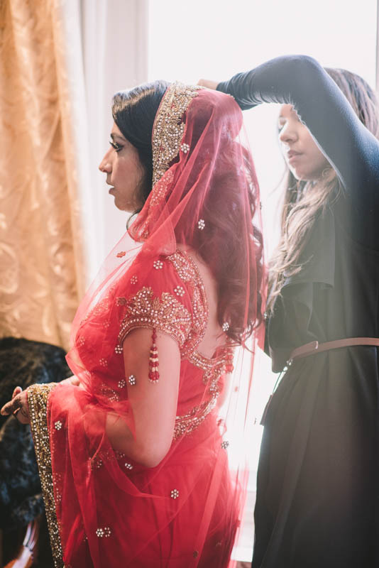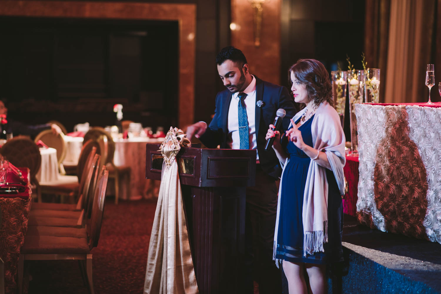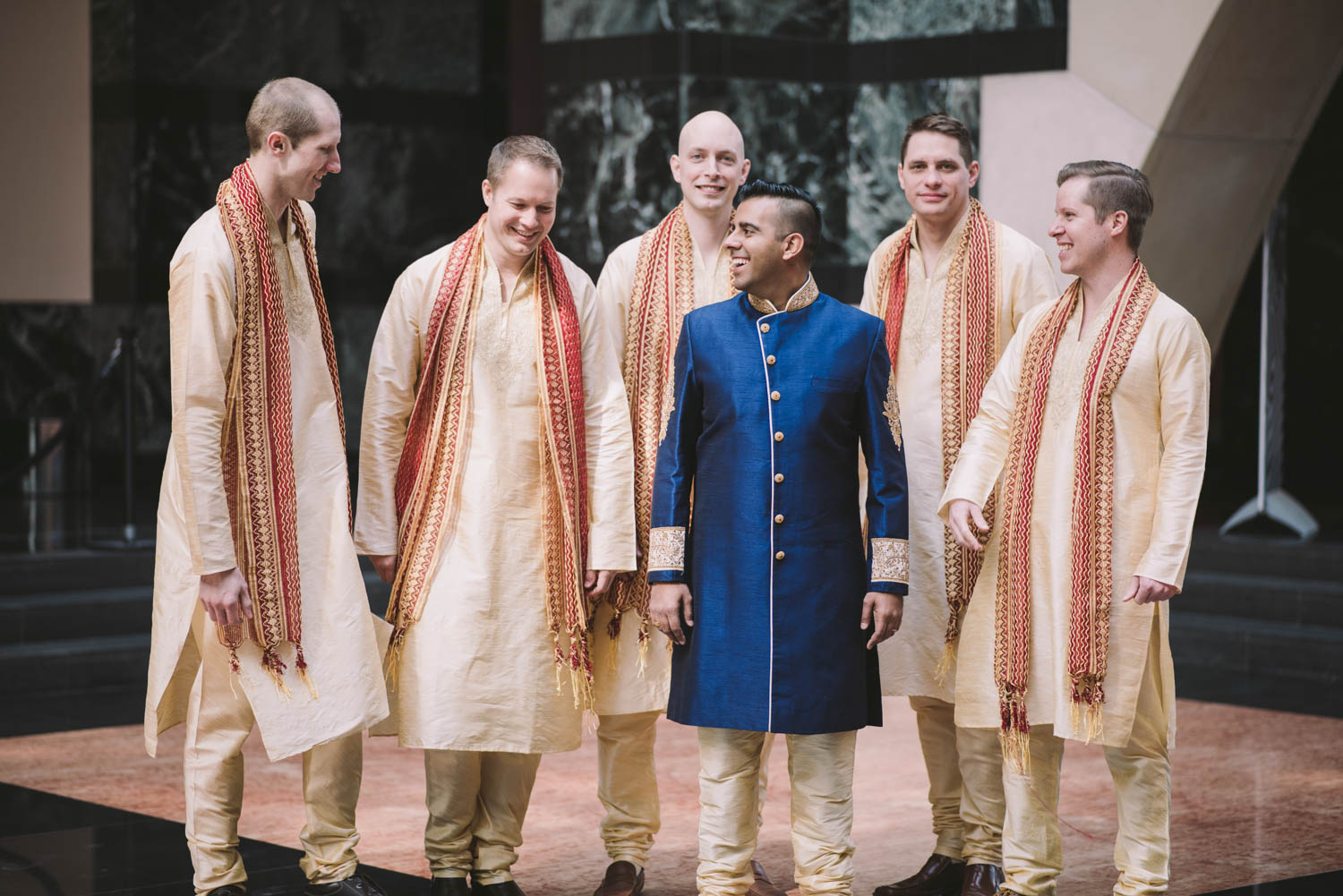 It was still very cold, so they opted to have their bridal party photos done indoors at Mississauga City Hall. Their Ismaili wedding ceremony took place at a nearby Jama’at Khana, followed by a gorgeous reception at the Grand Victorian Convention Centre.