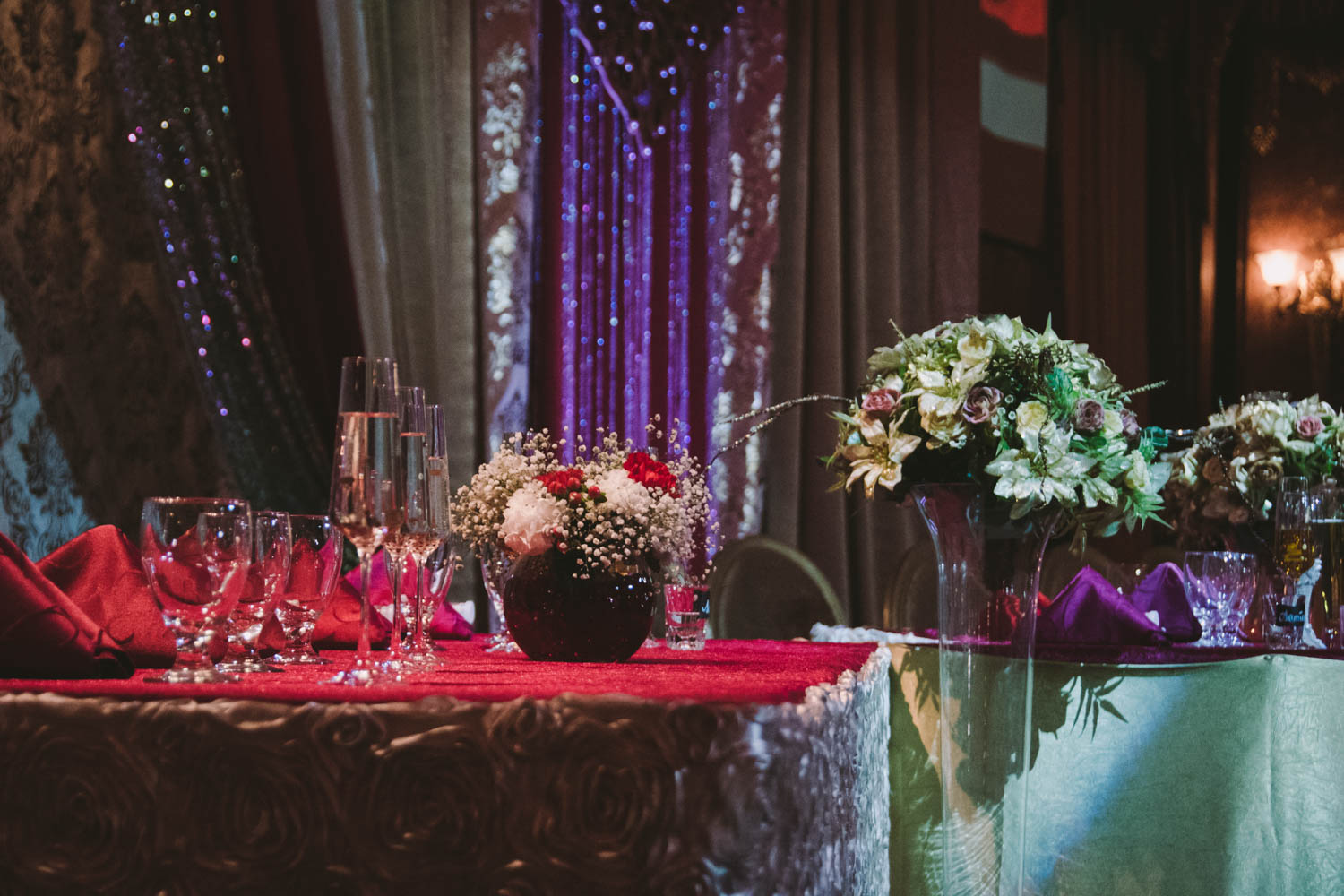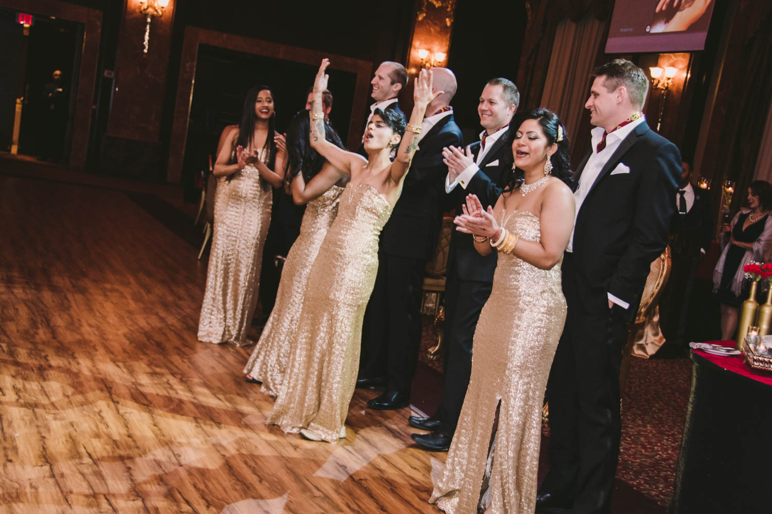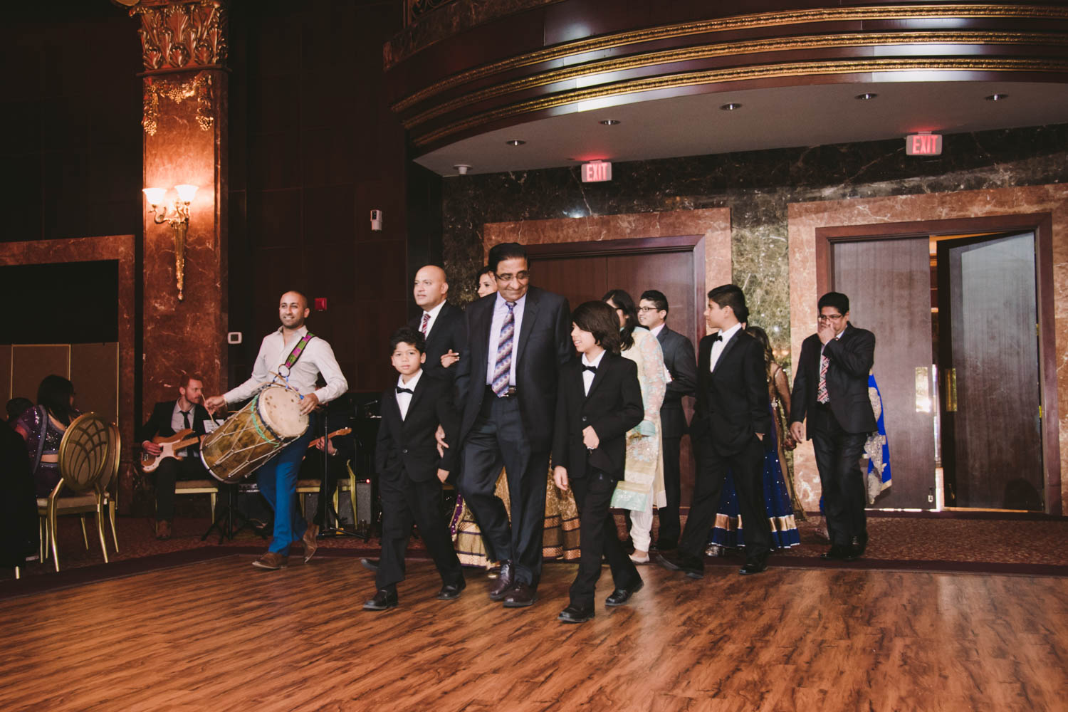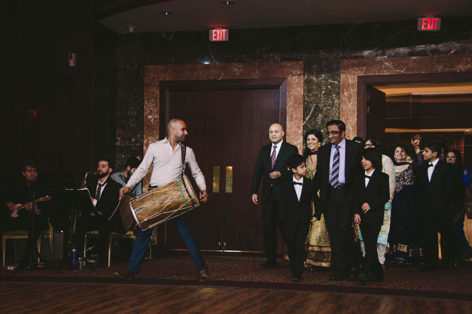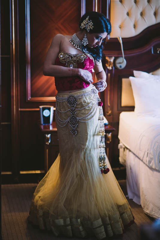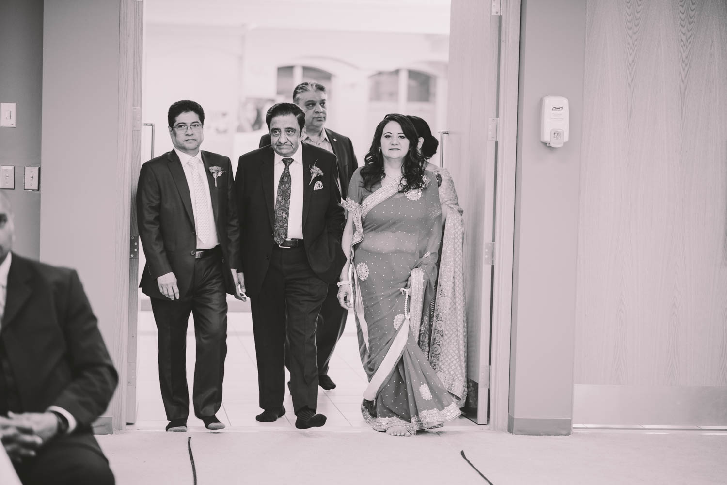 It was still very cold, so they opted to have their bridal party photos done indoors at Mississauga City Hall. Their Ismaili wedding ceremony took place at a nearby Jama’at Khana, followed by a gorgeous reception at the Grand Victorian Convention Centre.