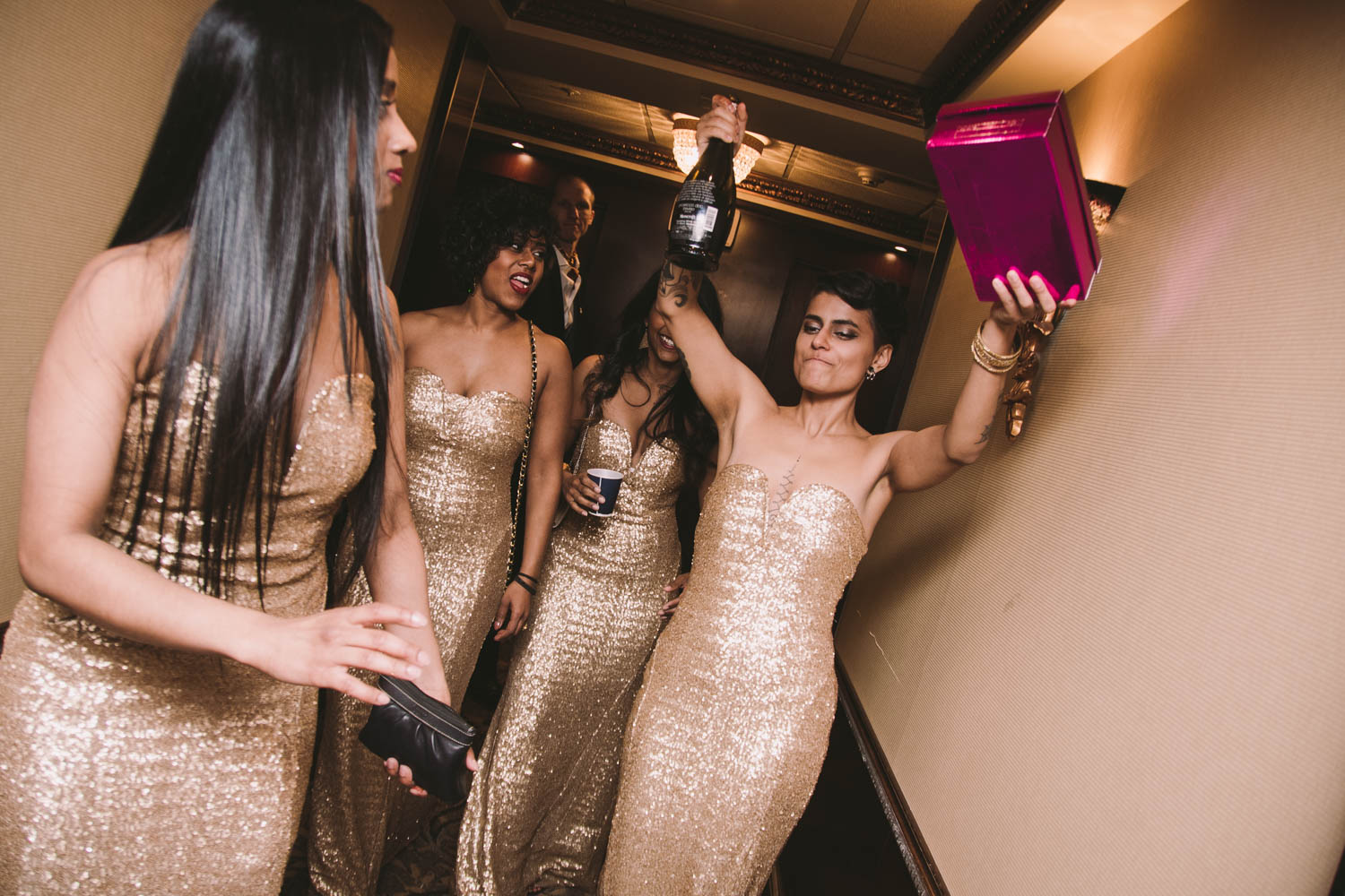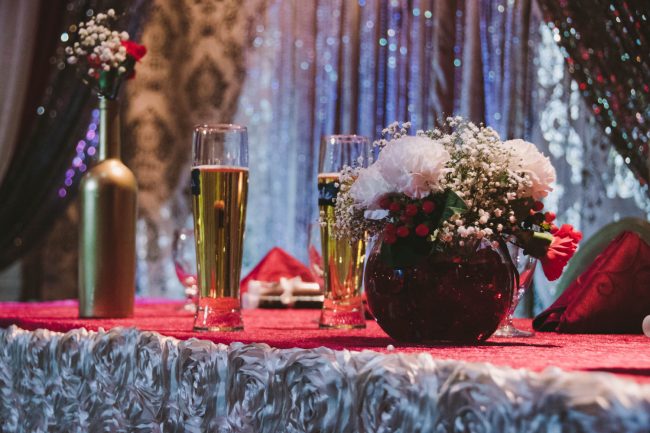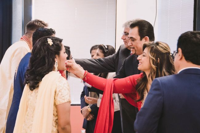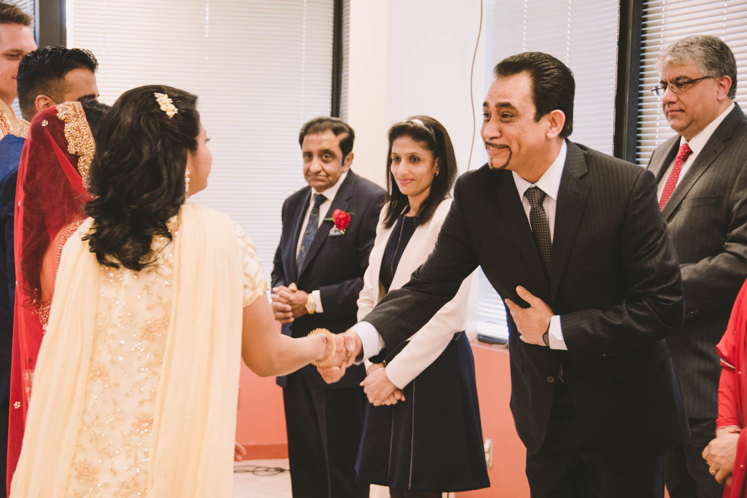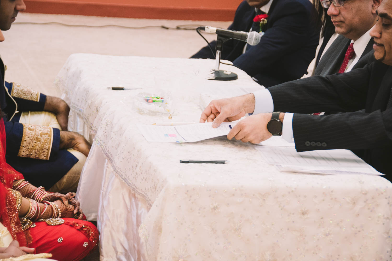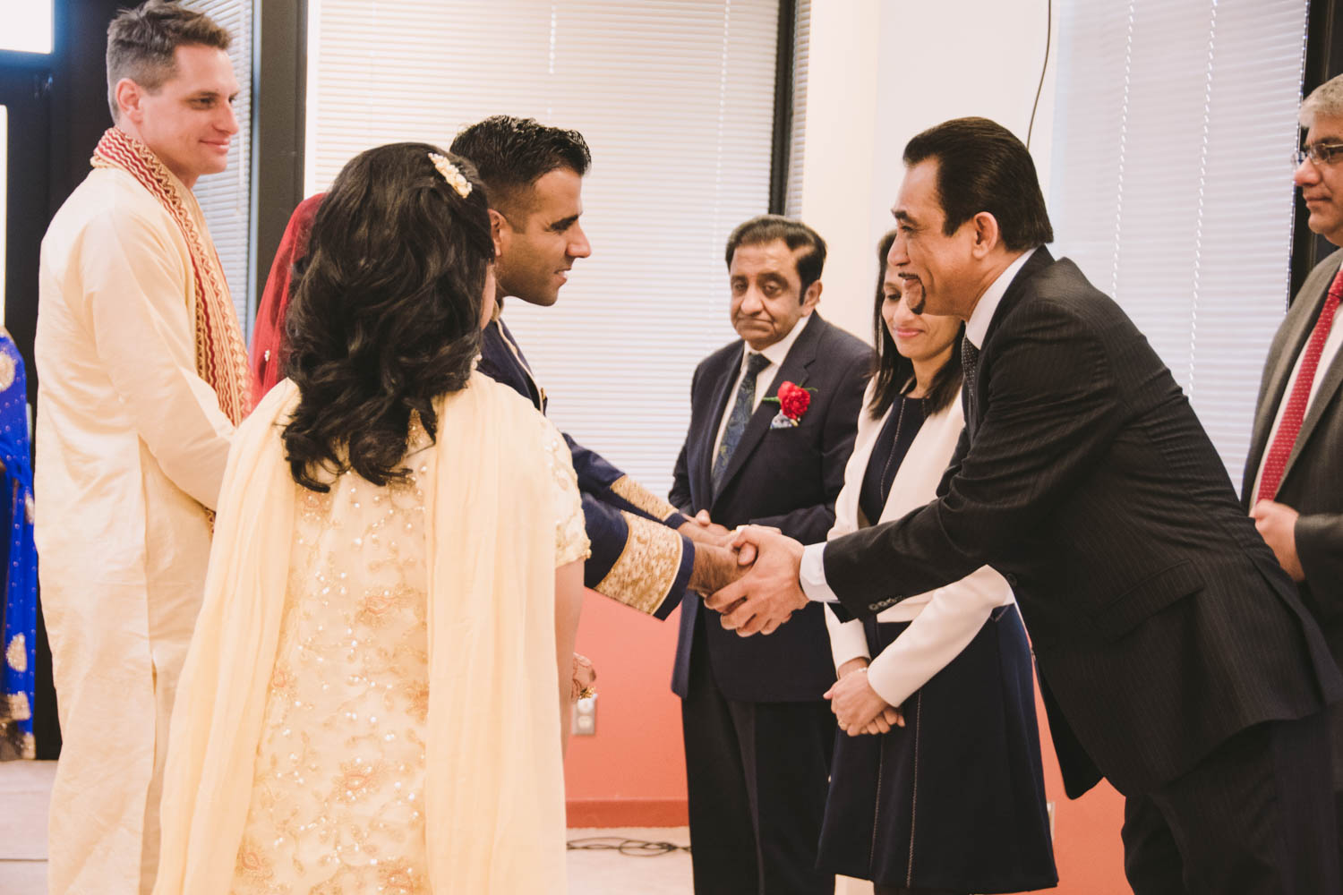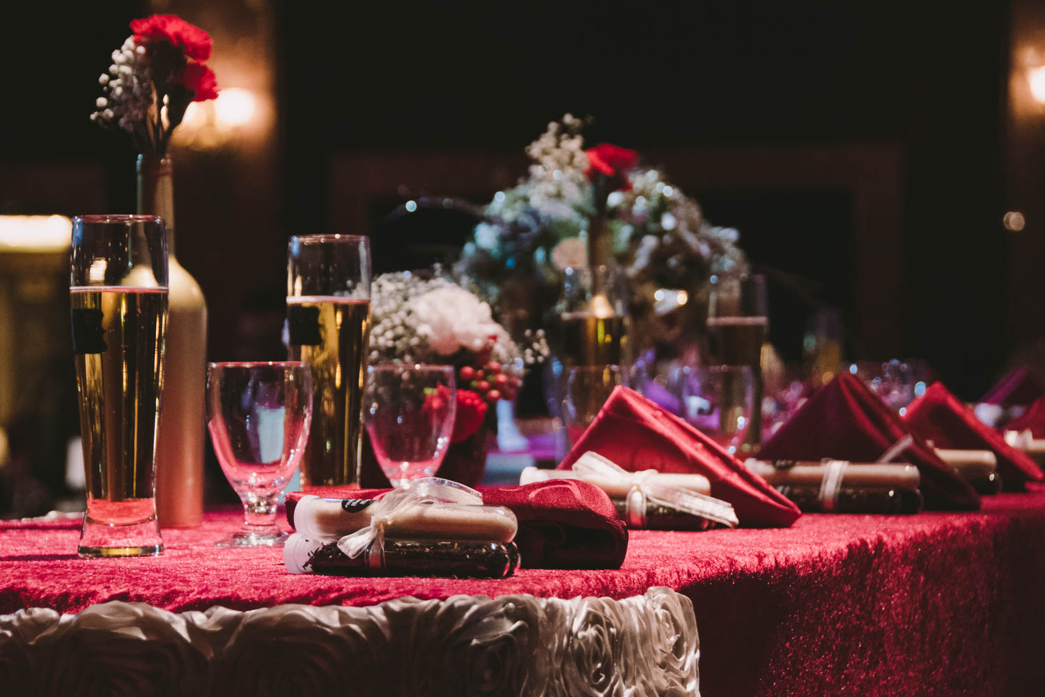 It was still very cold, so they opted to have their bridal party photos done indoors at Mississauga City Hall. Their Ismaili wedding ceremony took place at a nearby Jama’at Khana, followed by a gorgeous reception at the Grand Victorian Convention Centre.