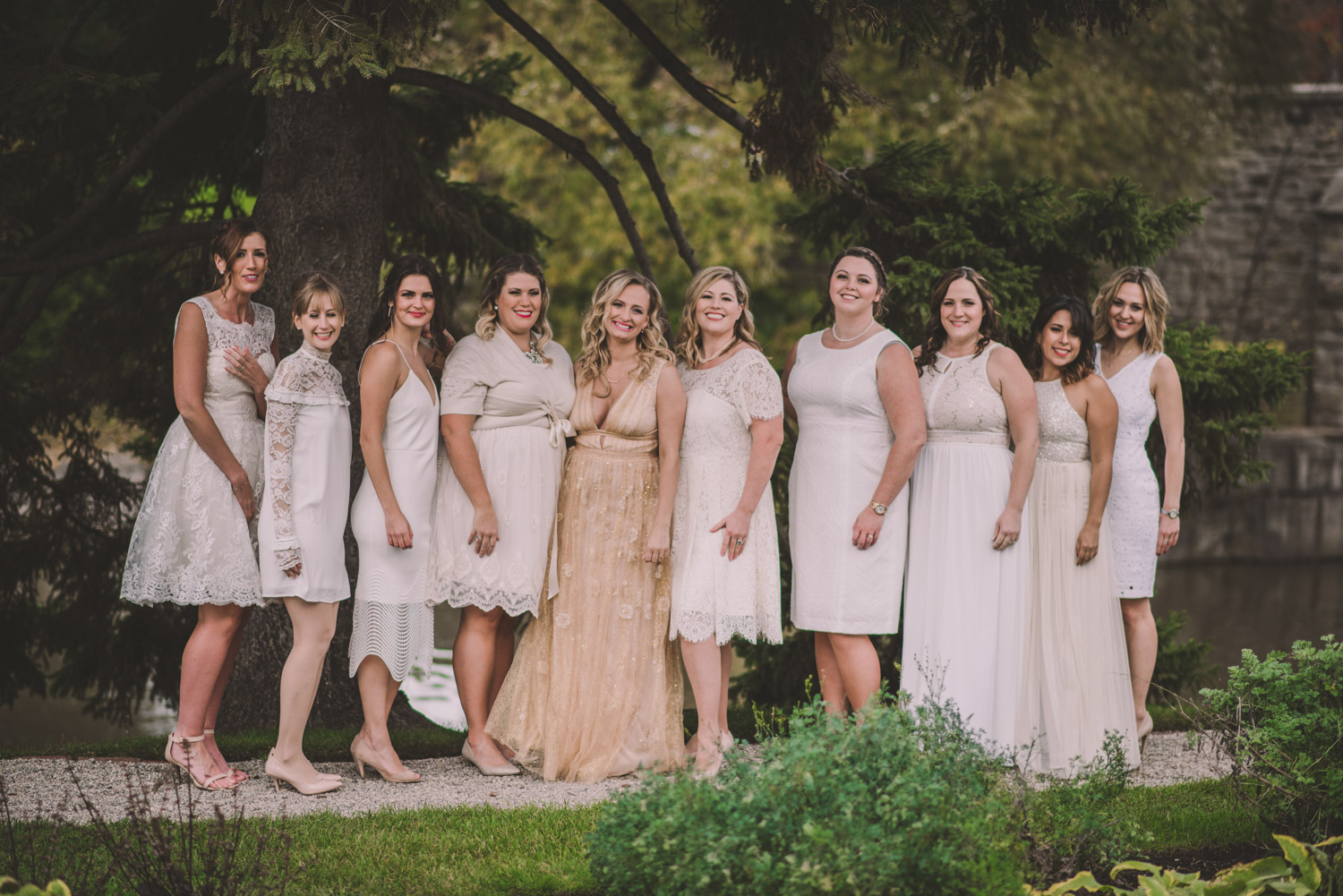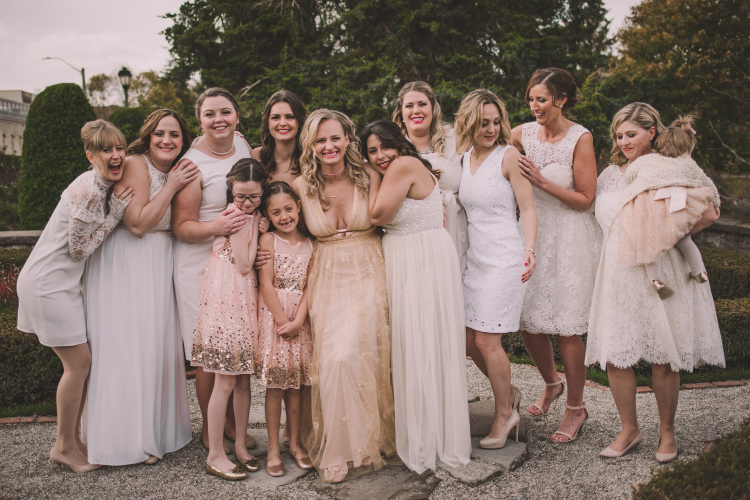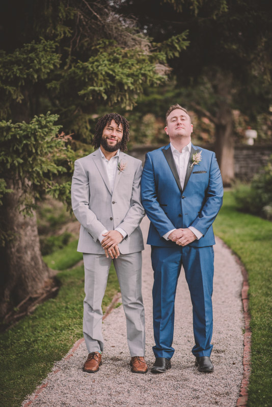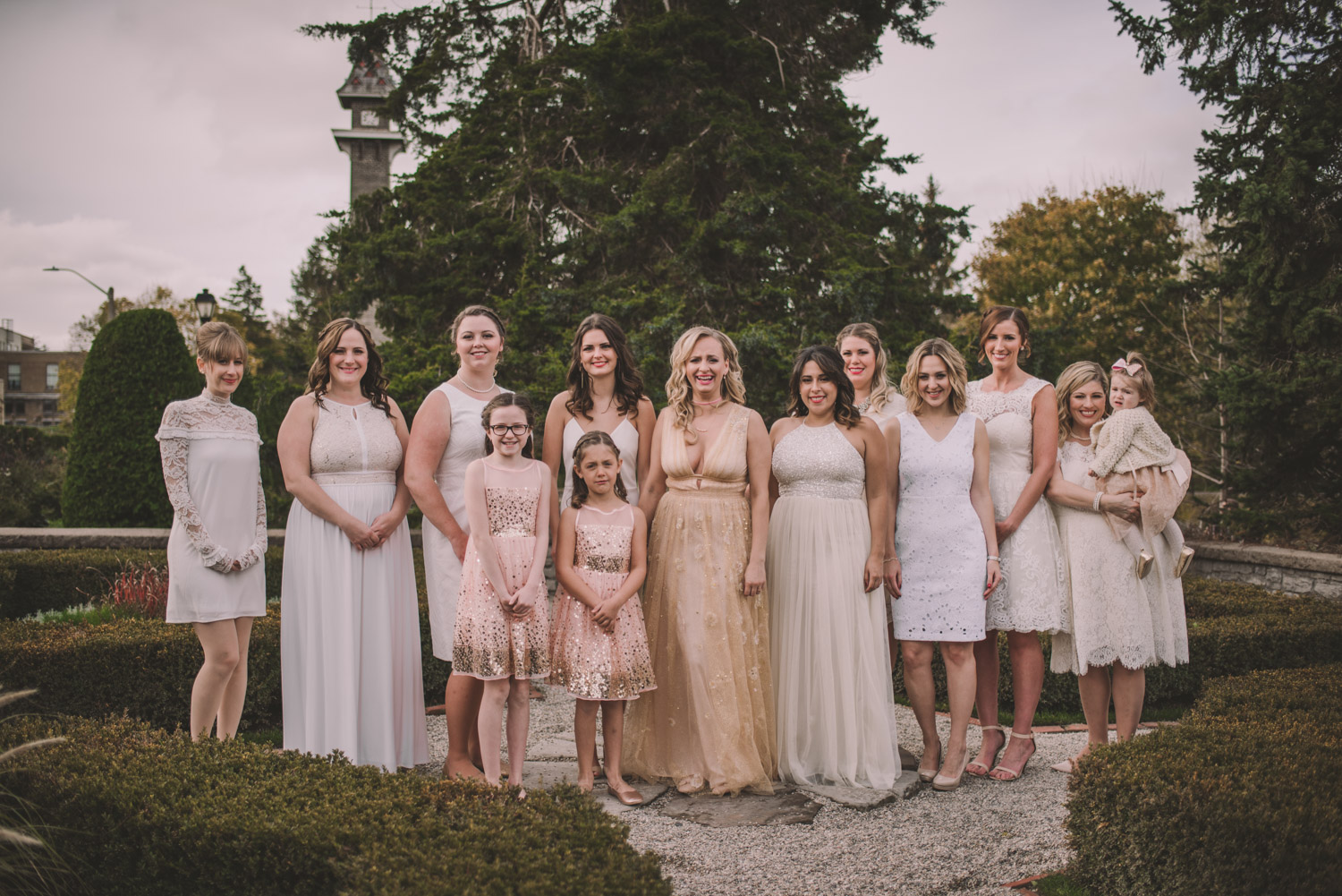 Once everyone was ready to go, Michelle met Scott during their first look in one of the Bruce’s window lined hallways. So cute! We then proceeded to the quite chilly though beautiful Shakespearean Gardens for their bridal party photoshoot! I loveeee this couples’ sense of humour! I don’t think I’ve ever laughed so much at a wedding as I did photographing this wedding party!