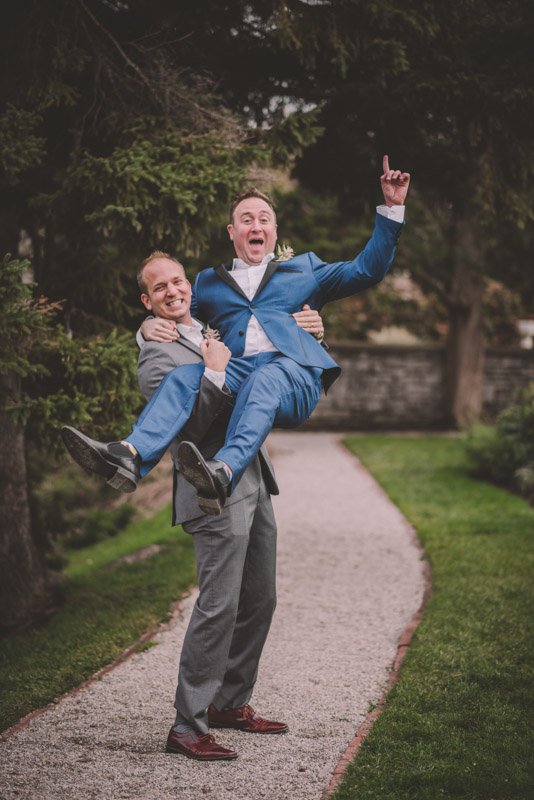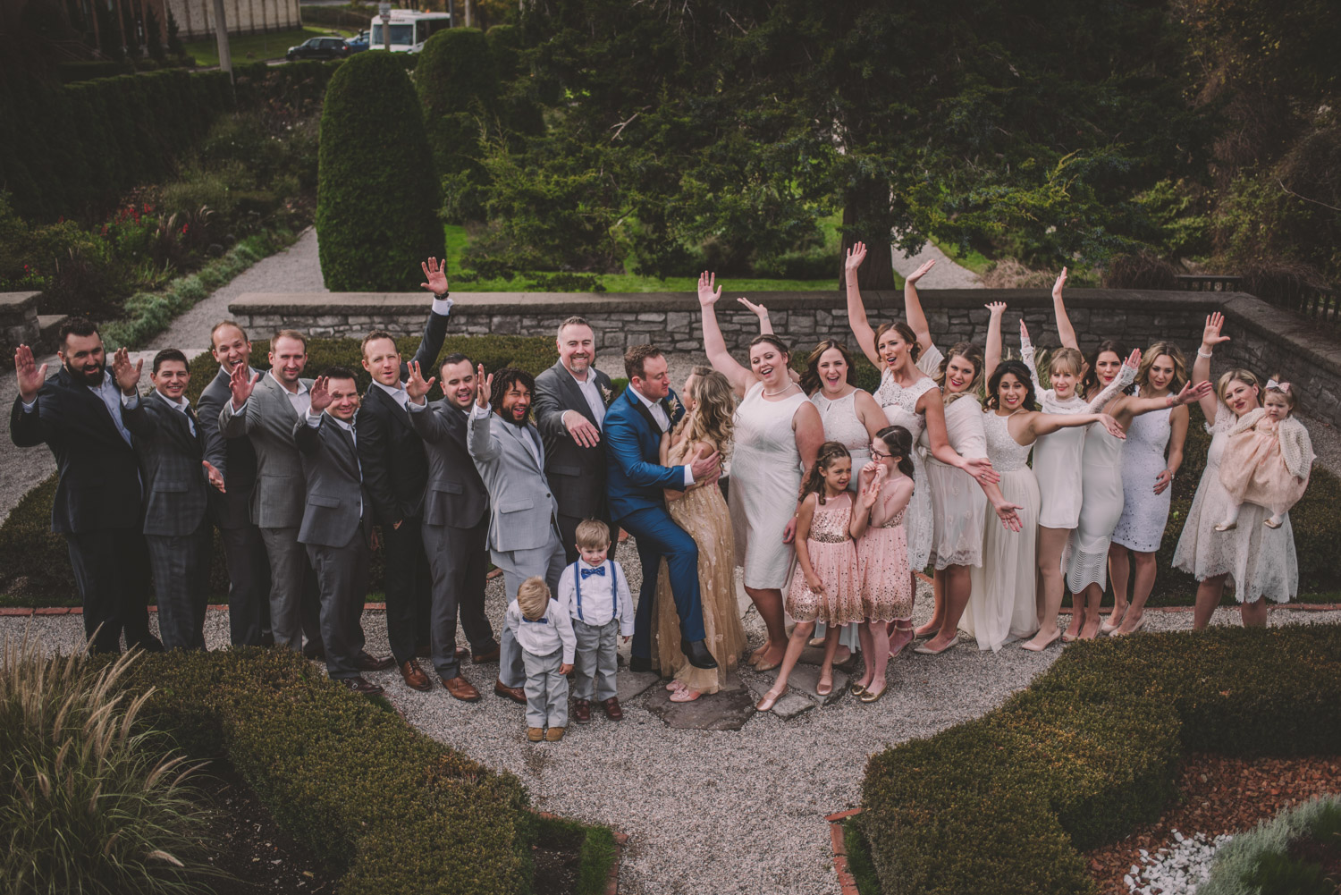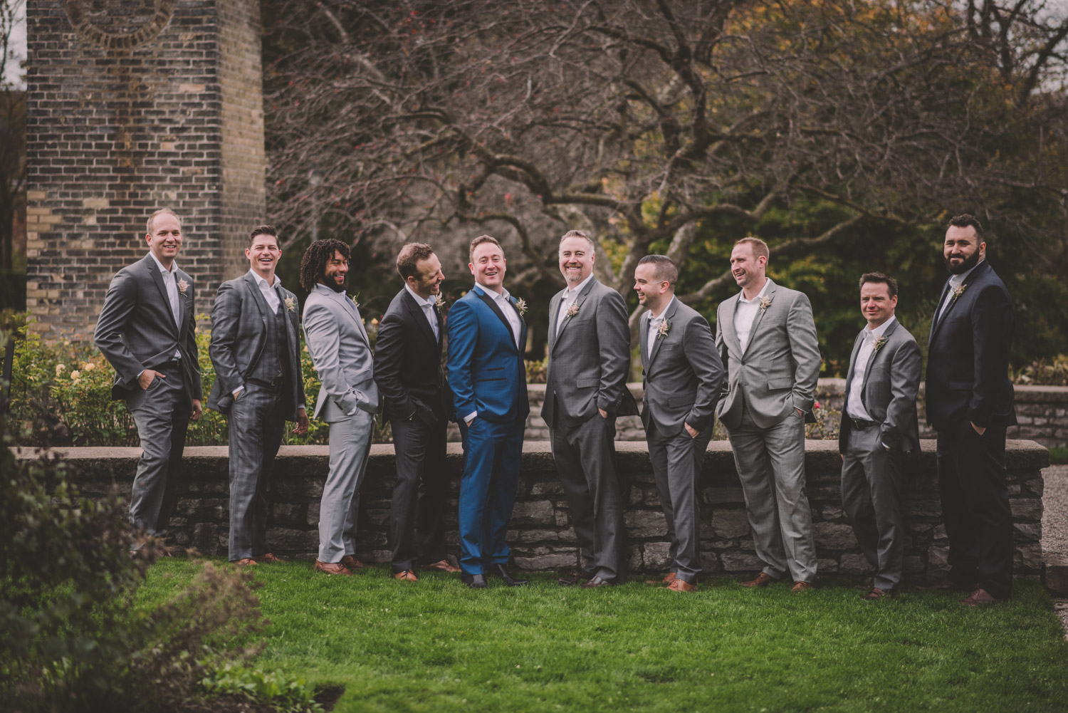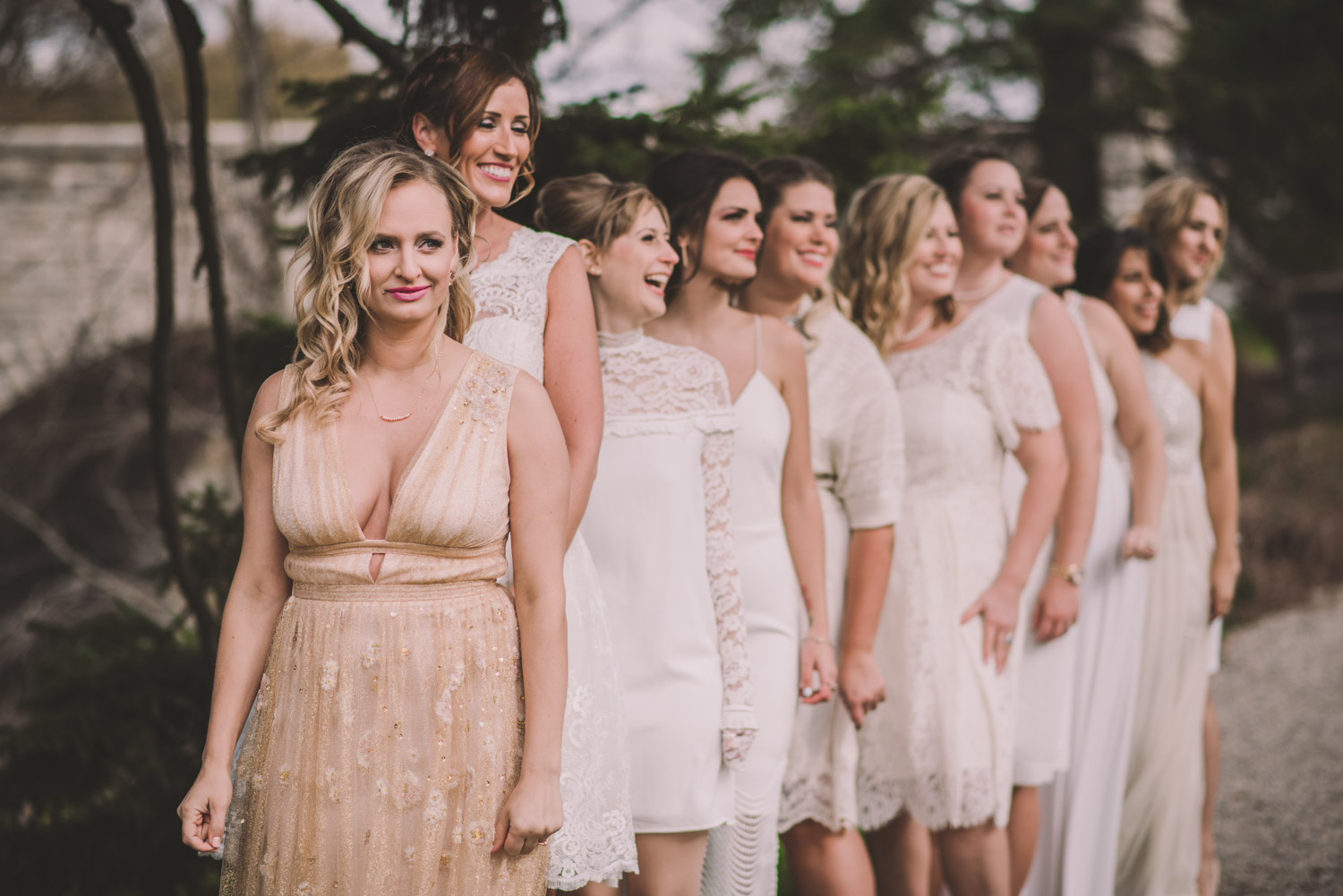 Once everyone was ready to go, Michelle met Scott during their first look in one of the Bruce’s window lined hallways. So cute! We then proceeded to the quite chilly though beautiful Shakespearean Gardens for their bridal party photoshoot! I loveeee this couples’ sense of humour! I don’t think I’ve ever laughed so much at a wedding as I did photographing this wedding party!