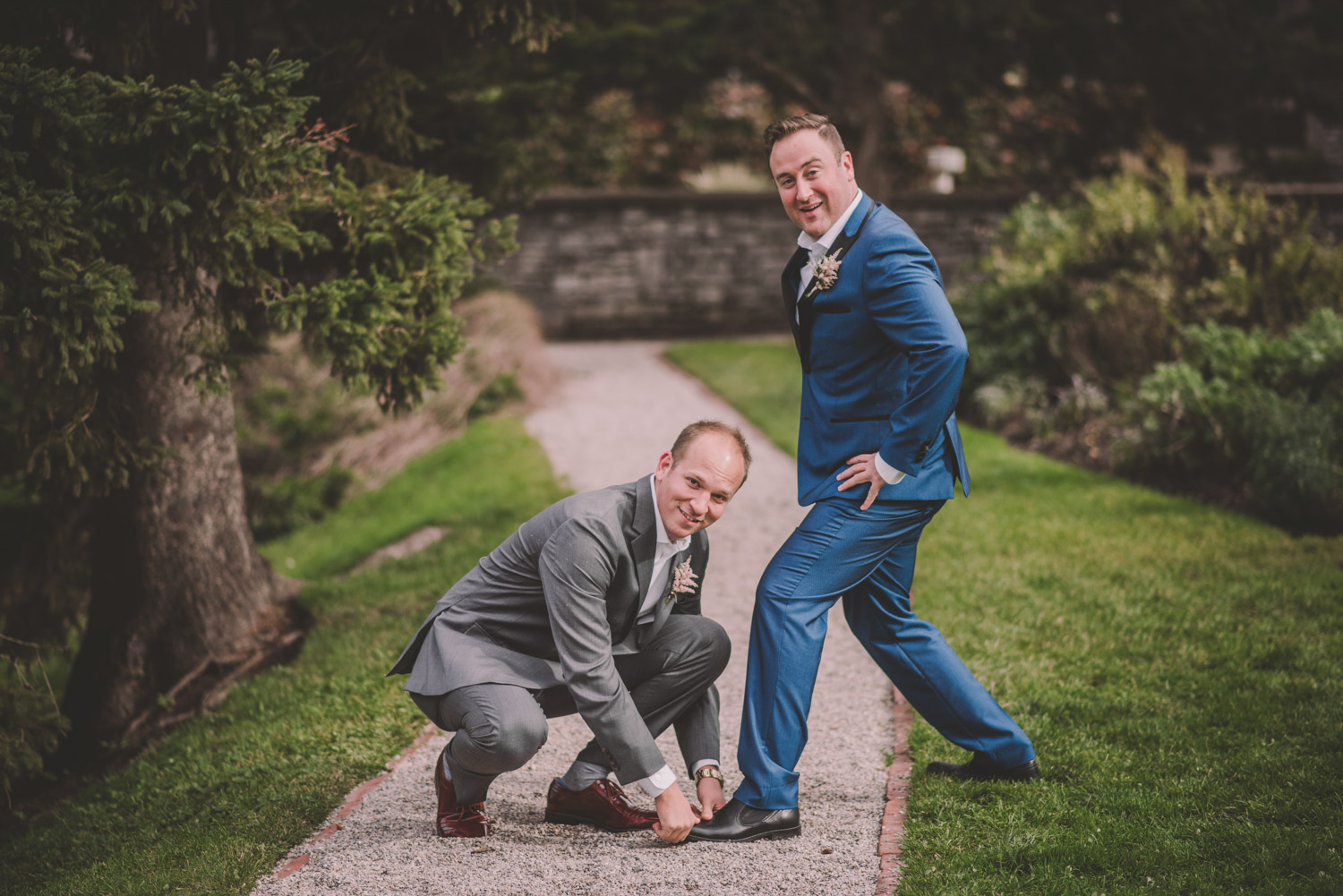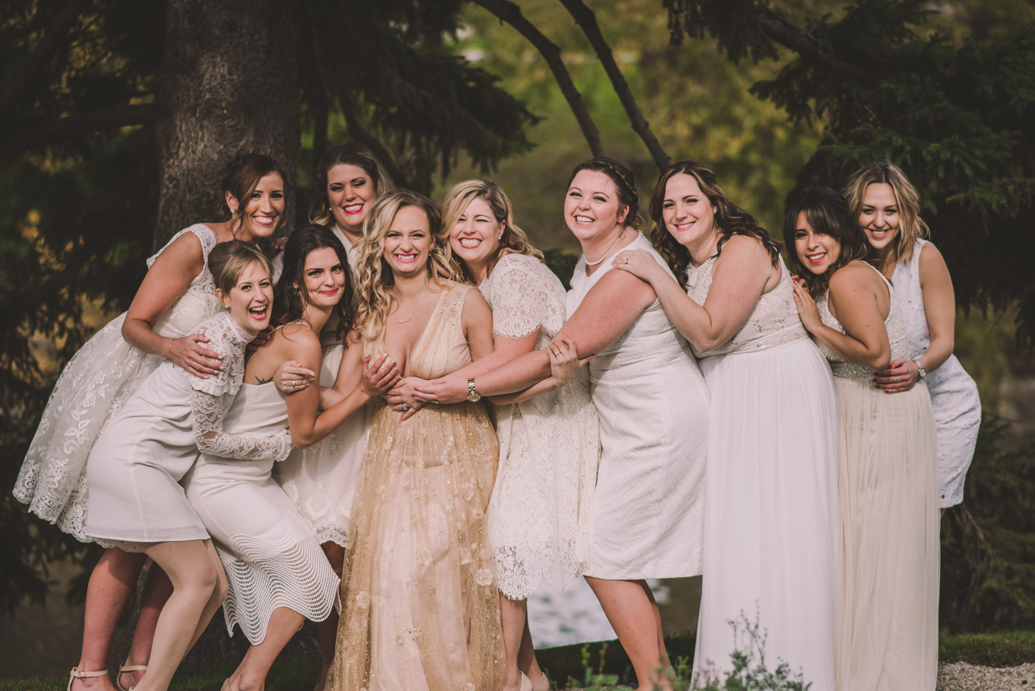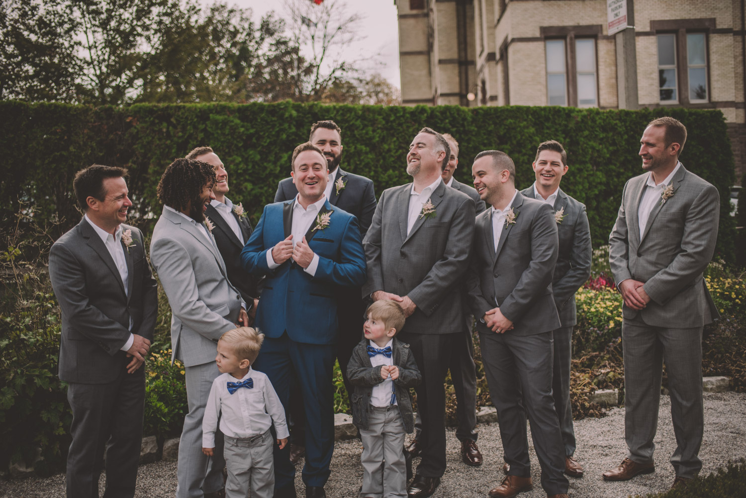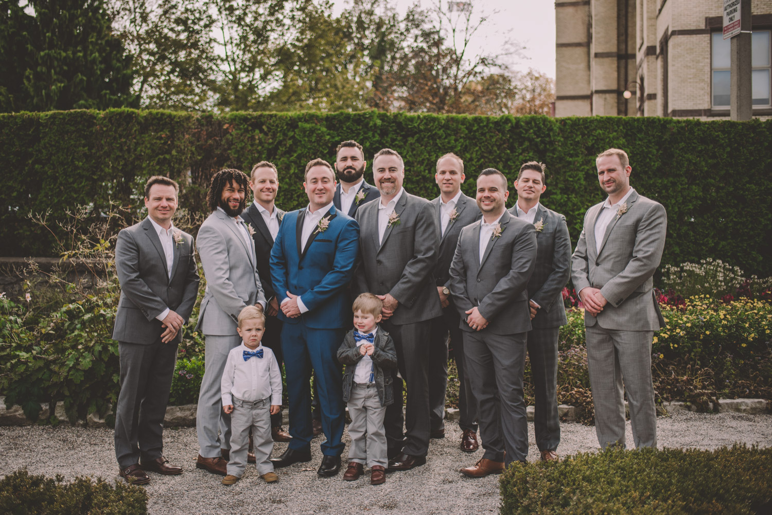 Once everyone was ready to go, Michelle met Scott during their first look in one of the Bruce’s window lined hallways. So cute! We then proceeded to the quite chilly though beautiful Shakespearean Gardens for their bridal party photoshoot! I loveeee this couples’ sense of humour! I don’t think I’ve ever laughed so much at a wedding as I did photographing this wedding party!